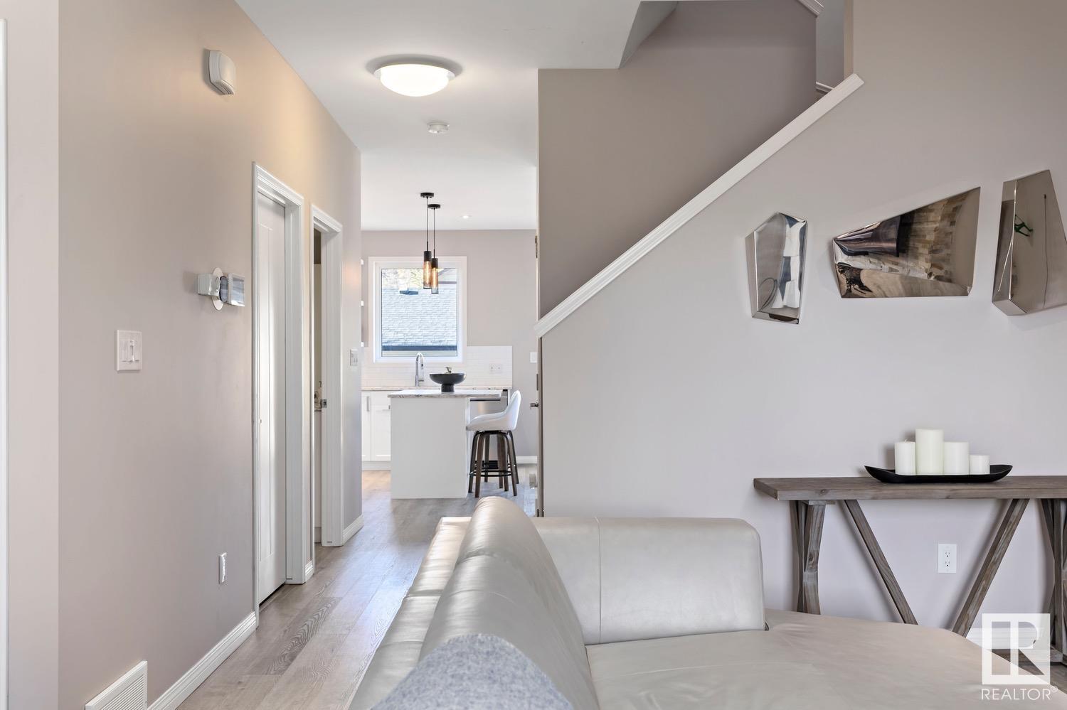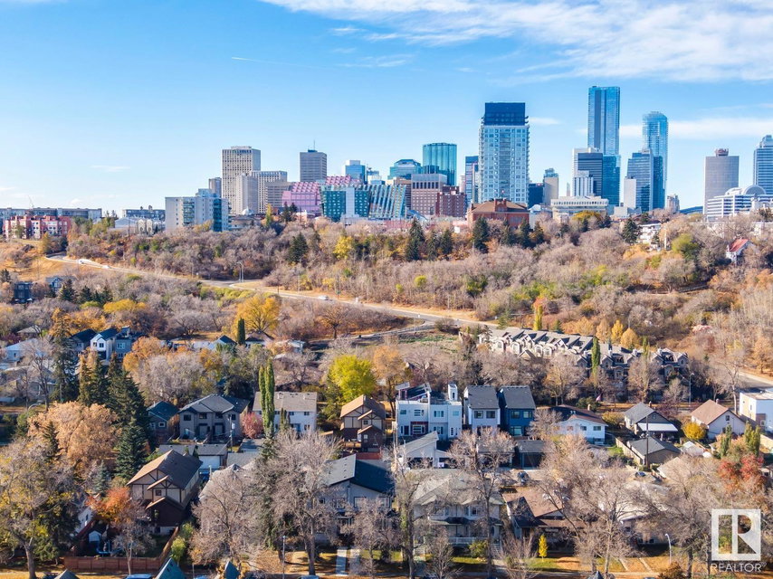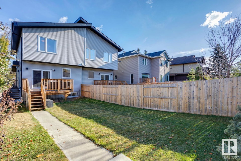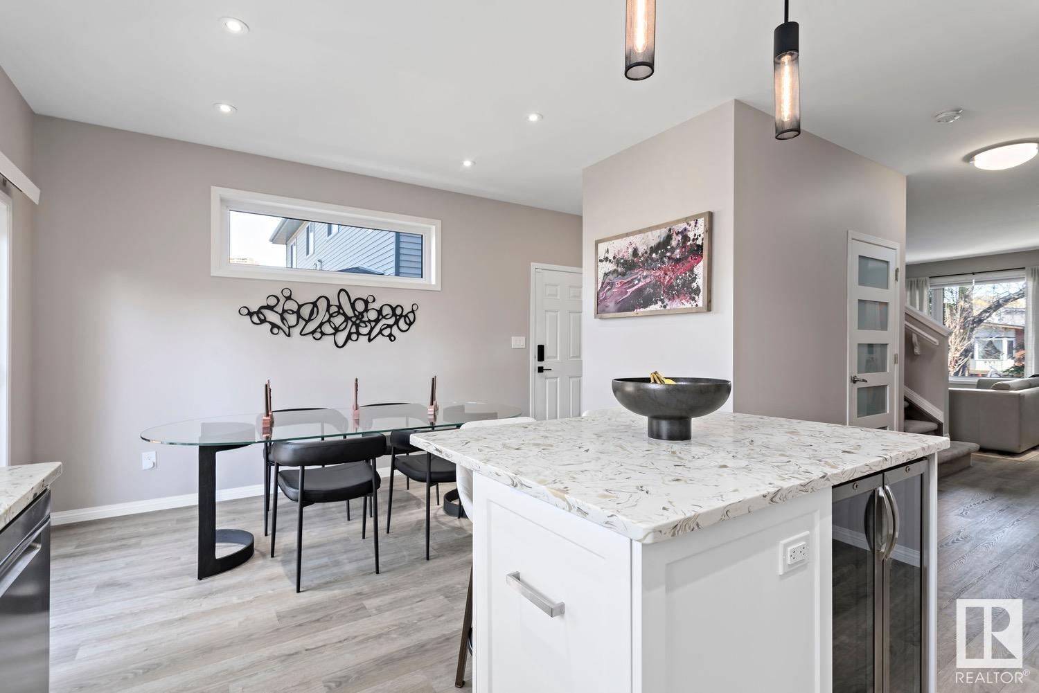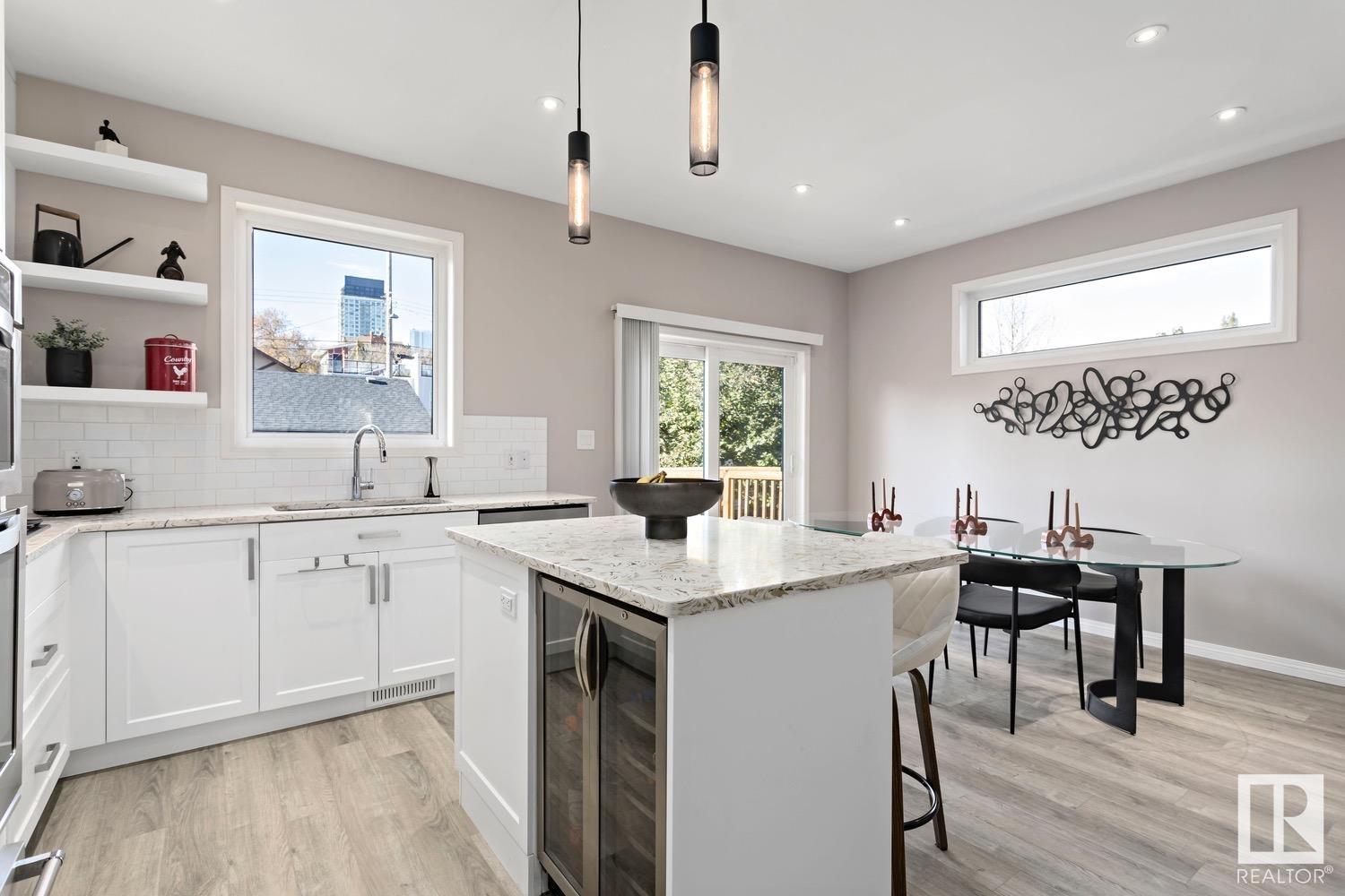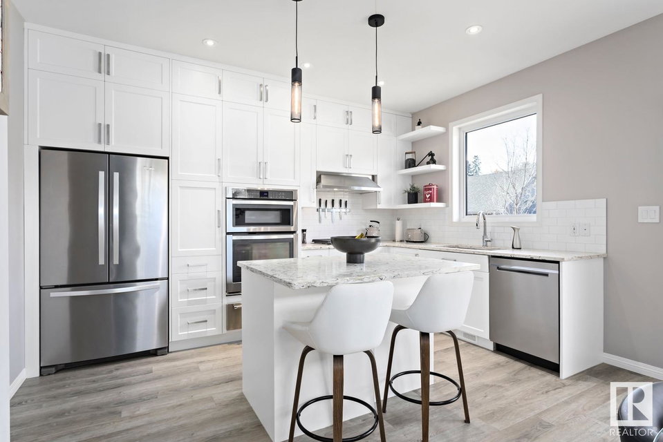 Beautiful half-duplex nestled in Riverdale – steps to the river valley trails & minutes from YEG’s downtown core! With over 2000sq.ft of living space, this 4 bed/3.5 bath home has a FULLY FINISHED basement & tons of extras. A large living room w. luxury vinyl plank & stone fireplace surround greets you upon entering this home. An open-concept kitchen/dining area is completed with a sliding door to the West-facing deck, bathing the space in light. The bright, white cabinetry features S/S appliances incl. a GAS cooktop, built-in oven (+microwave & warming drawer). An added bonus is the beverage fridge built into the island. Upstairs, the primary suite includes a massive WALK-IN CLOSET & 4PC ensuite w. double sinks. An add’l 4PC bathroom, 2 bedrooms & FULL LAUNDRY ROOM complete this floor. The FINISHED basement (w. Dricore subfloor) has extra deep window wells to allow plenty of light throughout. The bedroom has its own 3PC ENSUITE BATH (great for guests). Other feats: A/C, INSULATED double garage, alarm +++