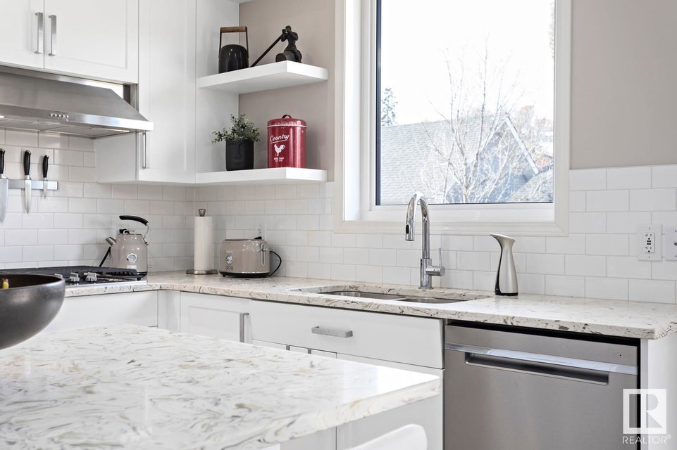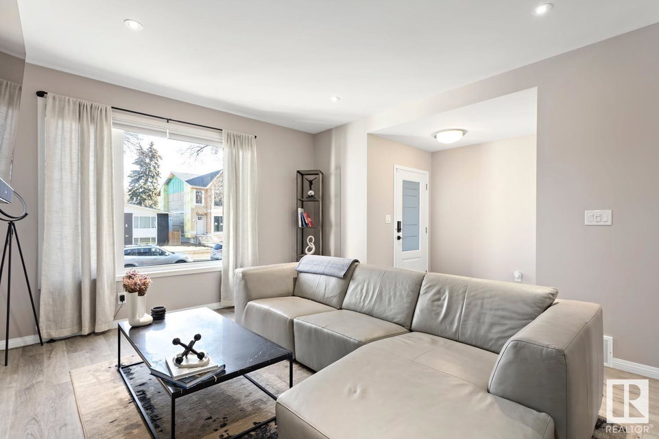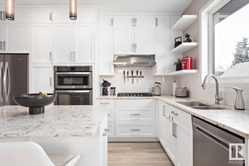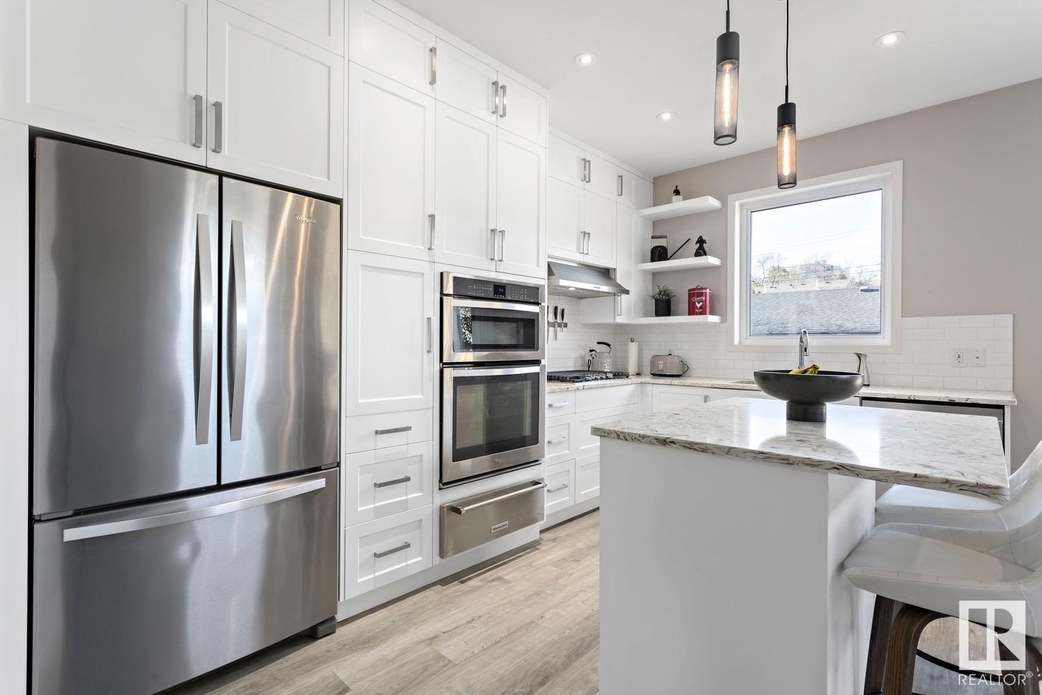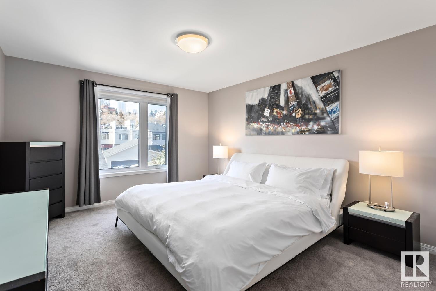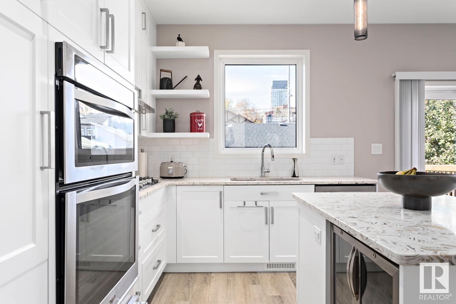 Beautiful half-duplex nestled in Riverdale – steps to the river valley trails & minutes from YEG’s downtown core! With over 2000sq.ft of living space, this 4 bed/3.5 bath home has a FULLY FINISHED basement & tons of extras. A large living room w. luxury vinyl plank & stone fireplace surround greets you upon entering this home. An open-concept kitchen/dining area is completed with a sliding door to the West-facing deck, bathing the space in light. The bright, white cabinetry features S/S appliances incl. a GAS cooktop, built-in oven (+microwave & warming drawer). An added bonus is the beverage fridge built into the island. Upstairs, the primary suite includes a massive WALK-IN CLOSET & 4PC ensuite w. double sinks. An add’l 4PC bathroom, 2 bedrooms & FULL LAUNDRY ROOM complete this floor. The FINISHED basement (w. Dricore subfloor) has extra deep window wells to allow plenty of light throughout. The bedroom has its own 3PC ENSUITE BATH (great for guests). Other feats: A/C, INSULATED double garage, alarm +++
