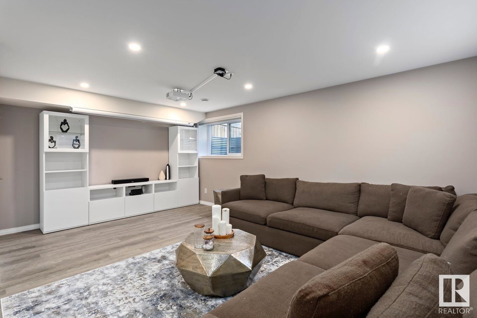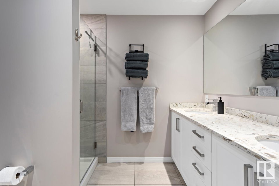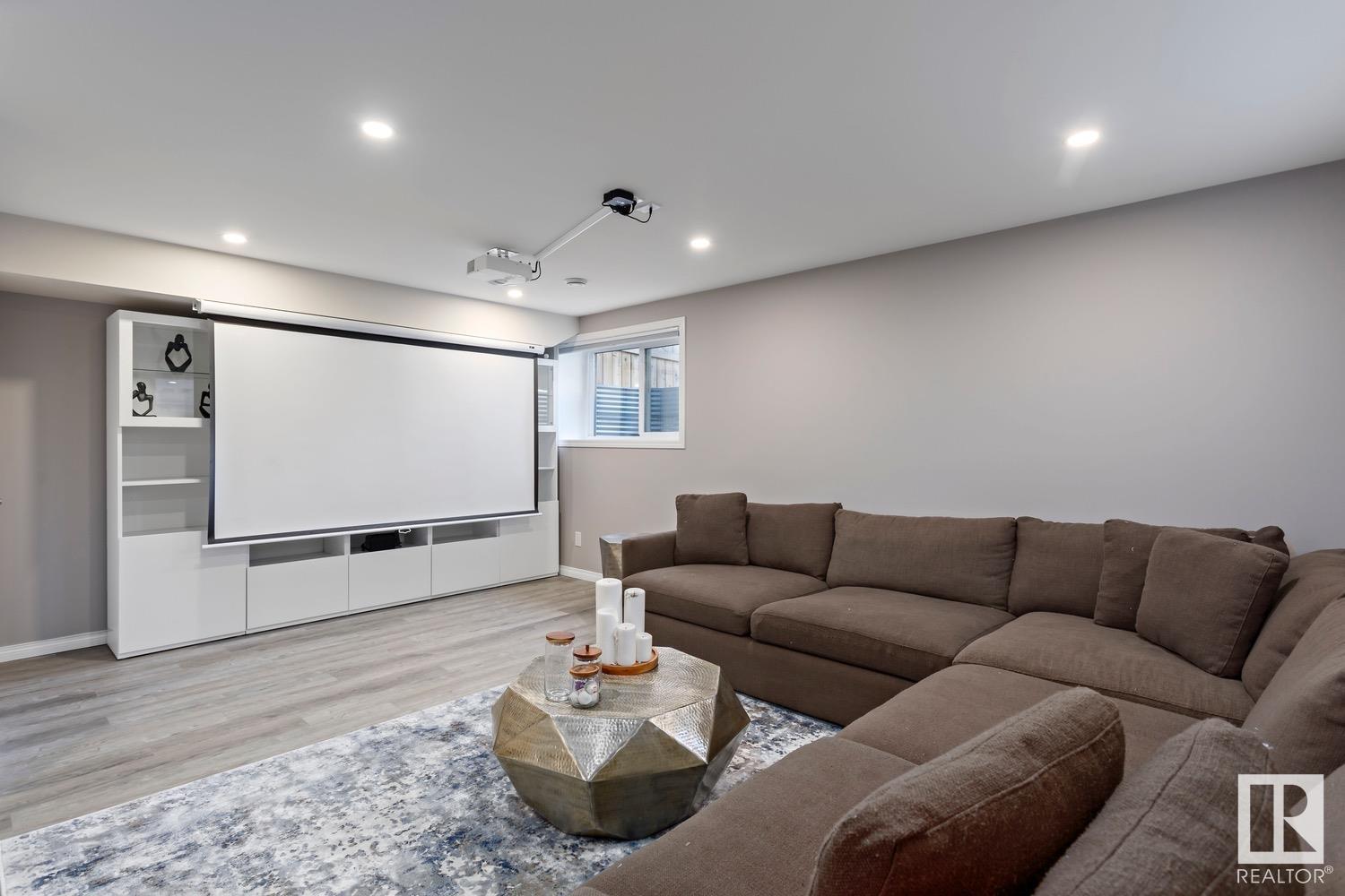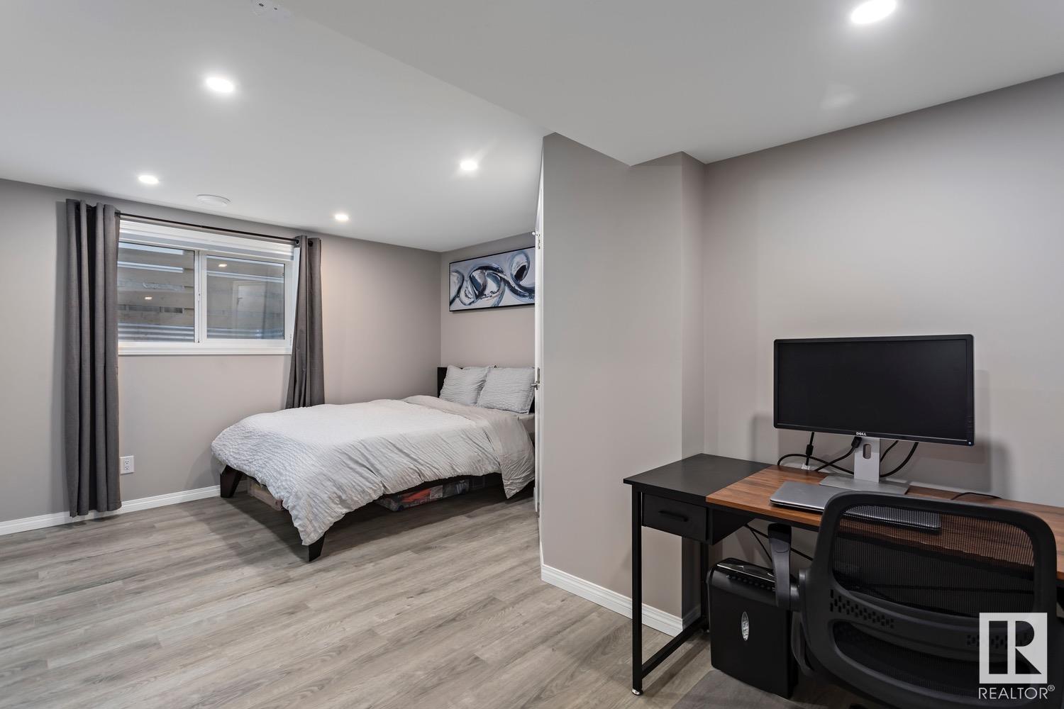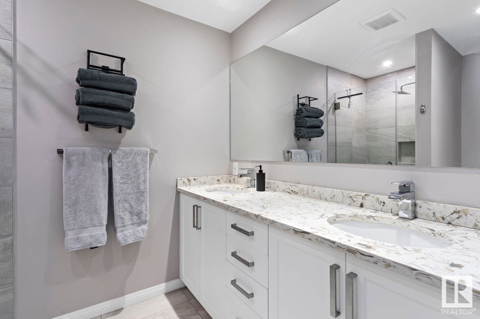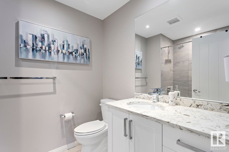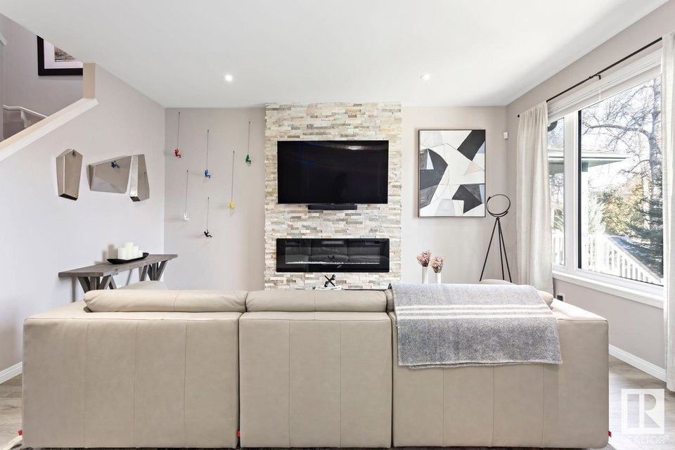 Beautiful half-duplex nestled in Riverdale – steps to the river valley trails & minutes from YEG’s downtown core! With over 2000sq.ft of living space, this 4 bed/3.5 bath home has a FULLY FINISHED basement & tons of extras. A large living room w. luxury vinyl plank & stone fireplace surround greets you upon entering this home. An open-concept kitchen/dining area is completed with a sliding door to the West-facing deck, bathing the space in light. The bright, white cabinetry features S/S appliances incl. a GAS cooktop, built-in oven (+microwave & warming drawer). An added bonus is the beverage fridge built into the island. Upstairs, the primary suite includes a massive WALK-IN CLOSET & 4PC ensuite w. double sinks. An add’l 4PC bathroom, 2 bedrooms & FULL LAUNDRY ROOM complete this floor. The FINISHED basement (w. Dricore subfloor) has extra deep window wells to allow plenty of light throughout. The bedroom has its own 3PC ENSUITE BATH (great for guests). Other feats: A/C, INSULATED double garage, alarm +++