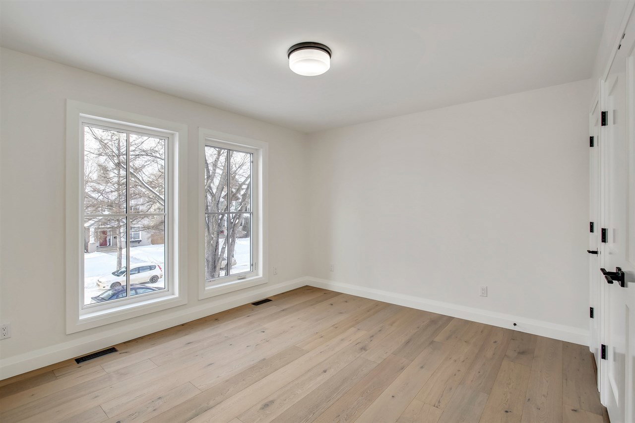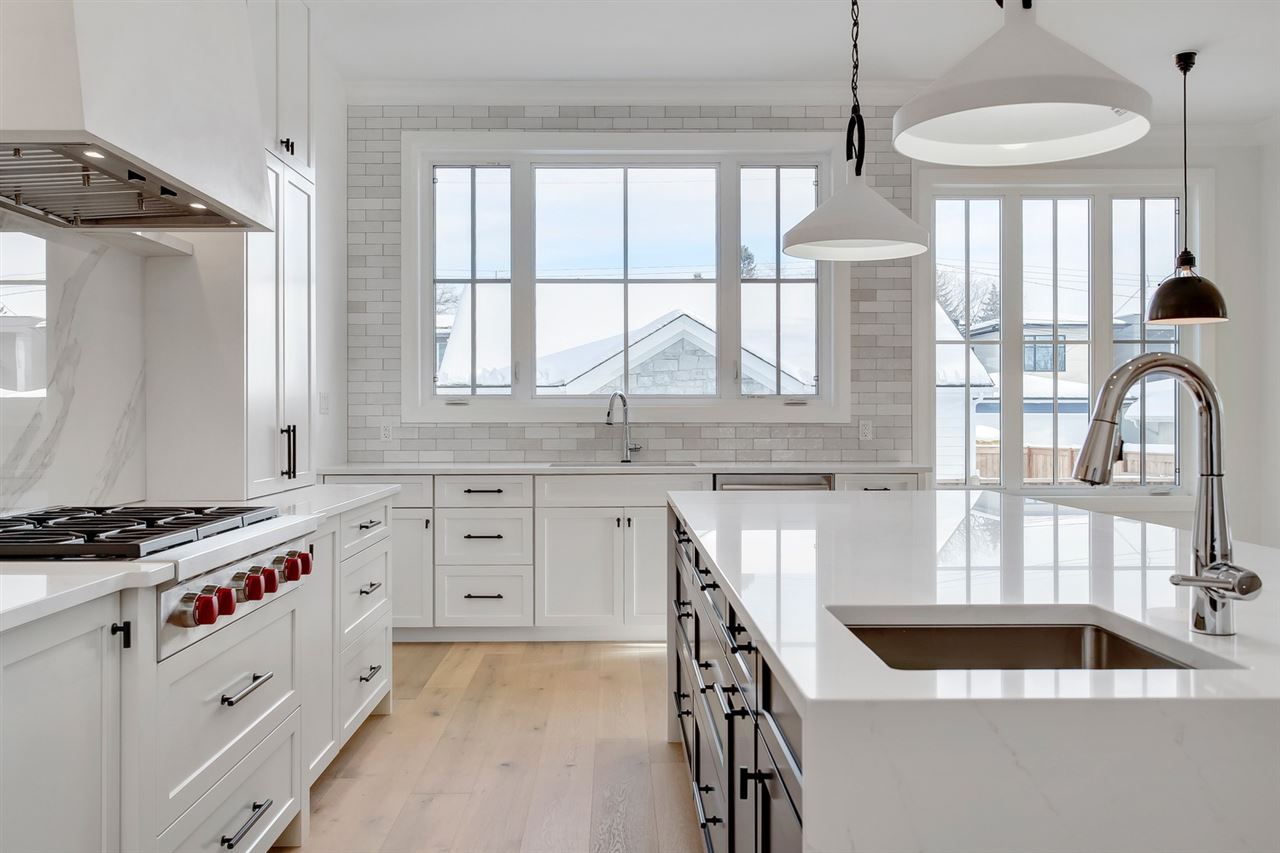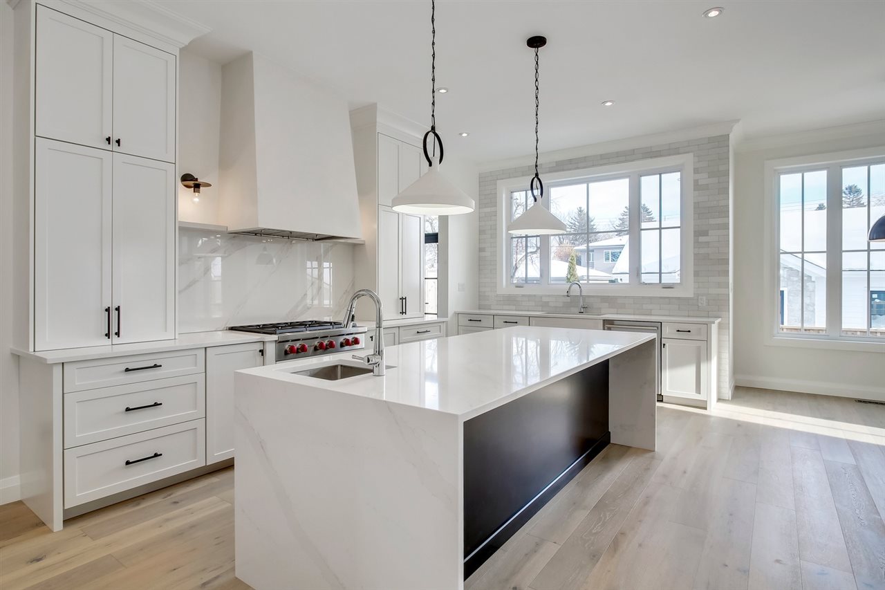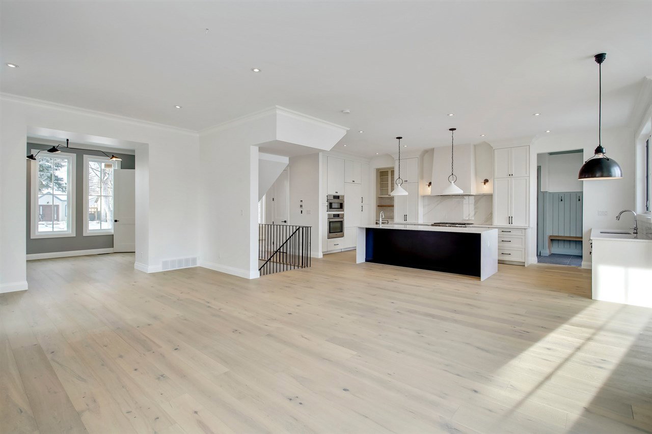 Don’t miss your chance to own a brand new, custom infill by FC Developments in Glenora. The 3+2 bed/3.5 bath home boasts over 4,400 sqft of finished living space (3,087 abv grd). Signature finishing of Hardie siding, natural cedar soffits & a solid mahogany door greet you at this modern farmhouse. The main floor has an open-concept living space (kitchen, breakfast nook, family room) w. soaring 10′ ceilings & dedicated dining & office spaces. The chef’s kitchen features appliances by Wolf, Dacor & Bosch as well as quartz countertops & custom Huntwood cabinetry (throughout home as well). Hardwood is carried from the main up the stairs & throughout the second floor. The large master suite includes a 5PC spa-like ensuite with soaker tub, custom tile shower & walk-in closet. 2 add’l bedrooms, Jack-&-Jill bath & laundry complete the level. 9′ ceilings & in-floor heating are found in the fully finished basement that also houses a wet bar, 4th bdrm, 3pc bath & gym. Heated TRIPLE garage and fully landscaped.