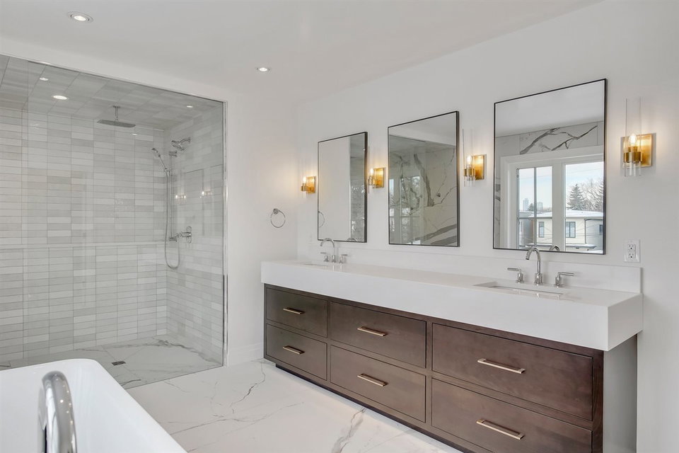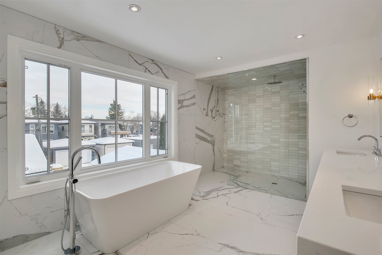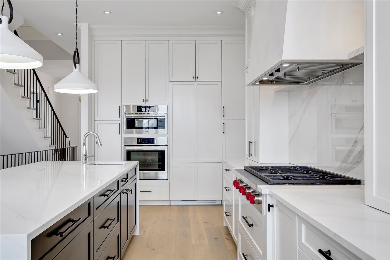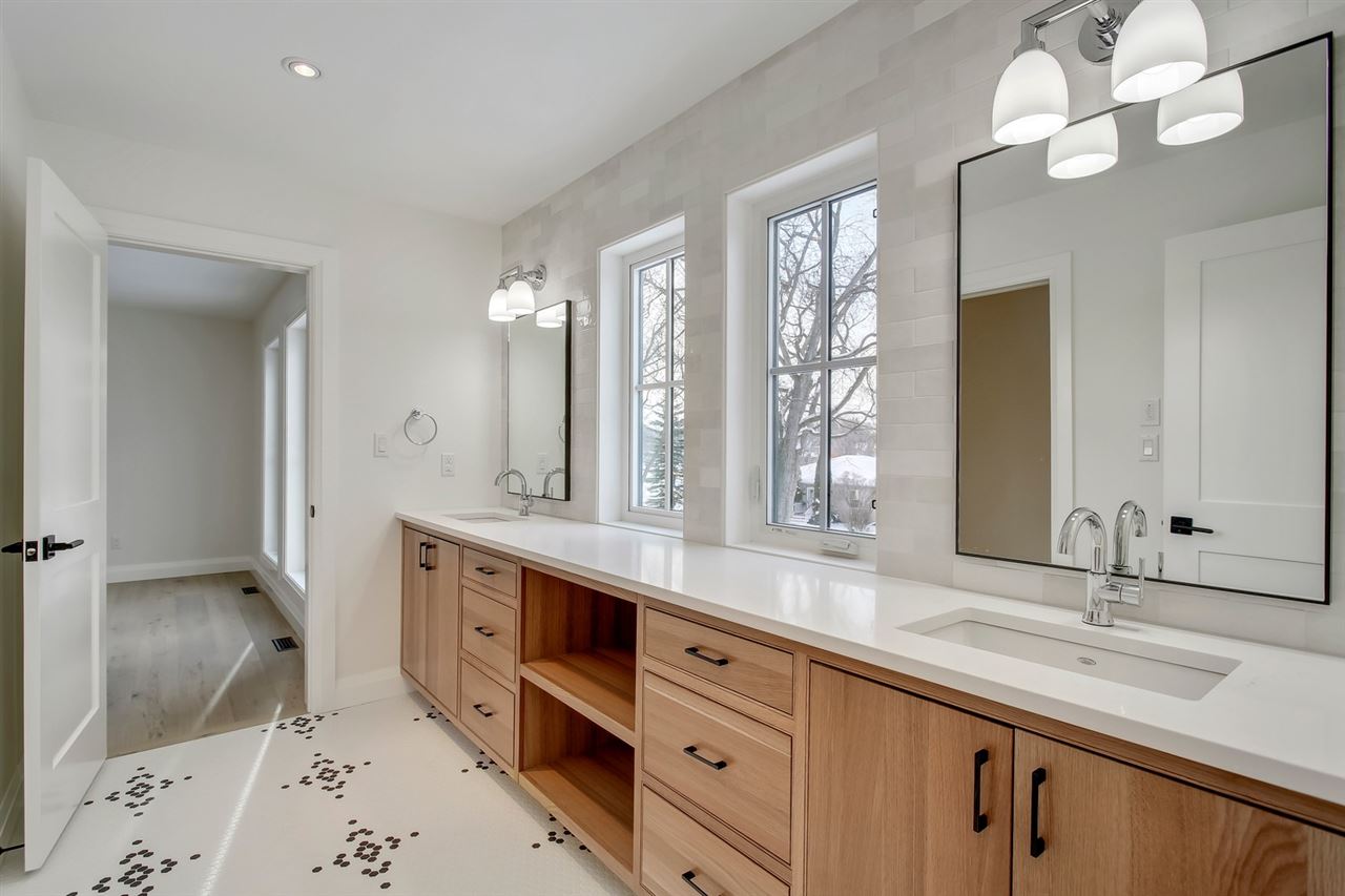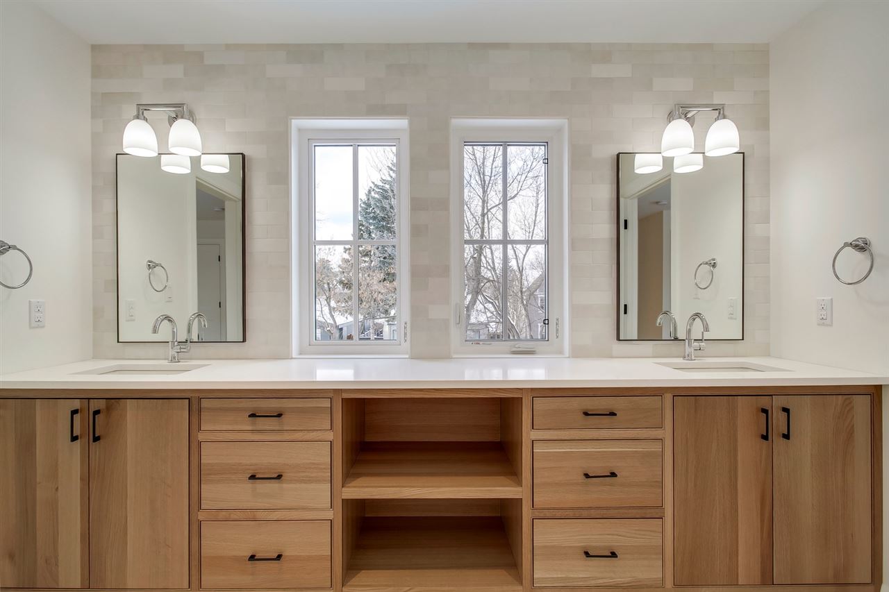 Don’t miss your chance to own a brand new, custom infill by FC Developments in Glenora. The 3+2 bed/3.5 bath home boasts over 4,400 sqft of finished living space (3,087 abv grd). Signature finishing of Hardie siding, natural cedar soffits & a solid mahogany door greet you at this modern farmhouse. The main floor has an open-concept living space (kitchen, breakfast nook, family room) w. soaring 10′ ceilings & dedicated dining & office spaces. The chef’s kitchen features appliances by Wolf, Dacor & Bosch as well as quartz countertops & custom Huntwood cabinetry (throughout home as well). Hardwood is carried from the main up the stairs & throughout the second floor. The large master suite includes a 5PC spa-like ensuite with soaker tub, custom tile shower & walk-in closet. 2 add’l bedrooms, Jack-&-Jill bath & laundry complete the level. 9′ ceilings & in-floor heating are found in the fully finished basement that also houses a wet bar, 4th bdrm, 3pc bath & gym. Heated TRIPLE garage and fully landscaped.