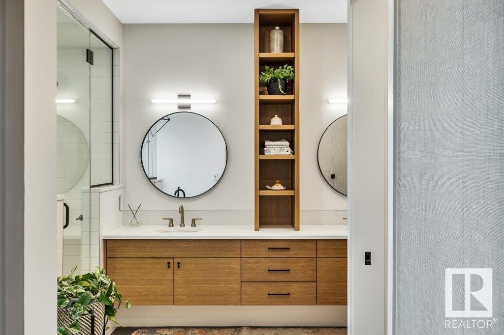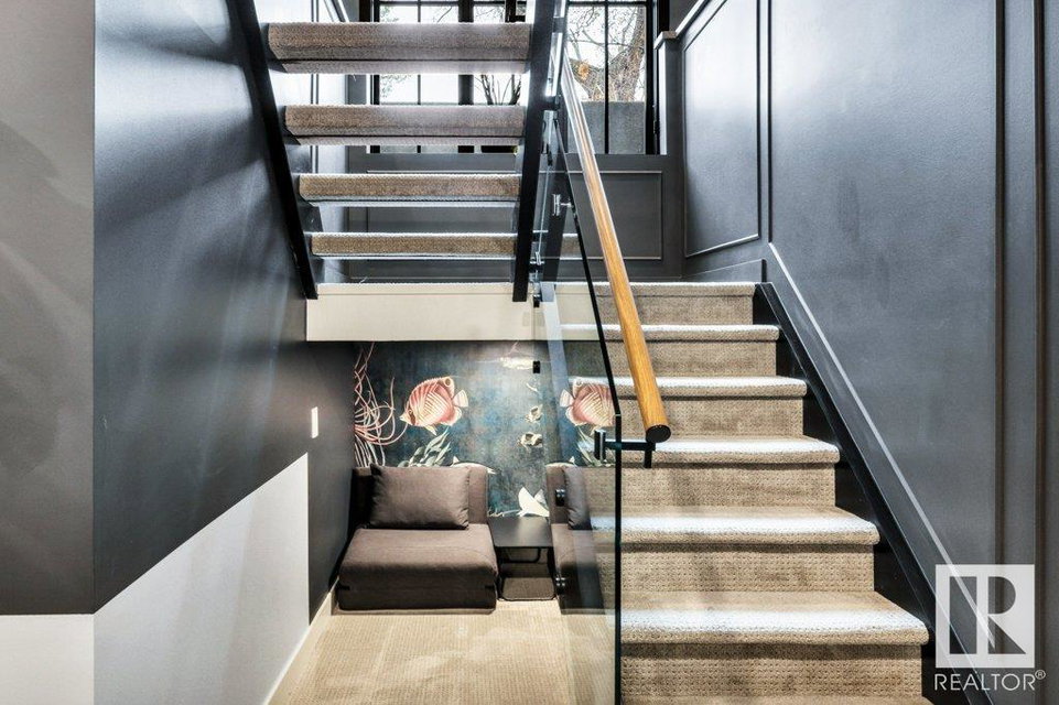 This custom-built estate home, located in walkable Westmount, boasts 4100+sq.ft of finished living space designed by DesignTwoGroup. The home’s architectural beauty is complemented by exceptional finishes, from imported wood & aluminum-framed windows to custom cabinetry by Culham. The brick facade flows seamlessly into the interior, creating a chic NYC loft-style ambiance. The main floor features 10’ ceilings, oversized windows & sliding doors that offer indoor/outdoor living on both East & West exposures. The kitchen is a dream, with SubZero & Miele appliances, incl 2 dishwashers, a gas stove w. 2 ovens, built-in coffee maker, ice maker & a massive quartz island. All 4 BEDROOMS have ensuites with heated floors & the primary suite includes a steam shower, soaking tub & direct access to the upstairs laundry room. Additional features include a FULLY FINISHED radiant-heated basement, GYM space, tons of storage, A/C, HEATED garage with epoxy flooring, & MAINTENANCE-FREE turf & deck in the landscaped backyard.