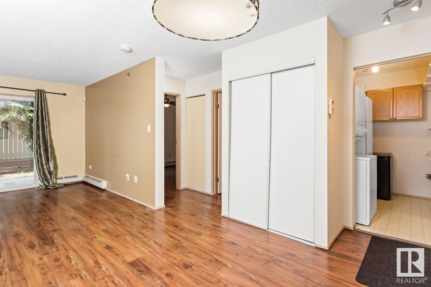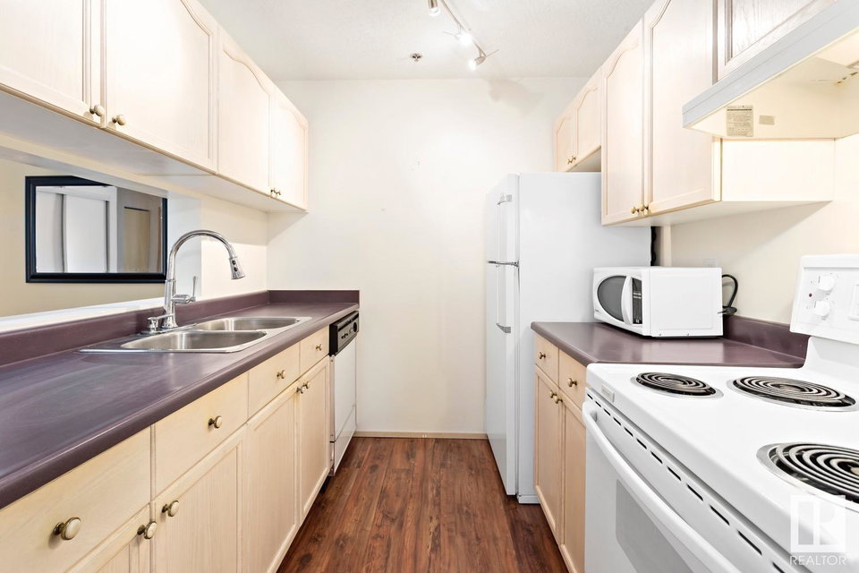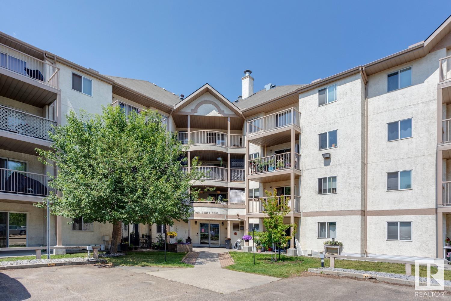 Calling all INVESTORS >>> 2 BED/2 BATH CONDO walking distance to the LRT, Concordia University, Commonwealth Stadium/Rec Centre, grocery stores & River Valley! This unit is the perfect first investment – great for roommates or a place to call your own with low condo fees (including most utilities) and plenty of living space (825sq.ft). UPDATED LAMINATE floors run throughout the property including the galley-style kitchen with dishwasher. The primary suite features a WALK-IN CLOSET and 4PC ENSUITE. The 2nd bedroom is on the opposite side of the unit and just steps from the 2nd 4pc bathroom. IN-SUITE laundry + a deep freeze in the storage room complete this unit. Outside you’ll find a private, covered, West-facing patio and 1 covered parking stall. This PET-FRIENDLY building is professionally managed and has plenty of visitor parking.