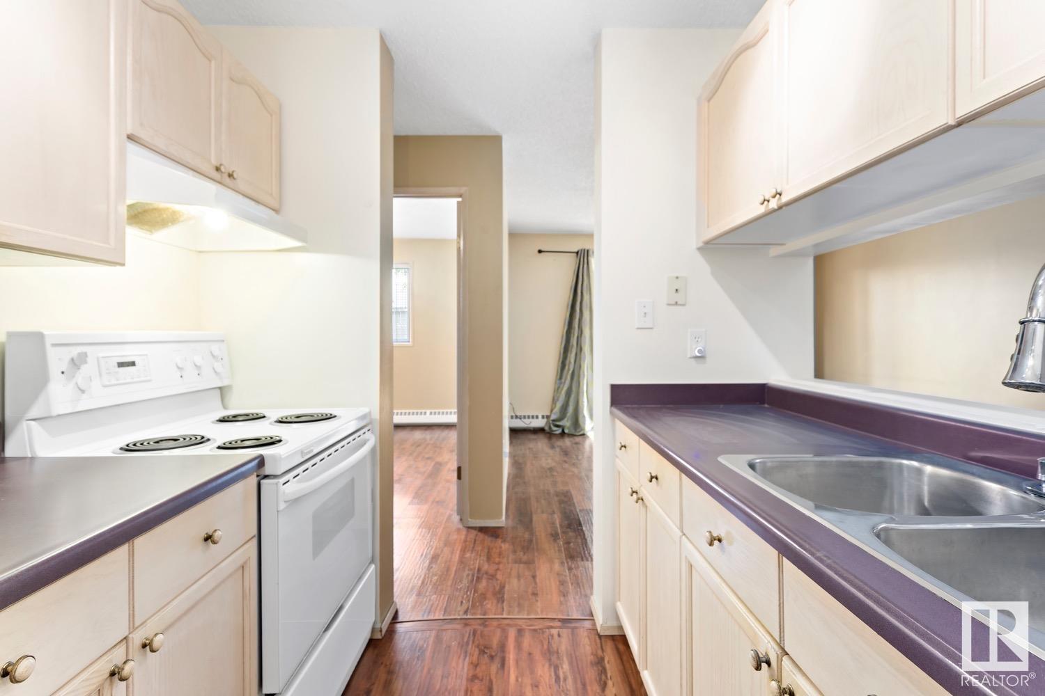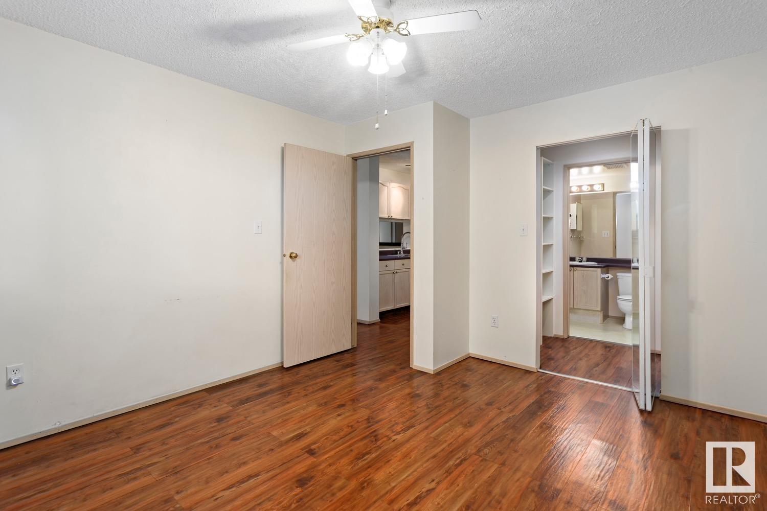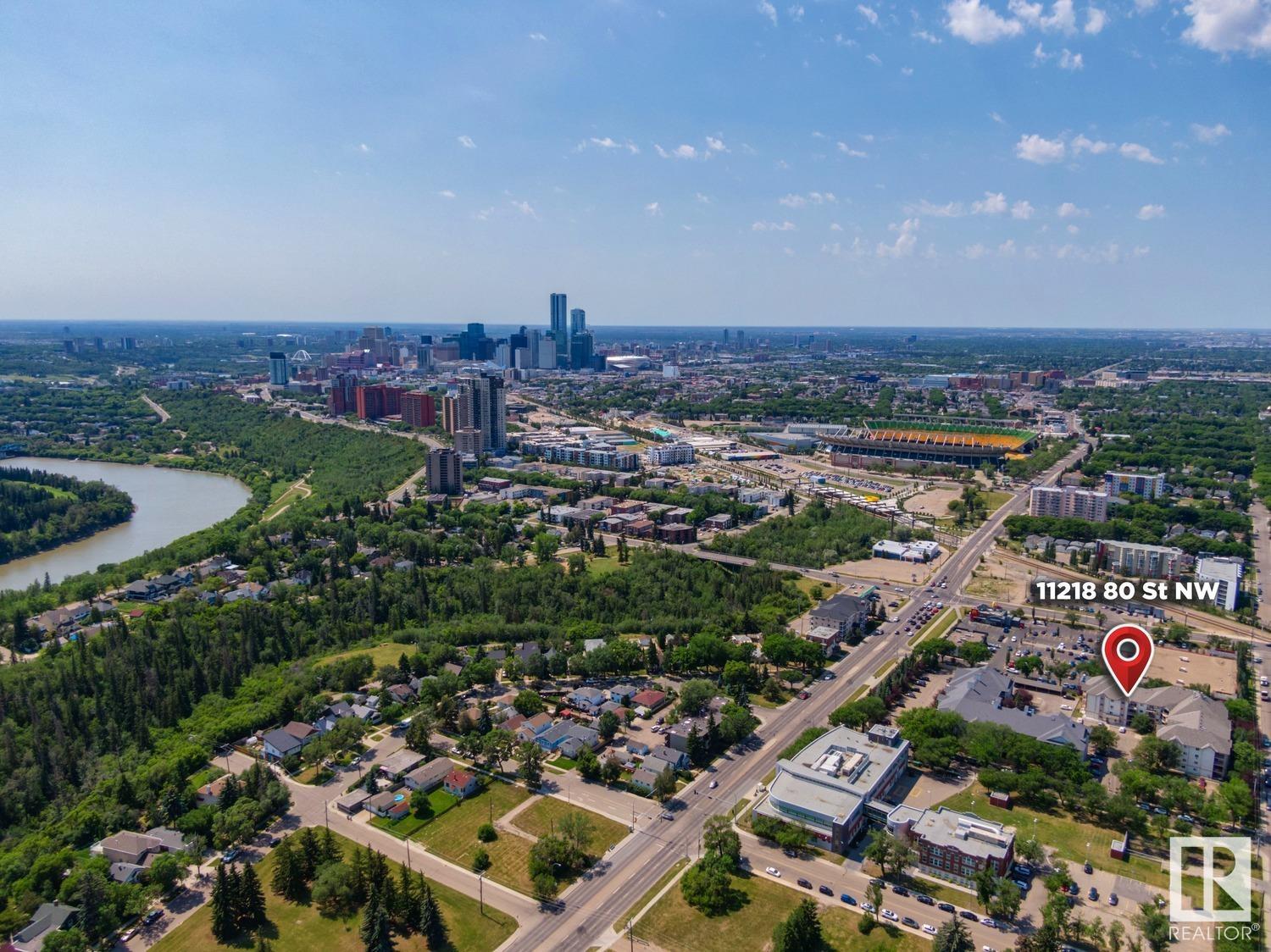 Calling all INVESTORS >>> 2 BED/2 BATH CONDO walking distance to the LRT, Concordia University, Commonwealth Stadium/Rec Centre, grocery stores & River Valley! This unit is the perfect first investment – great for roommates or a place to call your own with low condo fees (including most utilities) and plenty of living space (825sq.ft). UPDATED LAMINATE floors run throughout the property including the galley-style kitchen with dishwasher. The primary suite features a WALK-IN CLOSET and 4PC ENSUITE. The 2nd bedroom is on the opposite side of the unit and just steps from the 2nd 4pc bathroom. IN-SUITE laundry + a deep freeze in the storage room complete this unit. Outside you’ll find a private, covered, West-facing patio and 1 covered parking stall. This PET-FRIENDLY building is professionally managed and has plenty of visitor parking.