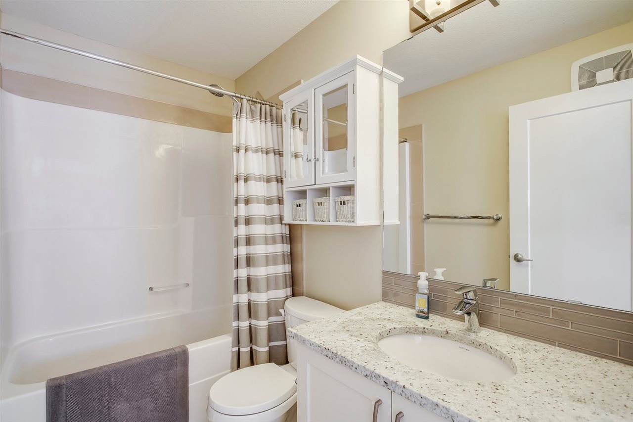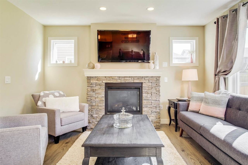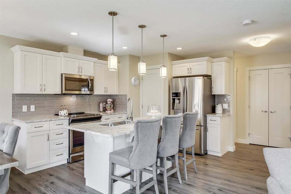 FULLY FINISHED BASEMENT, LANDSCAPED & A/C: there’s nothing left to do but MOVE-IN to this show-home calibre home in Aspen Trails. With virtually every upgrade offered by the builder (Rohit Homes), you’ll fall in love with all 1373 sq.ft of this 3bed/3.5bath home. The main floor, clad in durable laminate, has an open concept layout. Bright, white UPGRADED cabinetry, GRANITE countertops and glass tile backsplash in this kitchen have timeless appeal. With a full pantry and stainless steel appliances, you’ll love the heart of this home. The main also features your living room with gas fireplace, dining area (large enough to accommodate 6+) and access to the deck & (LANDSCAPED/FENCED) backyard. 3 bedrooms, including the master suite with WALK-IN closet & 4PC ENSUITE are located upstairs. An additional 4PC bath, BONUS ROOM & laundry complete the 2nd floor. The FULLY FINISHED basement (515sq.ft) has a wet bar, 3PC bath + storage. With INSULATED DOUBLE garage, NO CONDO FEES, & FAB neighbours, it’s time to move!