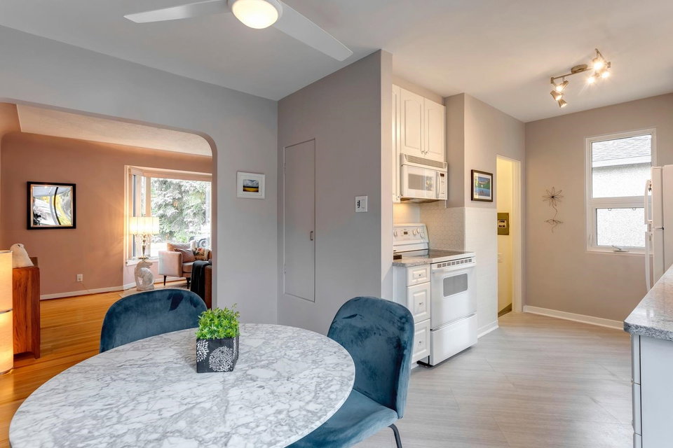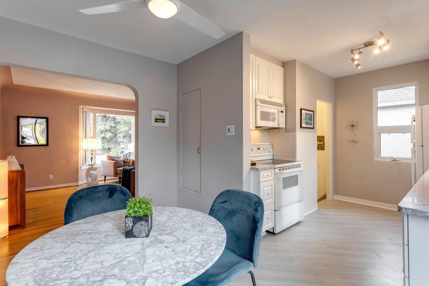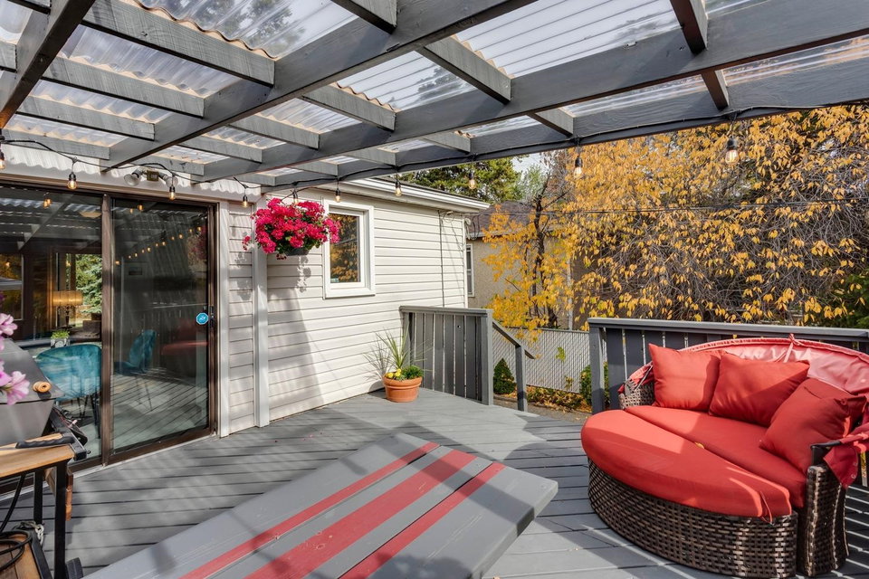 Charming, UPDATED bungalow on a CORNER LOT in North Glenora! This 2+1 bedroom/2 FULL bathroom home is the perfect investment in a mature community. You’ll fall in love with the coved ceilings & refinished hardwood floors that greet you on the first floor on this property. The upgraded kitchen features new vinyl flooring, bright white cabinetry with QUARTZ countertops, newer appliances & a classic tile backsplash. 2 generous bedrooms (each with hardwood) & an upgraded 4 PC bathroom complete the main floor. In the FULLY FINISHED basement, you’ll find a large rec space (POOL TABLE INCL. in sale) complete with a bar! An additional bedroom & fully renovated 3PC bathroom are great for out-of-town guests or a roommate. The SOUTH-facing backyard is private (only 1 neighbour) & features a great deck (w. gas BBQ INCL.) as well as an OVERSIZED double garage. The back alley was recently paved as an added bonus. Other notable upgrades: newer roof (2017), updated windows & HWT (2017). Close to public transit & schools!