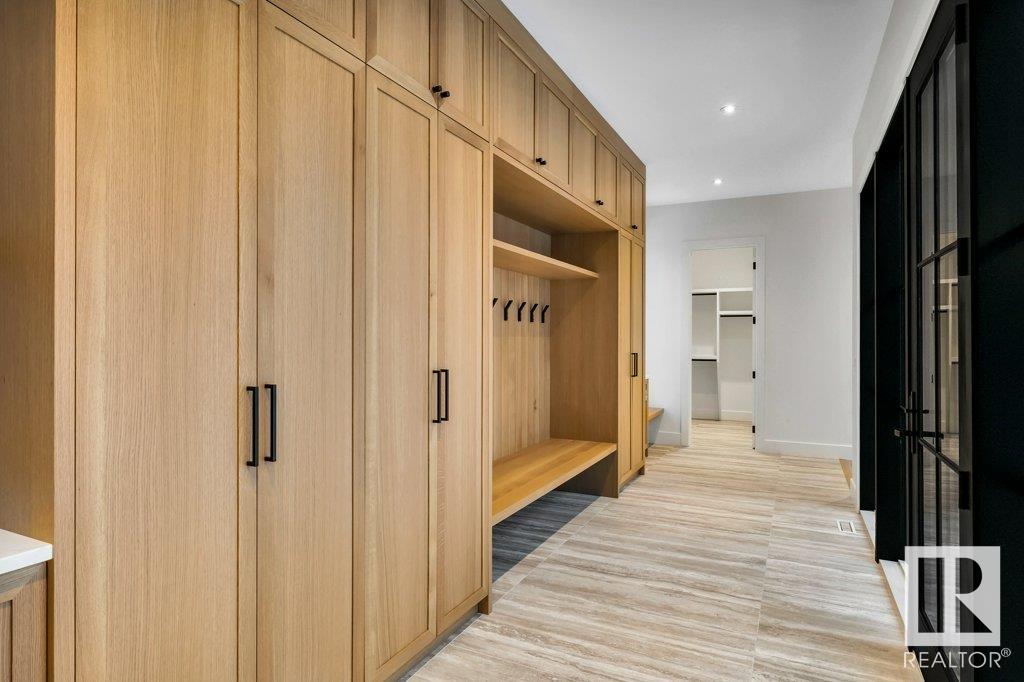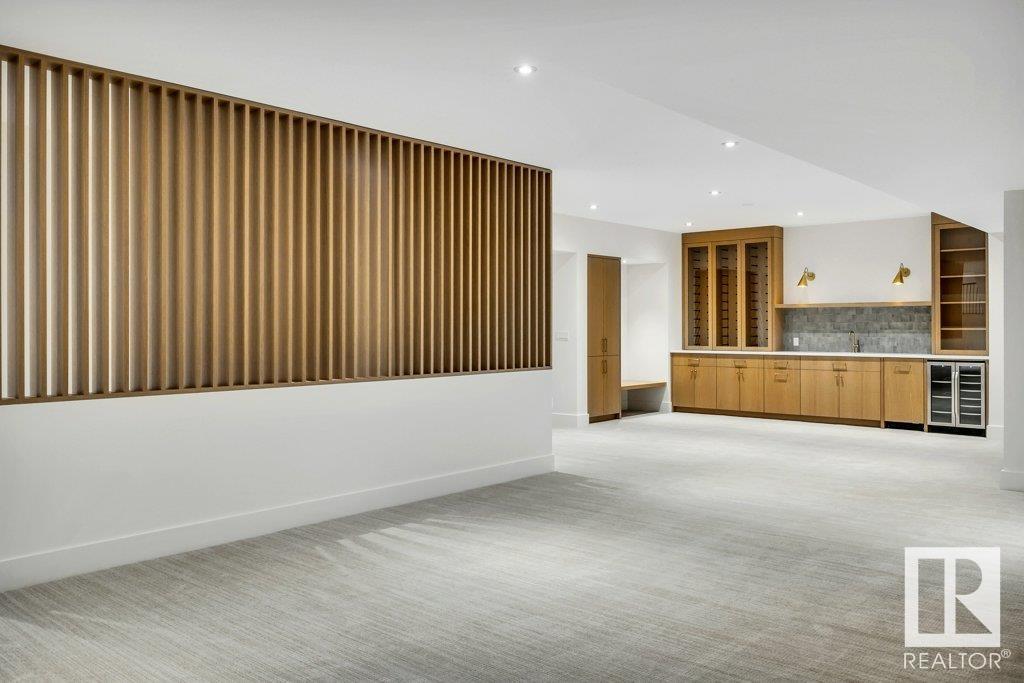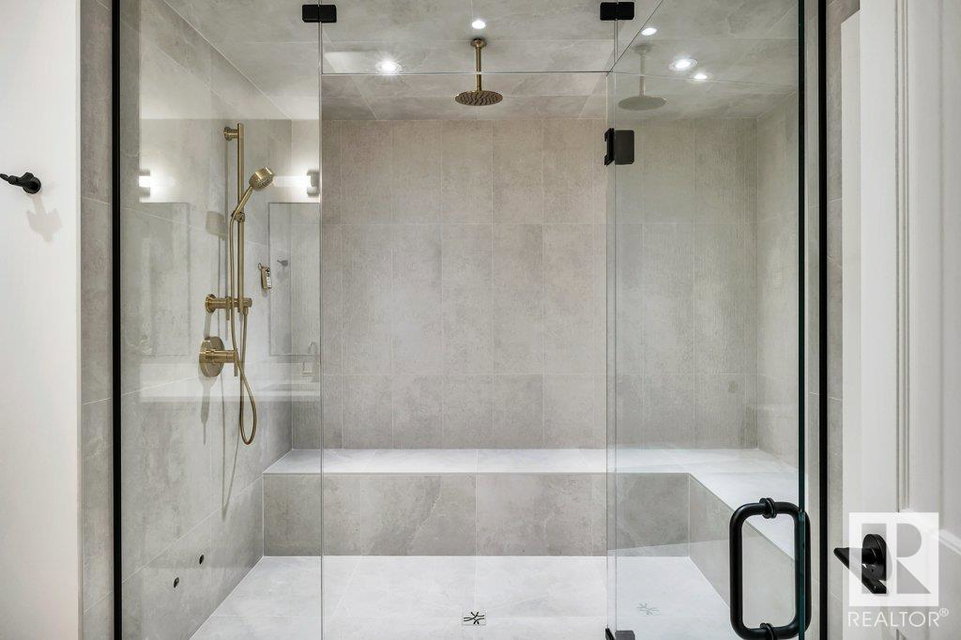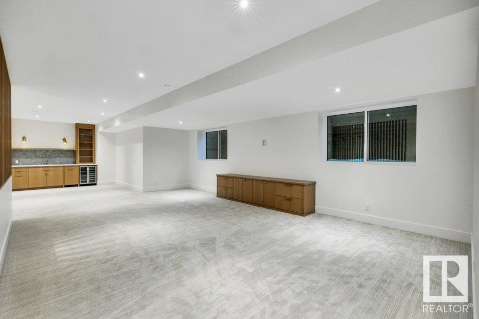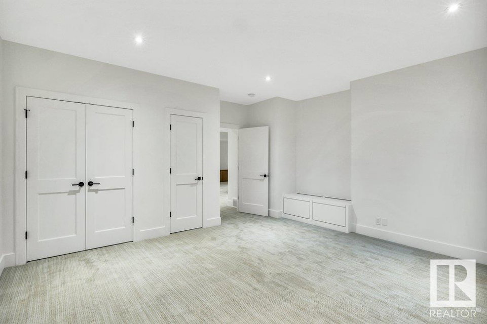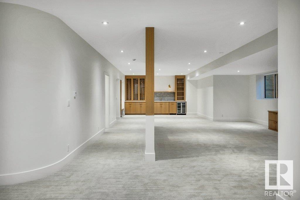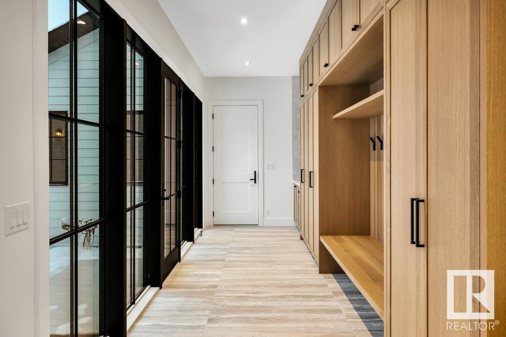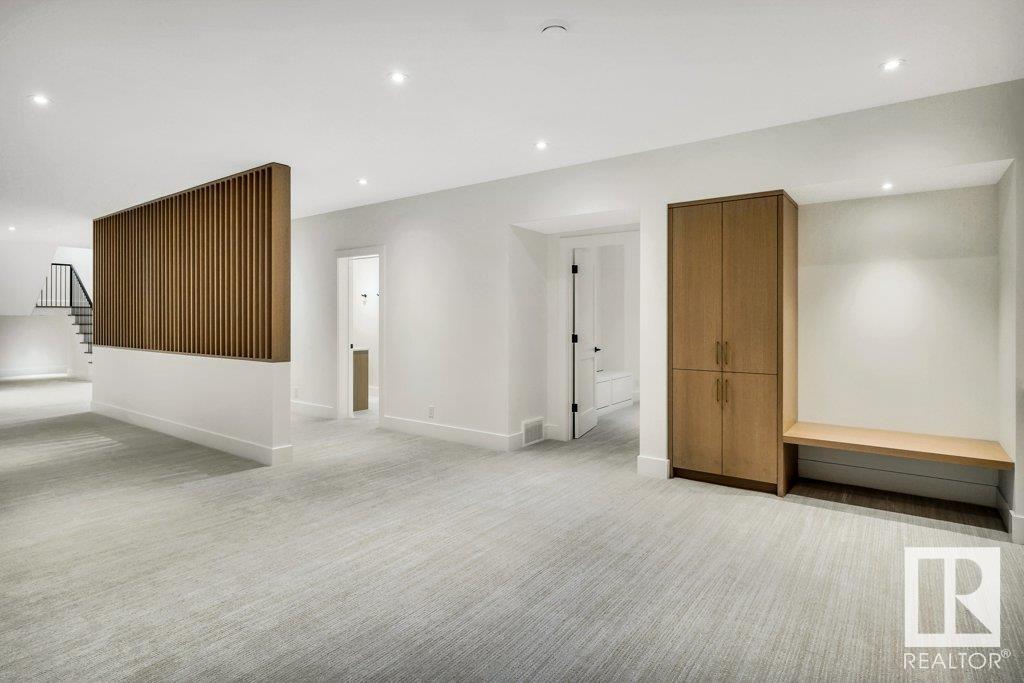 Situated on one of the only cul-de-sacs in East Crestwood, FC Developments’ latest custom estate features 6,500+sq.ft of developed living space on a 11,600sq.ft lot. 10′ ceilings greet you in the foyer & open up to a soaring 23’ vaulted ceiling in the living room. Custom cabinetry by Waygood can be found throughout the home, accented w integrated Jenn-Air appliances in the kitchen (incl 48″ gas range w double ovens & two dishwashers). Elegant archways & rounded corners are incorporated in the design incl the custom plaster hoodfan, oversized island & breakfast nook. An ATTACHED heated TRIPLE garage is connected by a breezeway; complete with custom storage, utility sink & large walk-in closet. Upstairs you’ll find 4 bedrooms with ENSUITES & WALK-IN CLOSETS FOR ALL. In the basement are 9′ ceilings, RADIANT HEATED floors, a custom bar area + built-ins, 2 add’l bedrooms (one styled as a GYM), a 4PC bath w a massive STEAMSHOWER connected to the gym area. Live steps from the River Valley in your own quiet oasis