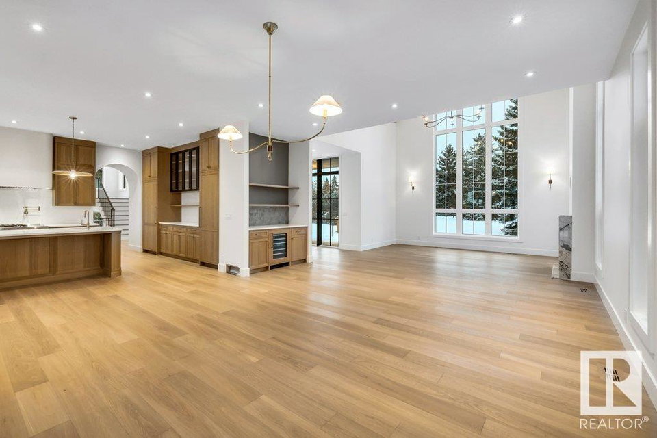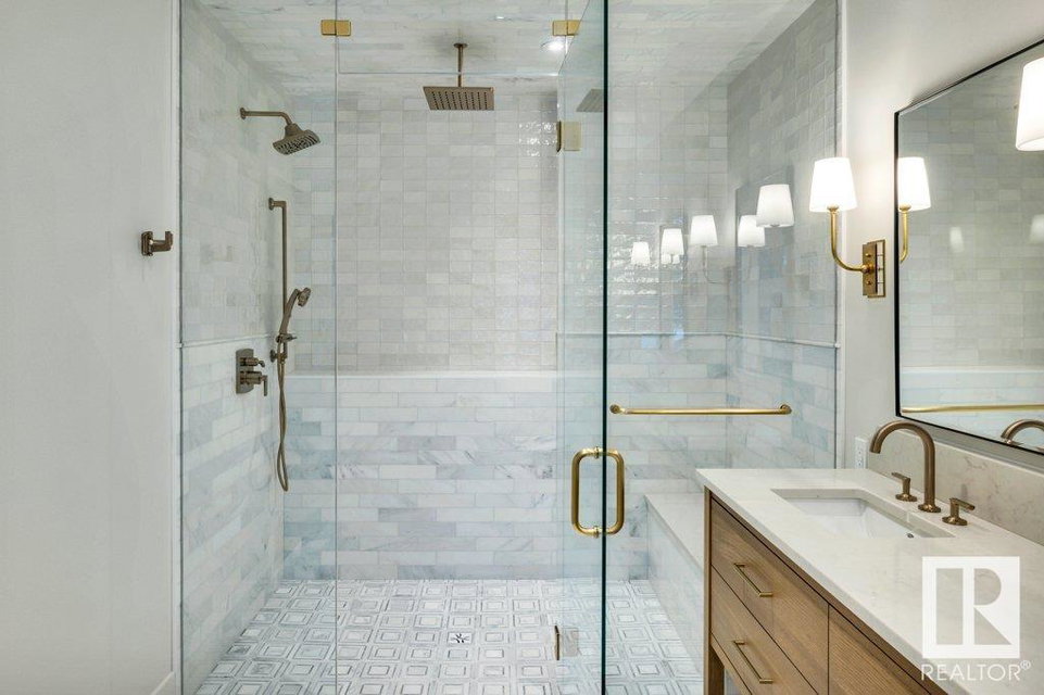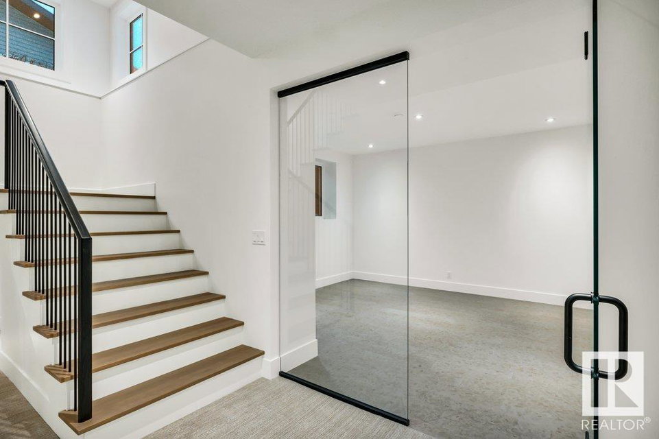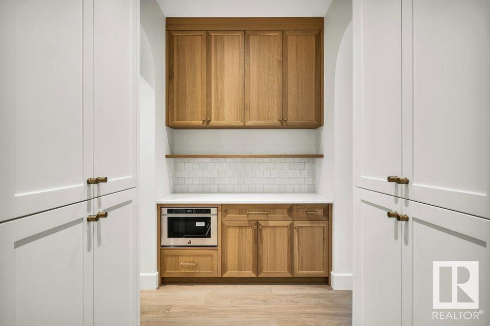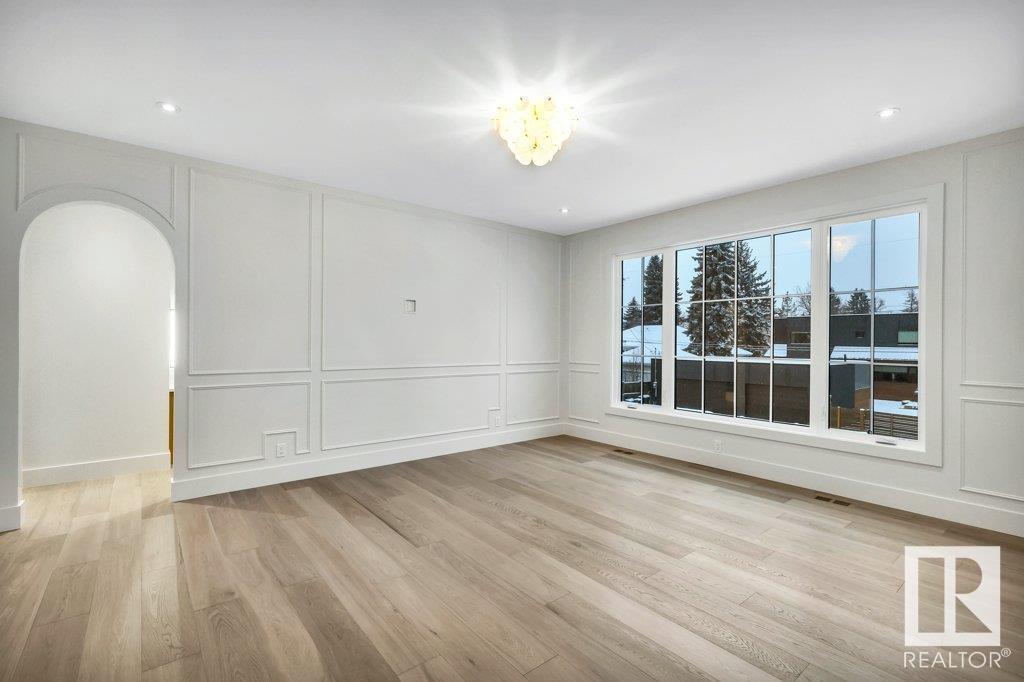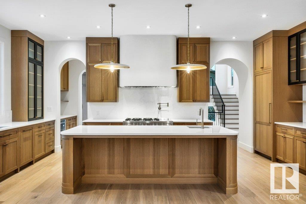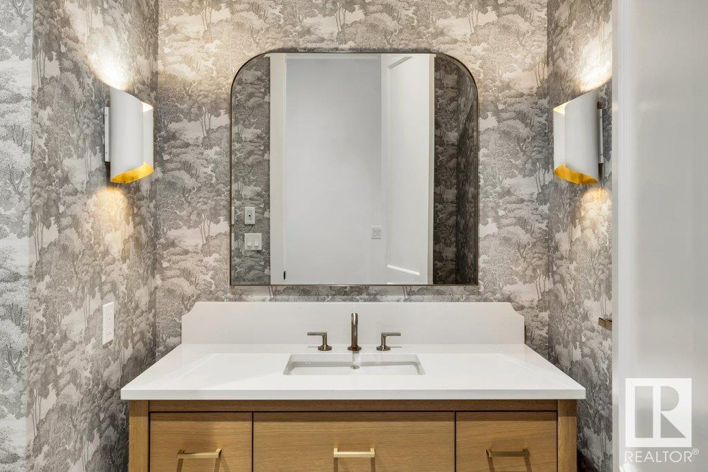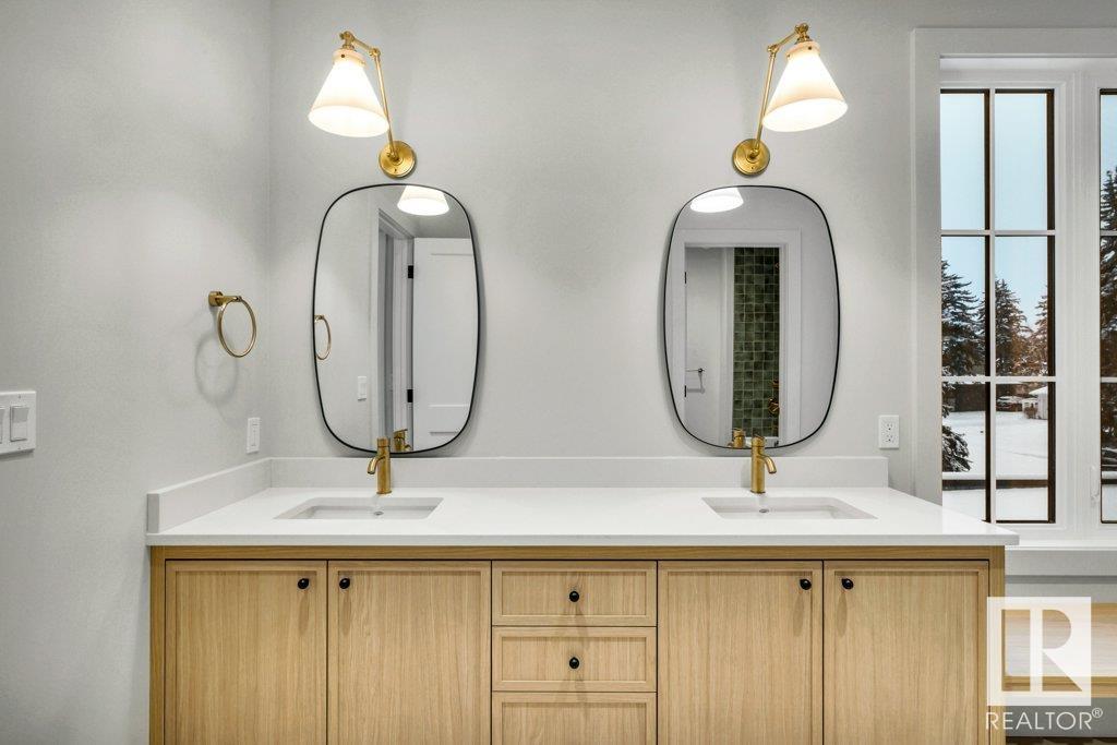 Situated on one of the only cul-de-sacs in East Crestwood, FC Developments’ latest custom estate features 6,500+sq.ft of developed living space on a 11,600sq.ft lot. 10′ ceilings greet you in the foyer & open up to a soaring 23’ vaulted ceiling in the living room. Custom cabinetry by Waygood can be found throughout the home, accented w integrated Jenn-Air appliances in the kitchen (incl 48″ gas range w double ovens & two dishwashers). Elegant archways & rounded corners are incorporated in the design incl the custom plaster hoodfan, oversized island & breakfast nook. An ATTACHED heated TRIPLE garage is connected by a breezeway; complete with custom storage, utility sink & large walk-in closet. Upstairs you’ll find 4 bedrooms with ENSUITES & WALK-IN CLOSETS FOR ALL. In the basement are 9′ ceilings, RADIANT HEATED floors, a custom bar area + built-ins, 2 add’l bedrooms (one styled as a GYM), a 4PC bath w a massive STEAMSHOWER connected to the gym area. Live steps from the River Valley in your own quiet oasis