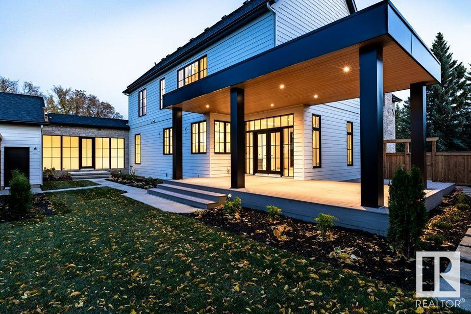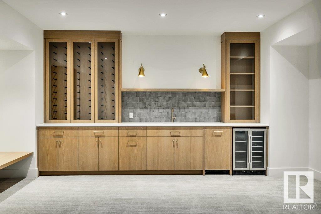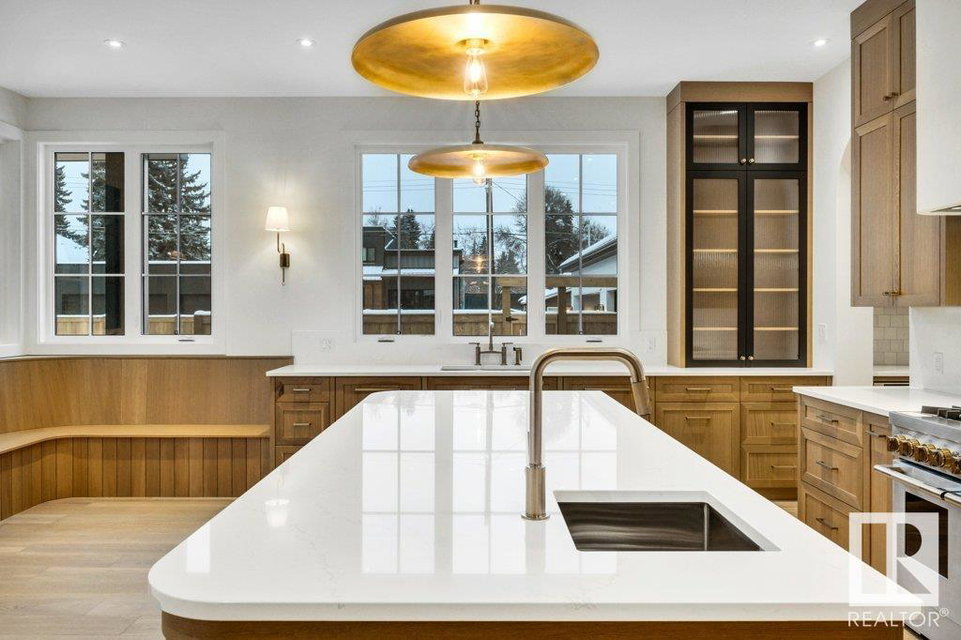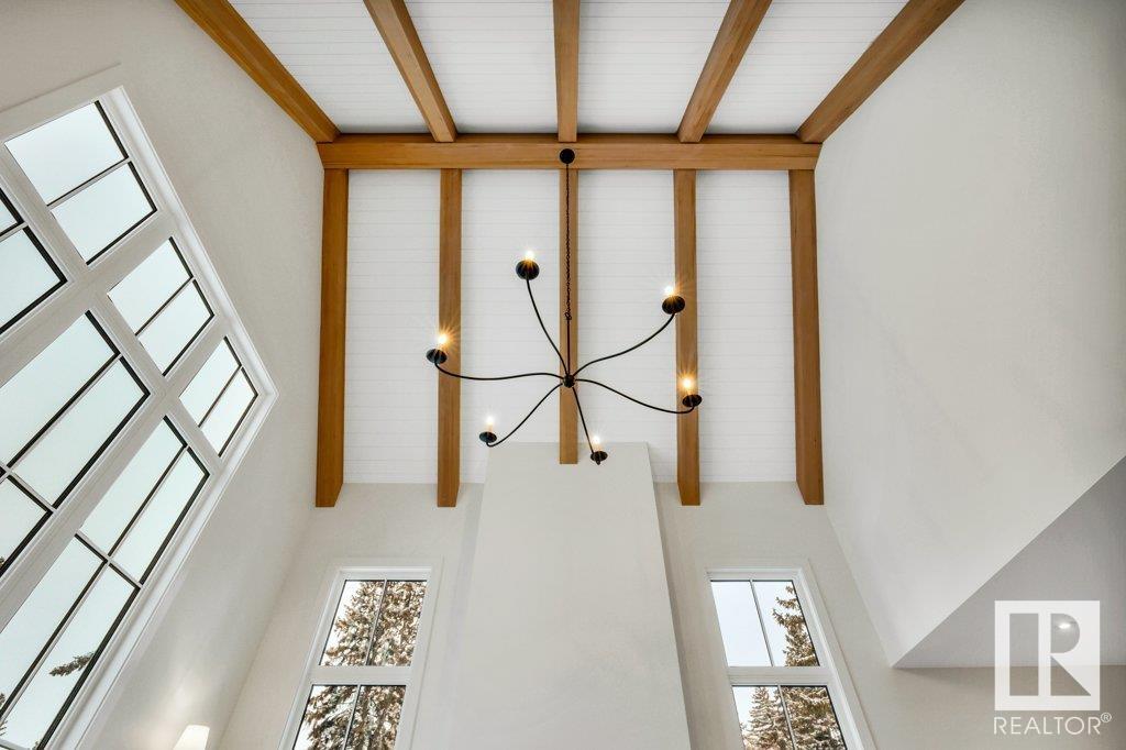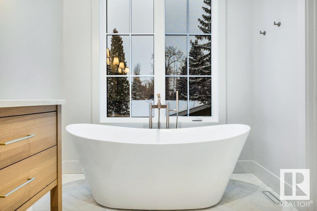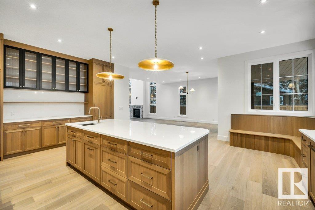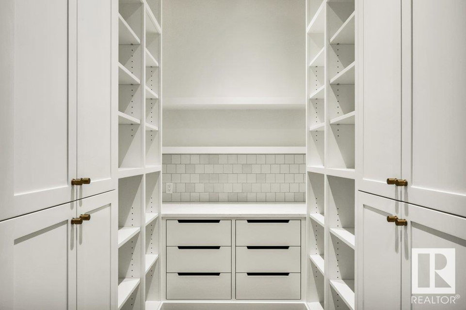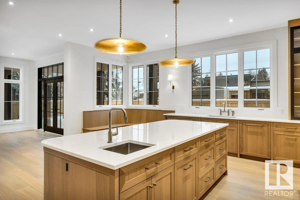 Situated on one of the only cul-de-sacs in East Crestwood, FC Developments’ latest custom estate features 6,500+sq.ft of developed living space on a 11,600sq.ft lot. 10′ ceilings greet you in the foyer & open up to a soaring 23’ vaulted ceiling in the living room. Custom cabinetry by Waygood can be found throughout the home, accented w integrated Jenn-Air appliances in the kitchen (incl 48″ gas range w double ovens & two dishwashers). Elegant archways & rounded corners are incorporated in the design incl the custom plaster hoodfan, oversized island & breakfast nook. An ATTACHED heated TRIPLE garage is connected by a breezeway; complete with custom storage, utility sink & large walk-in closet. Upstairs you’ll find 4 bedrooms with ENSUITES & WALK-IN CLOSETS FOR ALL. In the basement are 9′ ceilings, RADIANT HEATED floors, a custom bar area + built-ins, 2 add’l bedrooms (one styled as a GYM), a 4PC bath w a massive STEAMSHOWER connected to the gym area. Live steps from the River Valley in your own quiet oasis