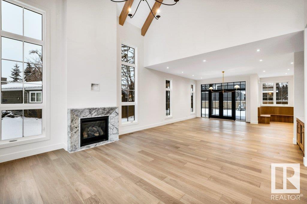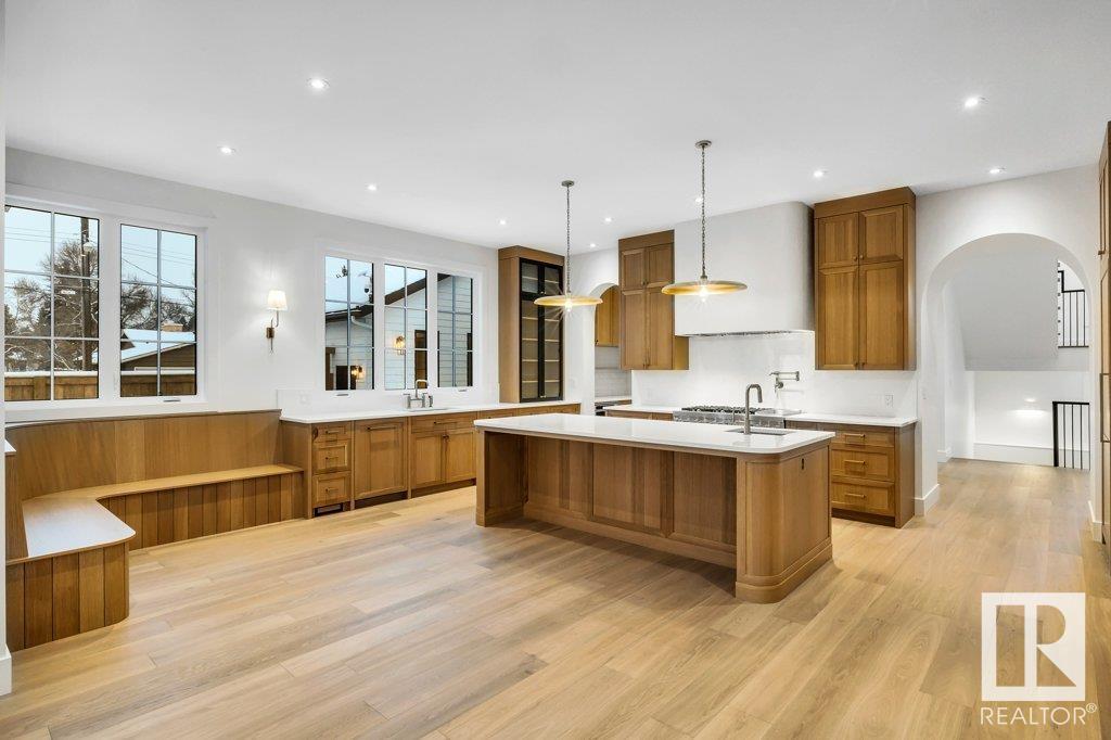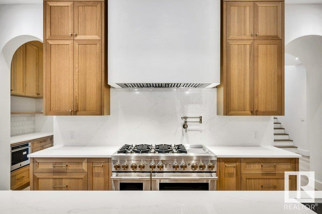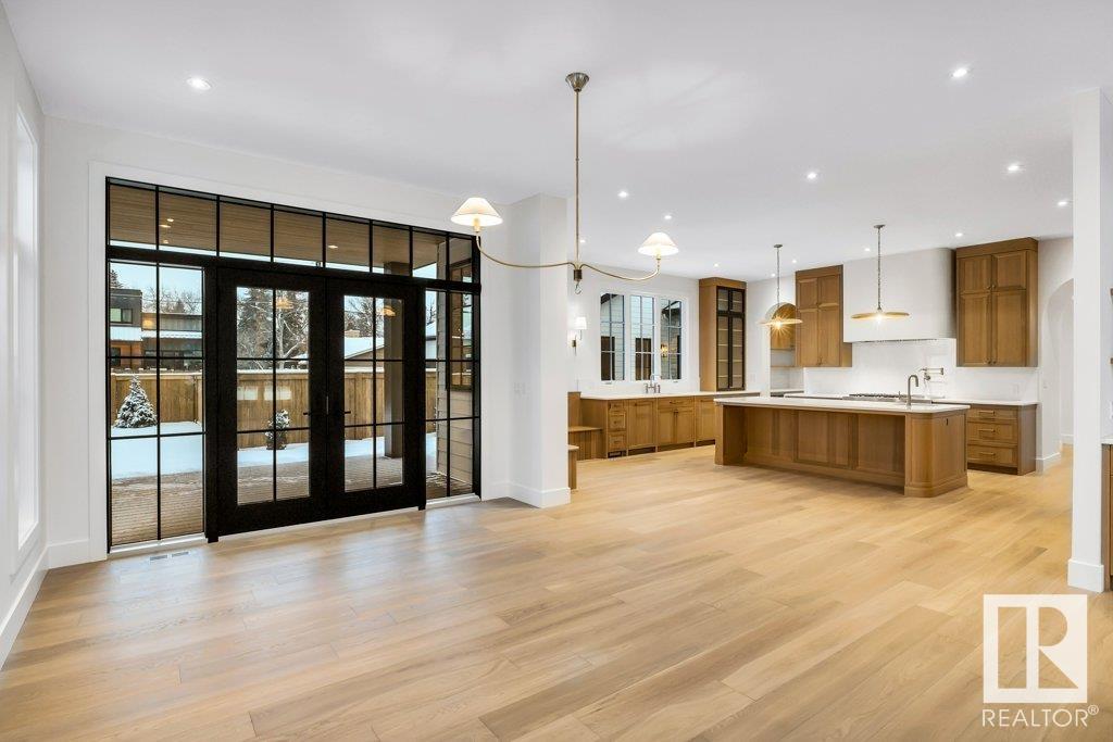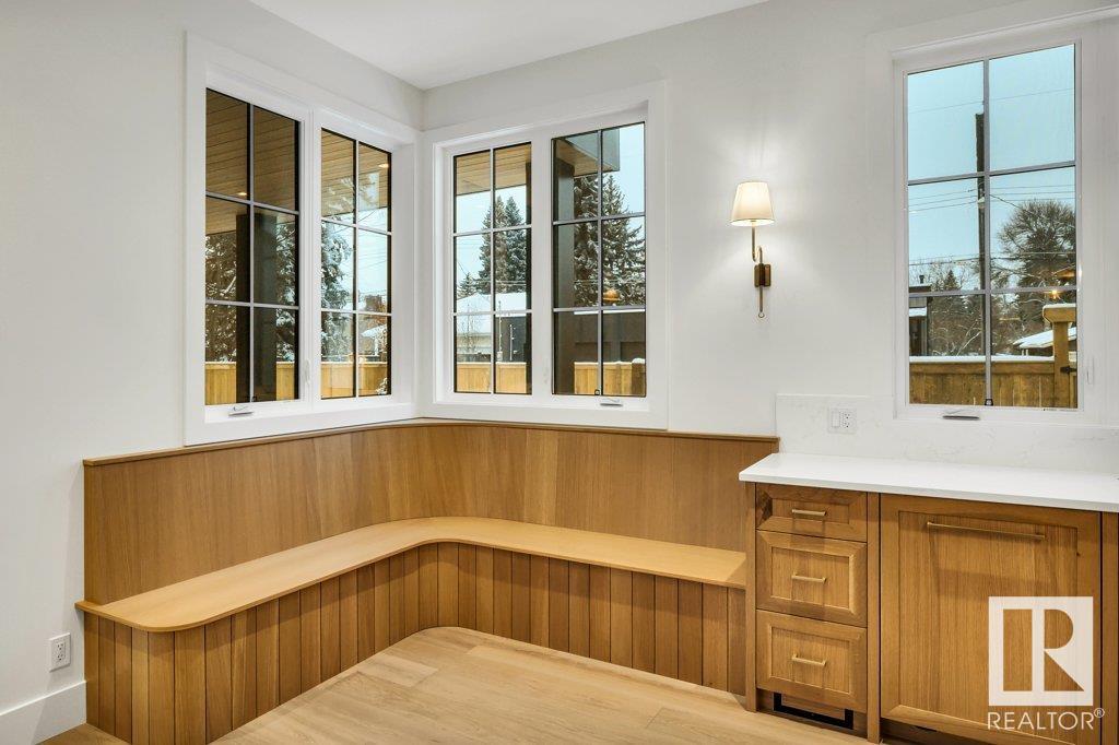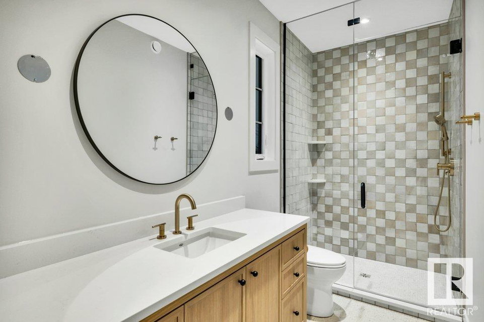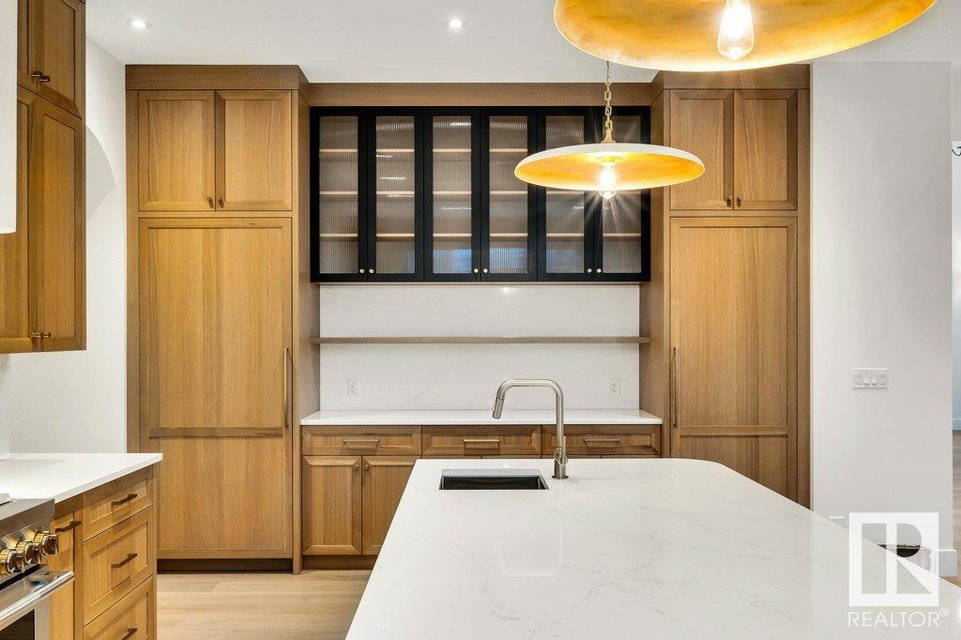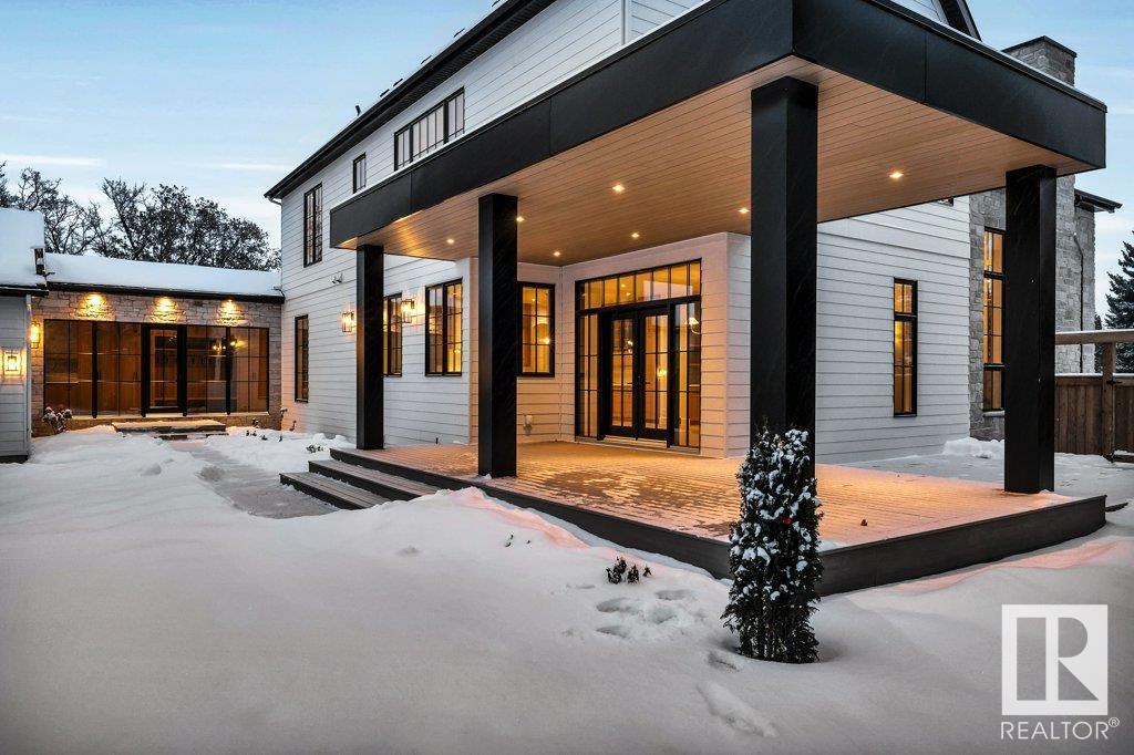 Situated on one of the only cul-de-sacs in East Crestwood, FC Developments’ latest custom estate features 6,500+sq.ft of developed living space on a 11,600sq.ft lot. 10′ ceilings greet you in the foyer & open up to a soaring 23’ vaulted ceiling in the living room. Custom cabinetry by Waygood can be found throughout the home, accented w integrated Jenn-Air appliances in the kitchen (incl 48″ gas range w double ovens & two dishwashers). Elegant archways & rounded corners are incorporated in the design incl the custom plaster hoodfan, oversized island & breakfast nook. An ATTACHED heated TRIPLE garage is connected by a breezeway; complete with custom storage, utility sink & large walk-in closet. Upstairs you’ll find 4 bedrooms with ENSUITES & WALK-IN CLOSETS FOR ALL. In the basement are 9′ ceilings, RADIANT HEATED floors, a custom bar area + built-ins, 2 add’l bedrooms (one styled as a GYM), a 4PC bath w a massive STEAMSHOWER connected to the gym area. Live steps from the River Valley in your own quiet oasis