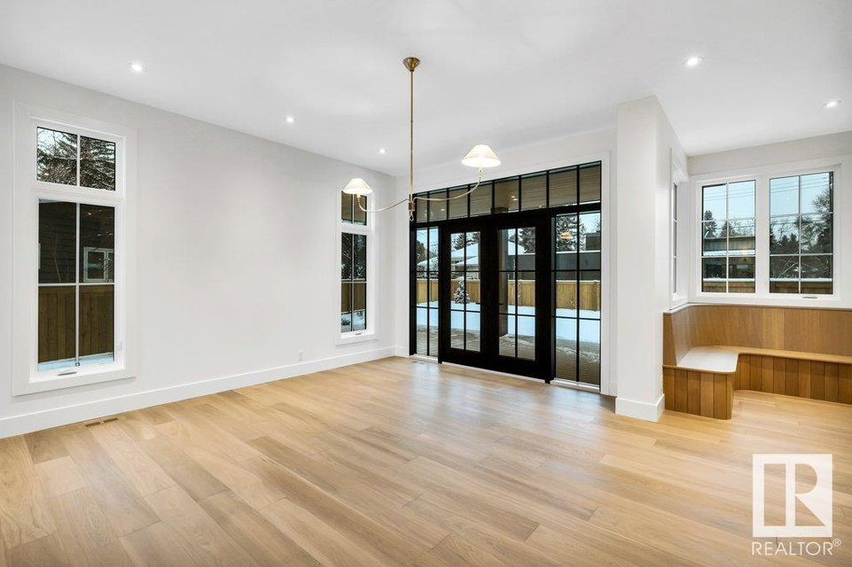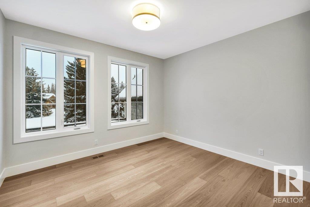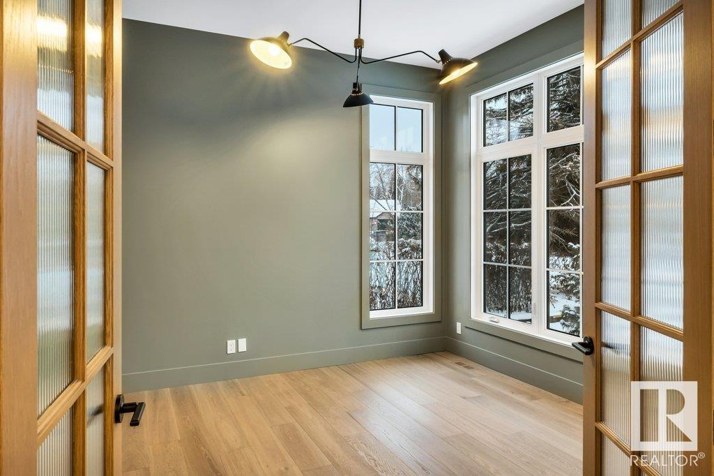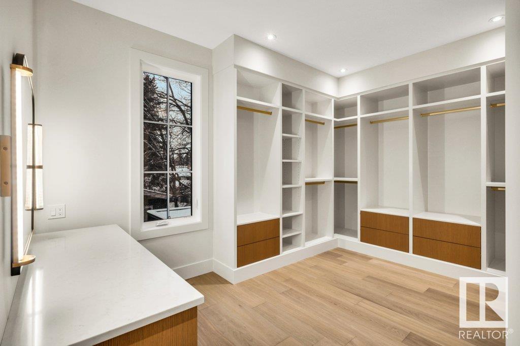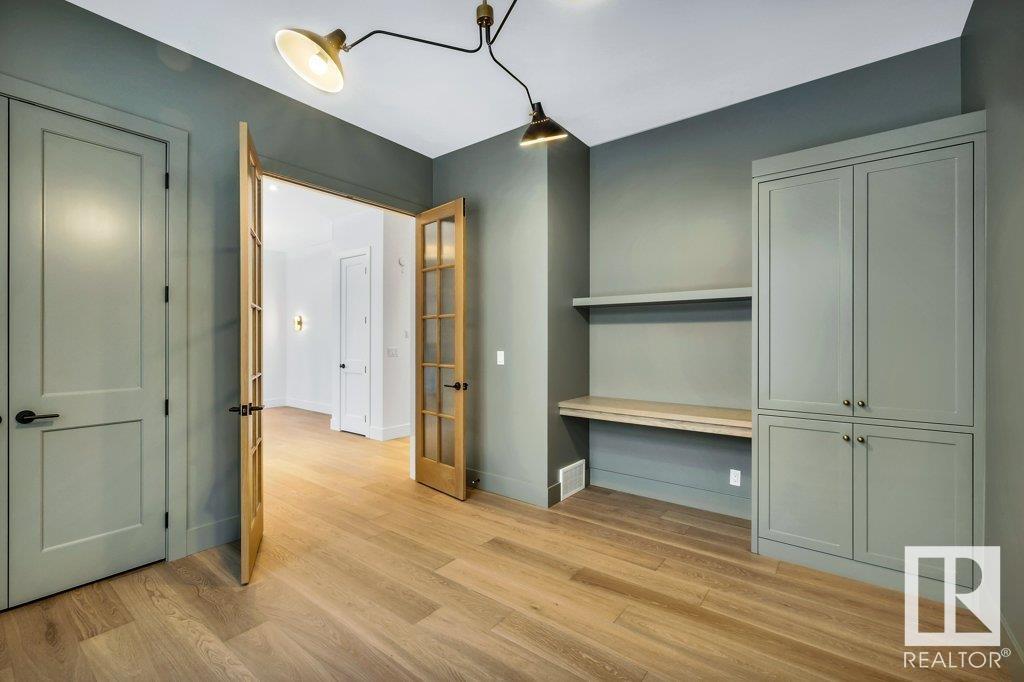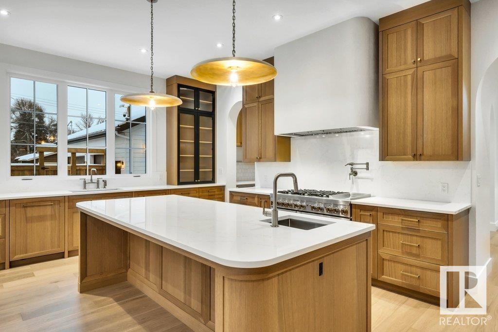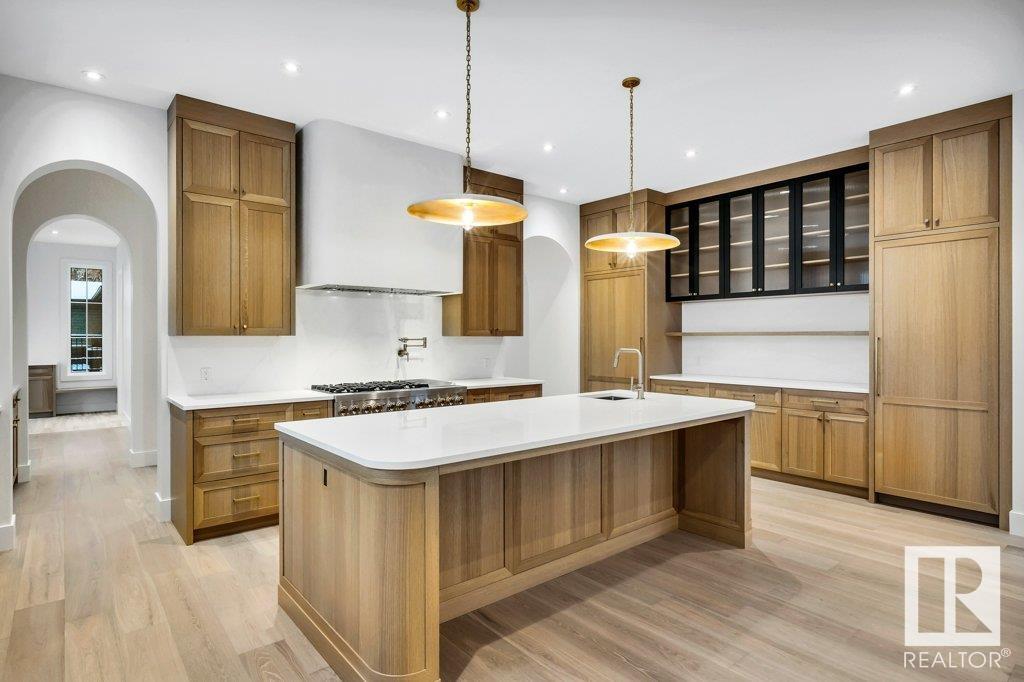 Situated on one of the only cul-de-sacs in East Crestwood, FC Developments’ latest custom estate features 6,500+sq.ft of developed living space on a 11,600sq.ft lot. 10′ ceilings greet you in the foyer & open up to a soaring 23’ vaulted ceiling in the living room. Custom cabinetry by Waygood can be found throughout the home, accented w integrated Jenn-Air appliances in the kitchen (incl 48″ gas range w double ovens & two dishwashers). Elegant archways & rounded corners are incorporated in the design incl the custom plaster hoodfan, oversized island & breakfast nook. An ATTACHED heated TRIPLE garage is connected by a breezeway; complete with custom storage, utility sink & large walk-in closet. Upstairs you’ll find 4 bedrooms with ENSUITES & WALK-IN CLOSETS FOR ALL. In the basement are 9′ ceilings, RADIANT HEATED floors, a custom bar area + built-ins, 2 add’l bedrooms (one styled as a GYM), a 4PC bath w a massive STEAMSHOWER connected to the gym area. Live steps from the River Valley in your own quiet oasis