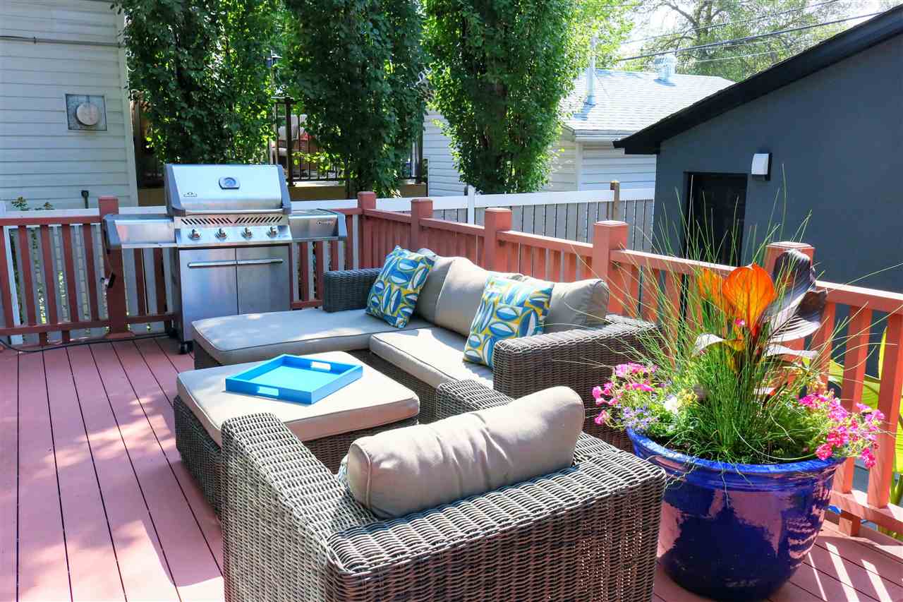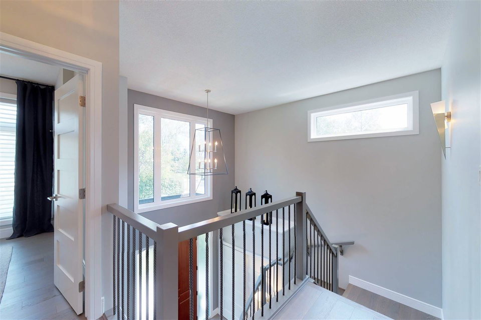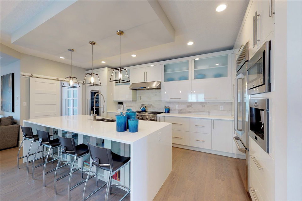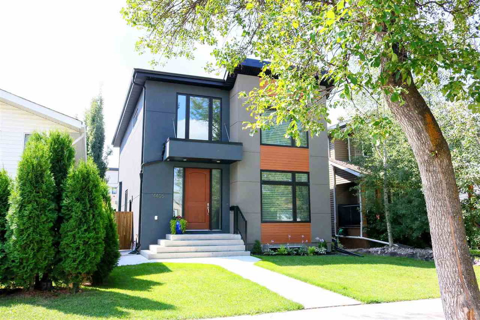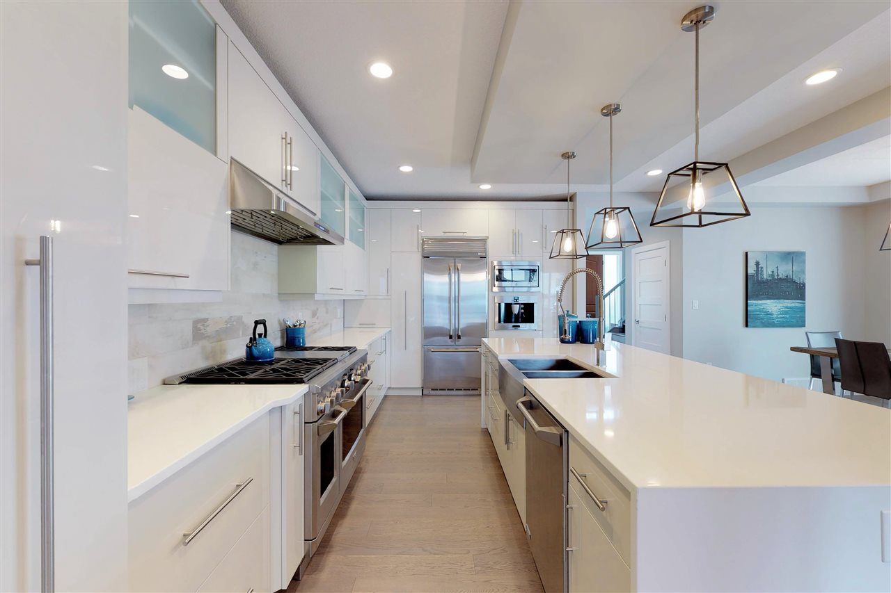 You’ll LOVE the access to Edmonton’s core with this 2,250 sqft. executive infill located on a tree-lined street in (hot hot hot) GROVENOR! The gorgeous two-storey was built in 2016 on a 33′ lot (NOT a skinny) & boasts 3 bedrooms (plus an office on the main) & 2.5 baths. The CUSTOM chef’s kitchen has S/S GE MONOGRAM appliances incl. a 6-burner GAS stove with griddle, double ovens, integrated refrigerator DRAWERS (2), & a Bosch coffee centre. You’ve never seen cabinetry like this! With BLUM functionality, the pull-out pantry systems (4) & AUTOMATIC uppers are sure to impress. Hardwood & quartz countertops are found throughout the home including on the 10′ island. Windows are triple-glazed w/ custom blinds (blackout in Master) allowing plenty of light (south-exposure). The HUGE master suite has a walk-in closet w/ built-ins & 5 piece ensuite with SOAKER tub & HEATED FLOORS. Large deck can be accessed through double 8′ sliders on main. Add’t feat: A/C, CENTRAL VAC, & heated DBL garage (24’wide) to fit 2 SUVs.