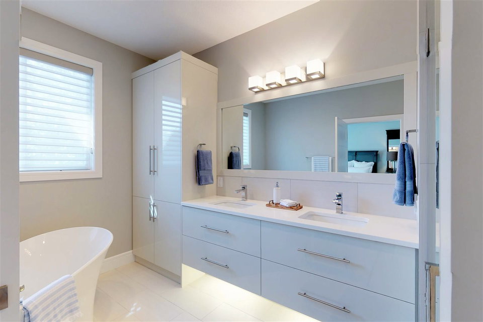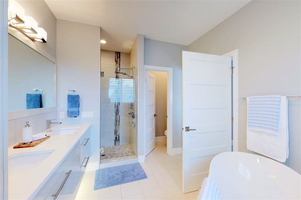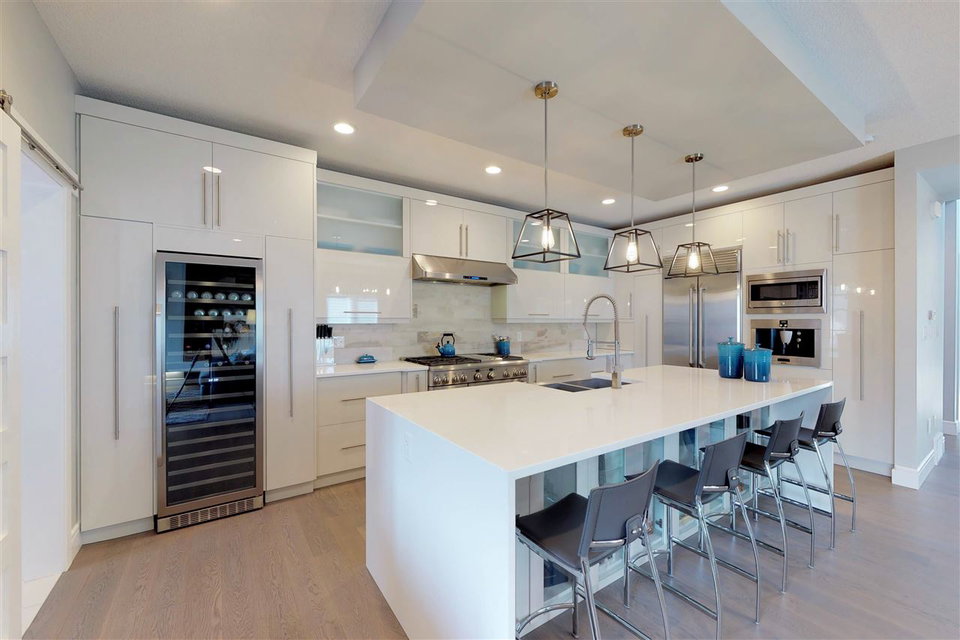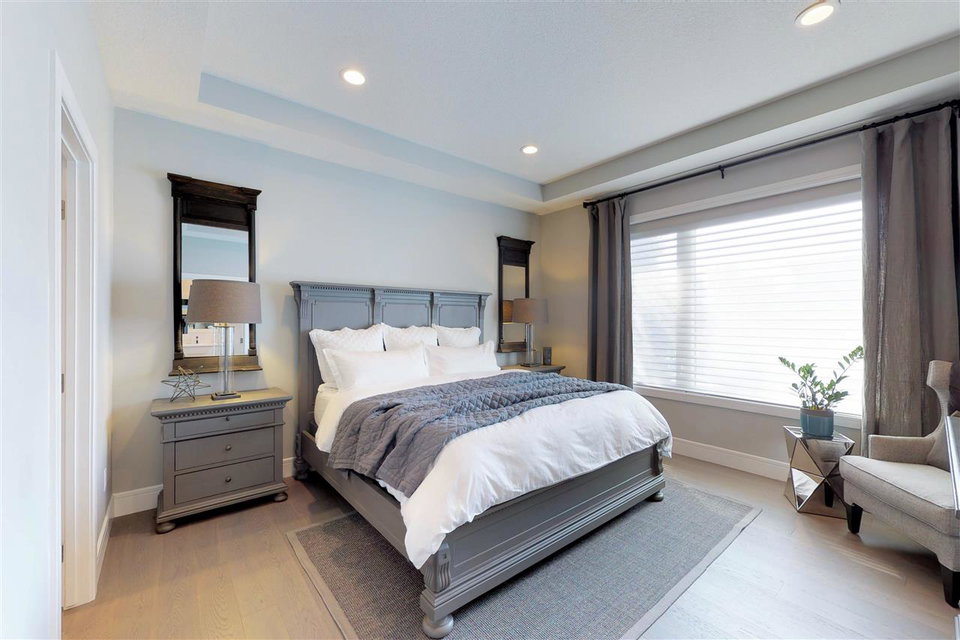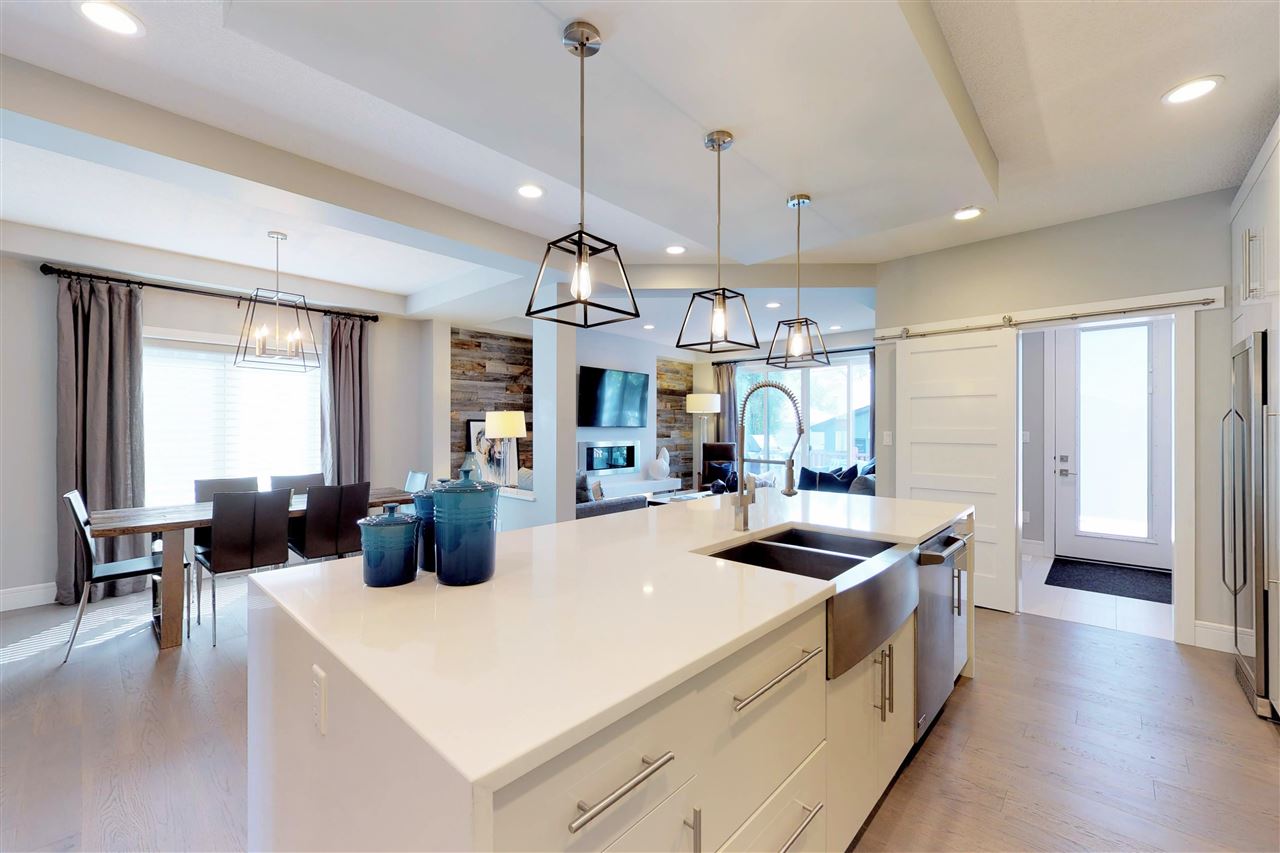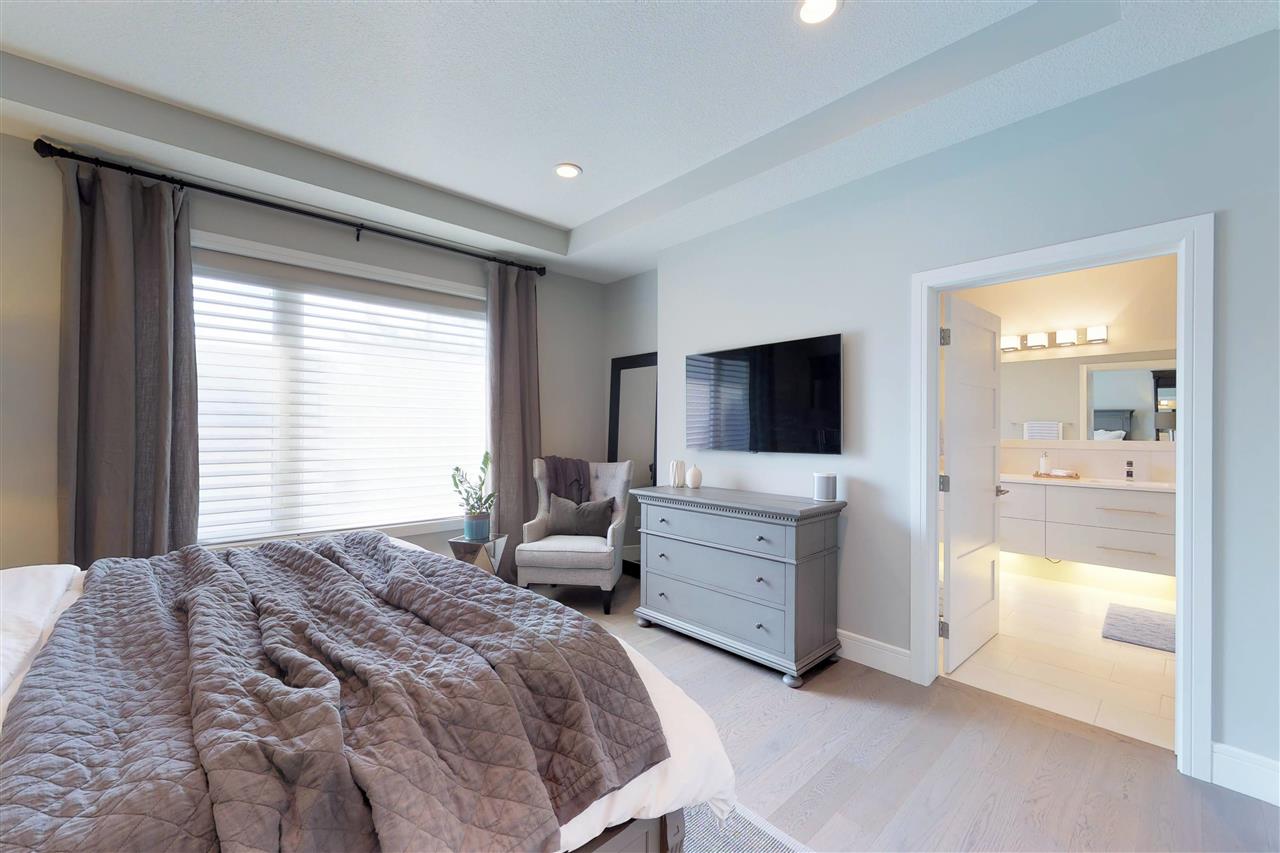You’ll LOVE the access to Edmonton’s core with this 2,250 sqft. executive infill located on a tree-lined street in (hot hot hot) GROVENOR! The gorgeous two-storey was built in 2016 on a 33′ lot (NOT a skinny) & boasts 3 bedrooms (plus an office on the main) & 2.5 baths. The CUSTOM chef’s kitchen has S/S GE MONOGRAM appliances incl. a 6-burner GAS stove with griddle, double ovens, integrated refrigerator DRAWERS (2), & a Bosch coffee centre. You’ve never seen cabinetry like this! With BLUM functionality, the pull-out pantry systems (4) & AUTOMATIC uppers are sure to impress. Hardwood & quartz countertops are found throughout the home including on the 10′ island. Windows are triple-glazed w/ custom blinds (blackout in Master) allowing plenty of light (south-exposure). The HUGE master suite has a walk-in closet w/ built-ins & 5 piece ensuite with SOAKER tub & HEATED FLOORS. Large deck can be accessed through double 8′ sliders on main. Add’t feat: A/C, CENTRAL VAC, & heated DBL garage (24’wide) to fit 2 SUVs.