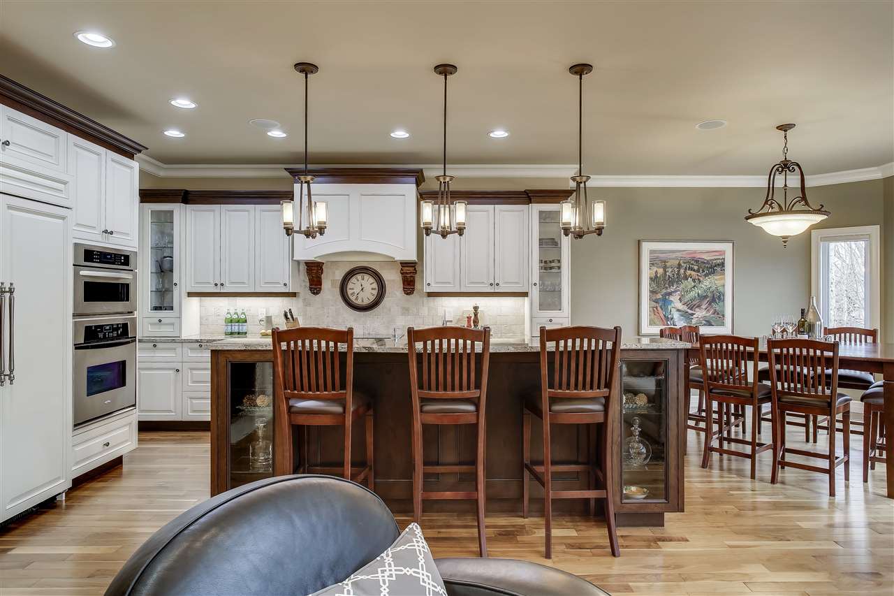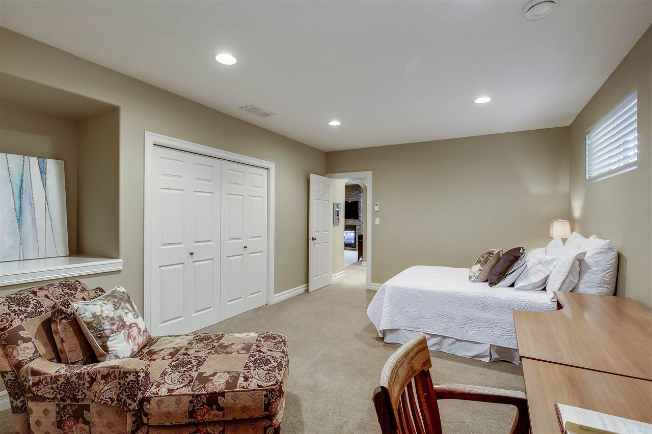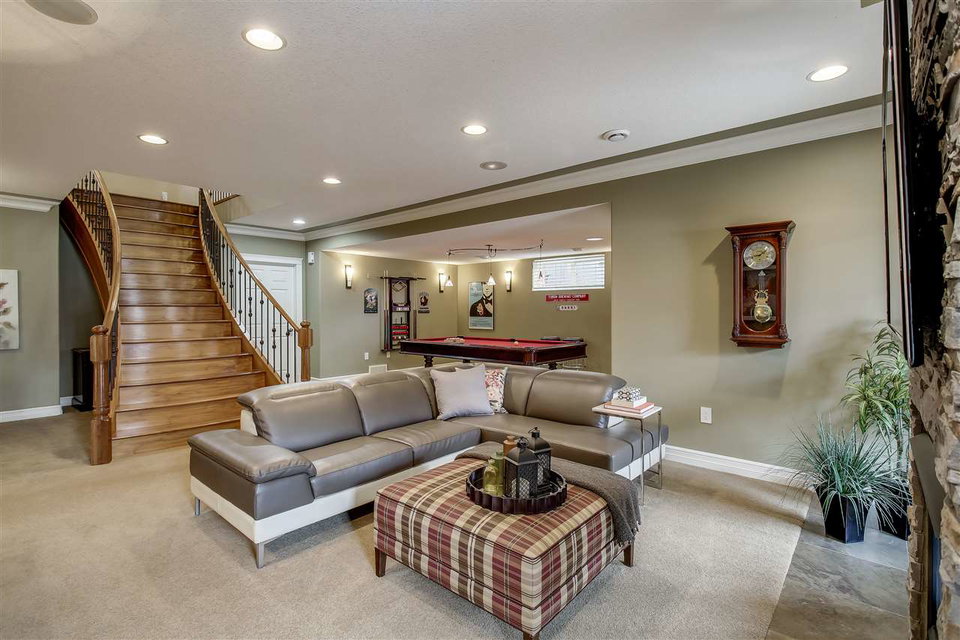 Custom-built, WALKOUT bungalow in Donsdale backing onto walking trail. This 1,779 sq ft home by Western Living Homes exudes pride of ownership. The foyer features a striking barrel ceiling framing the custom hardwood staircase to below. The main living area with its 14′, crown-moulding capped ceilings is flooded in light by the South-facing windows & opens into the kitchen & dining area. Custom cabinetry prominently featured in this traditional home along w. cherry hardwood & granite countertops. Main floor master suite (w. access to rear deck), 5PC ensuite with HEATED floor, STEAM SHOWER, jetted soaker tub & walk-in closet. Main level also has laundry & office space. Below grade you’ll find 2 bedrooms, a 3PC bath, home gym & rec room w. double-sided gas fireplace to the exterior & pool table (incl. in sale). Features not to be overlooked: infloor heat throughout basement, sprinkler system (incl. irrigation for potted plants), electric shades, SONOS & AC! True 1-level living for those looking to simplify.