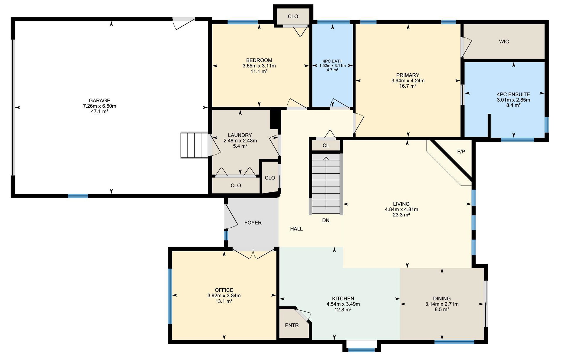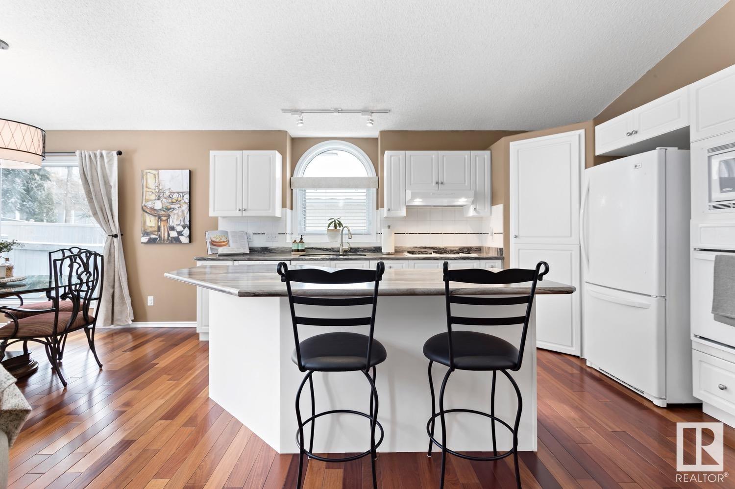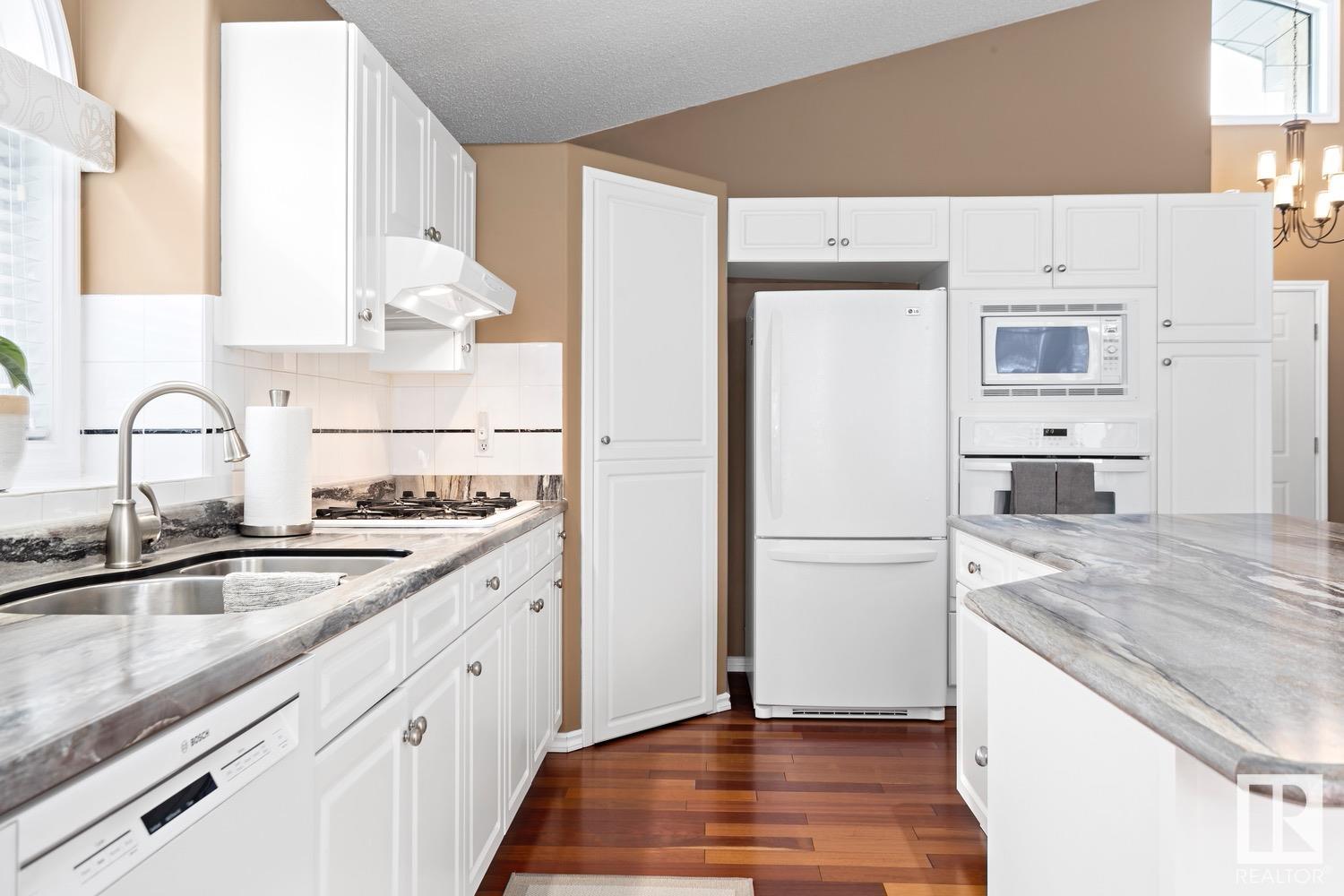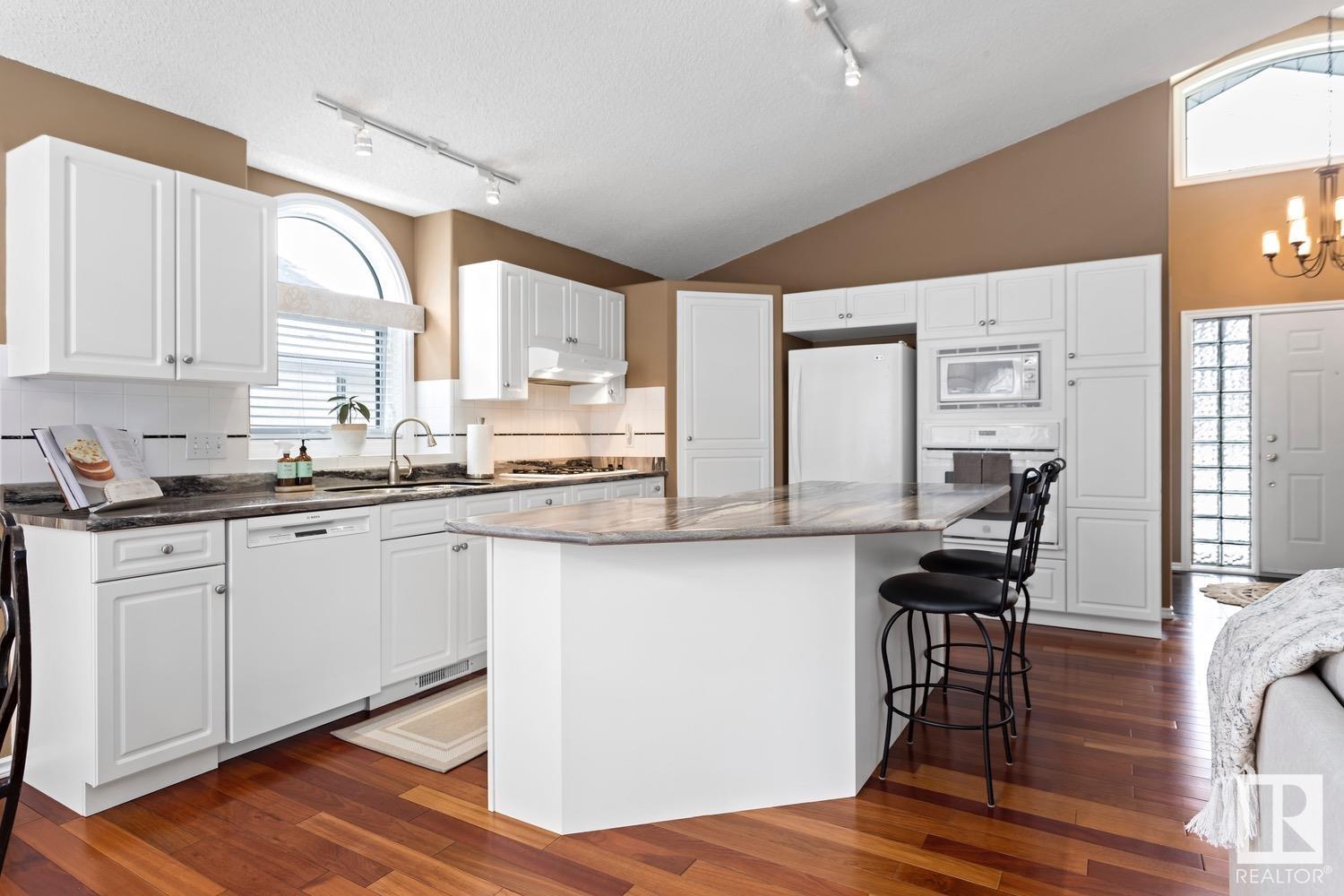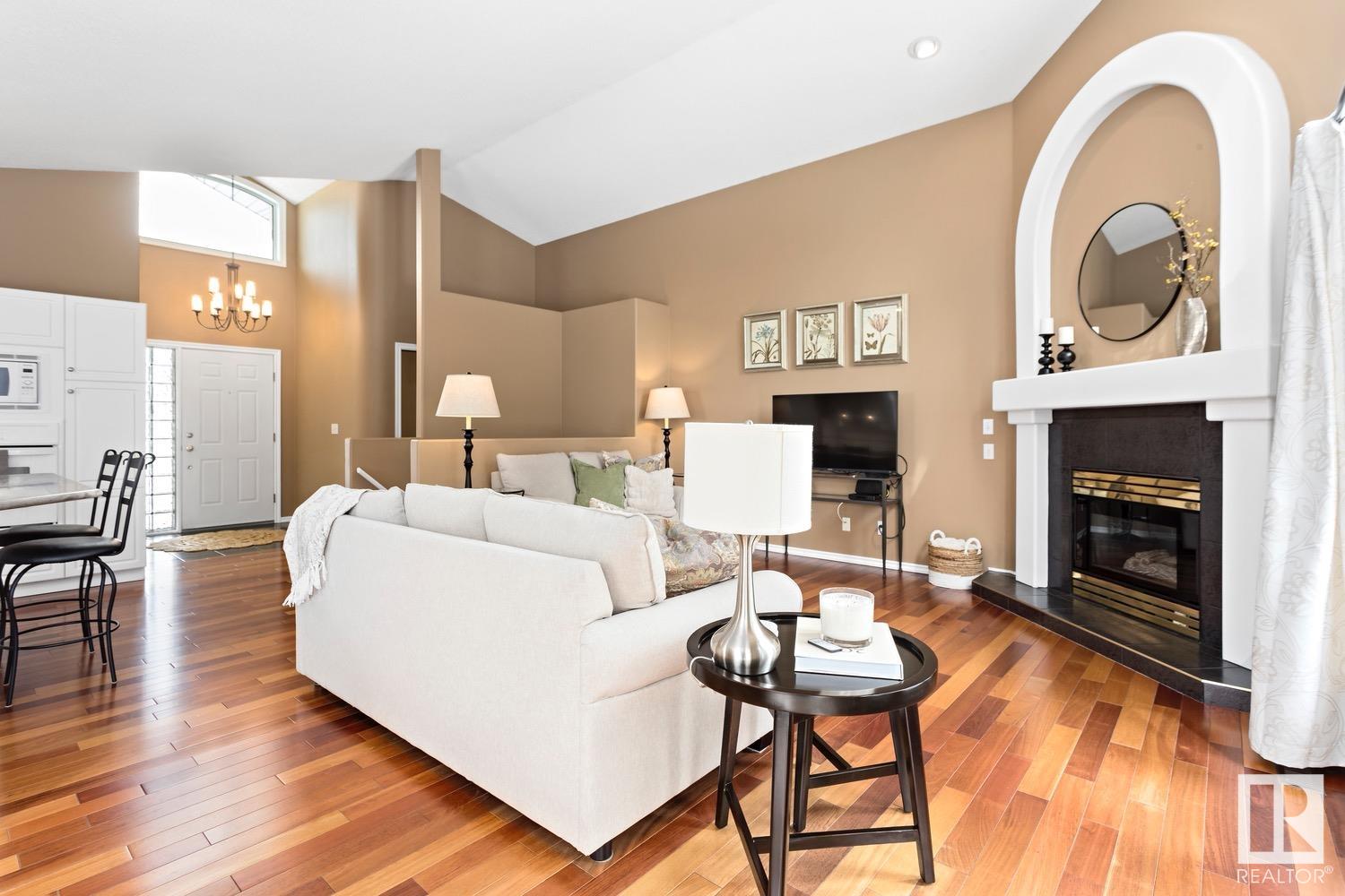 Spotless, single-level living in Heritage Lakes (+an attached garage)! You’ll fall in love with the soaring, vaulted ceilings upon entering this 1,524 sq.ft, 4 bed/3 bath home. The open concept living, dining & kitchen area is bright & welcoming – featuring gleaming hardwood floors & punctuated by a gas fireplace. The sizeable primary suite can accommodate a king-sized bed & has plenty of storage with a walk-in closet. The 4PC ensuite has a soaker tub as well as separate shower. The main floor also features an additional bedroom, another 4PC bathroom, MAIN FLOOR LAUNDRY & a flex room that current acts as an office but would make a great formal dining room. The FULLY FINISHED basement (9′ ceilings) houses a massive rec space, 2 oversized bedrooms (each w. walk-in closets), another 3PC bath & large storage/mechanical room. Outside is a private, East-facing backyard w. new CEDAR deck(2021) & water feature. Upgrades include newer windows(2017), furnace(2019),HWT(2023), AC. All POLY-B PROFESSIONALLY REMOVED.