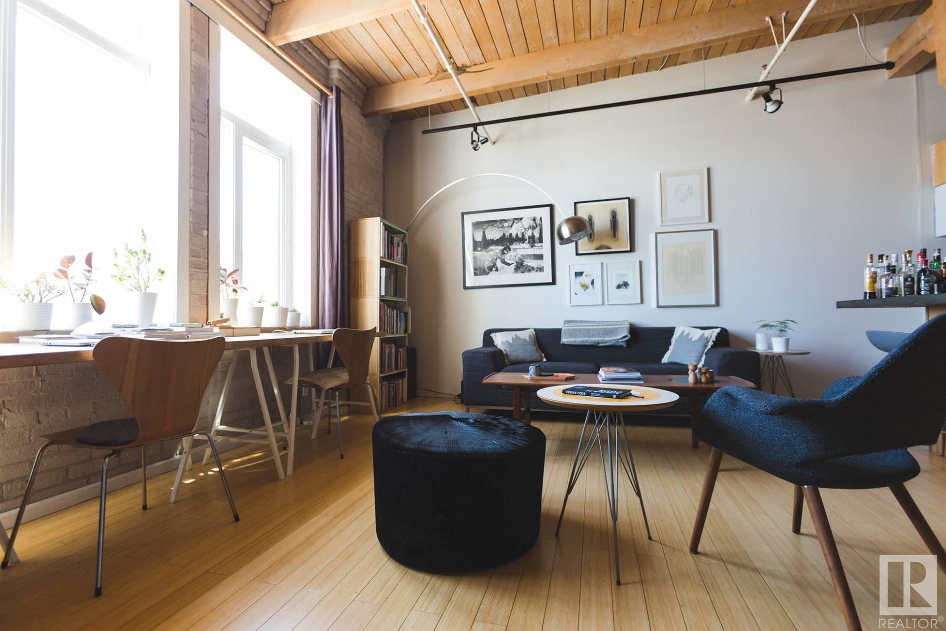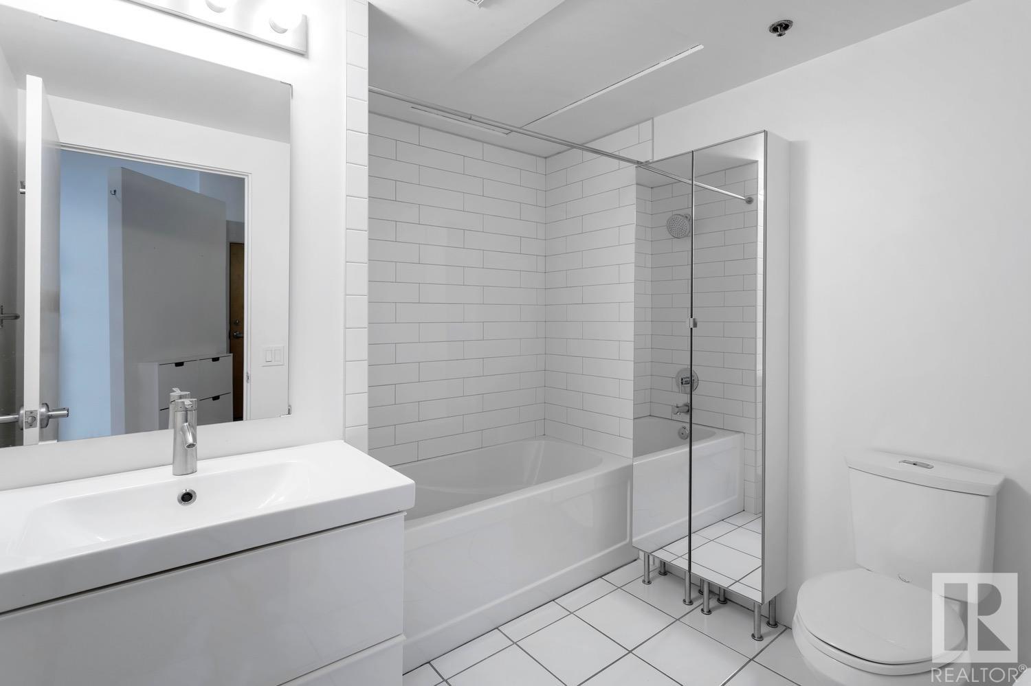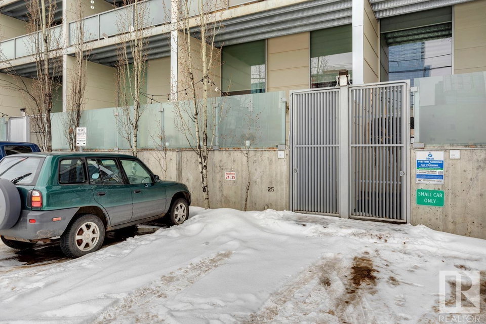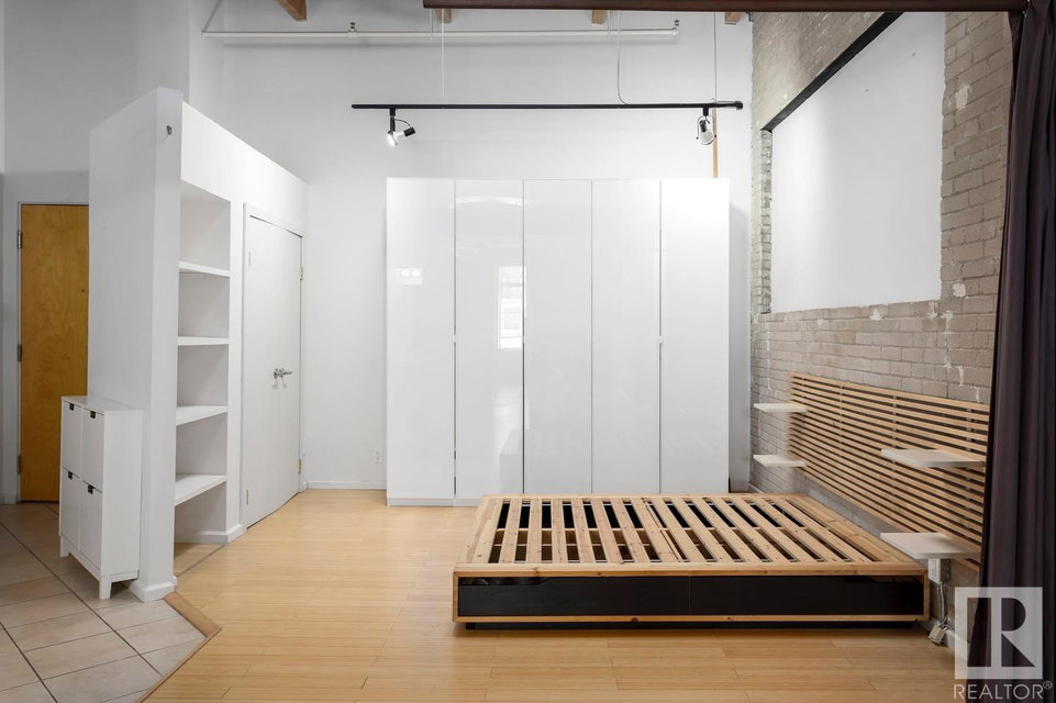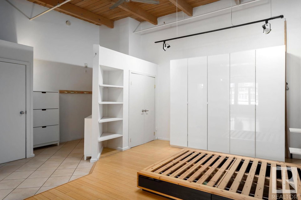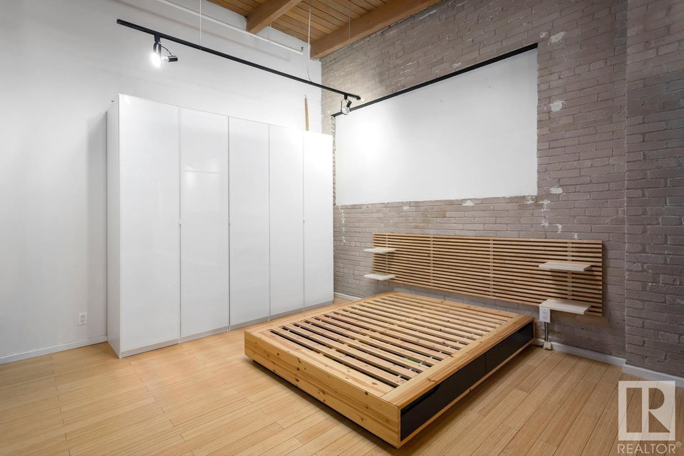 Incredible character LOFT with 12′, WOOD-BEAM ceilings & EXPOSED BRICK just steps from Macewan University & Corona LRT station. This historic property, redeveloped by Dub Architects, is what DT living is all about. The open-concept home has defined living spaces, all clad with bamboo hardwood. The kitchen features newer S/S appliances & concrete countertops. The vintage (70’s) IKEA pendants further emphasize the intriguing vibe this property embodies. Massive, East-facing windows showcase the DT-SKYLINE VIEW & flood the property with light. The 4PC bathroom was recently updated with bright, white subway tile & is adjacent the large bedroom area (complete with closable skylight). IN-SUITE LAUNDRY & an assigned PARKING stall complete this home. The building’s on-site caretaker keeps the common spaces looking beautiful & well-maintained. With reasonable condo fees & walkability to amenities such as grocery stores, 104 ST’s restaurants & bars, Rogers Place & public transit, this QUIET END-UNIT awaits!