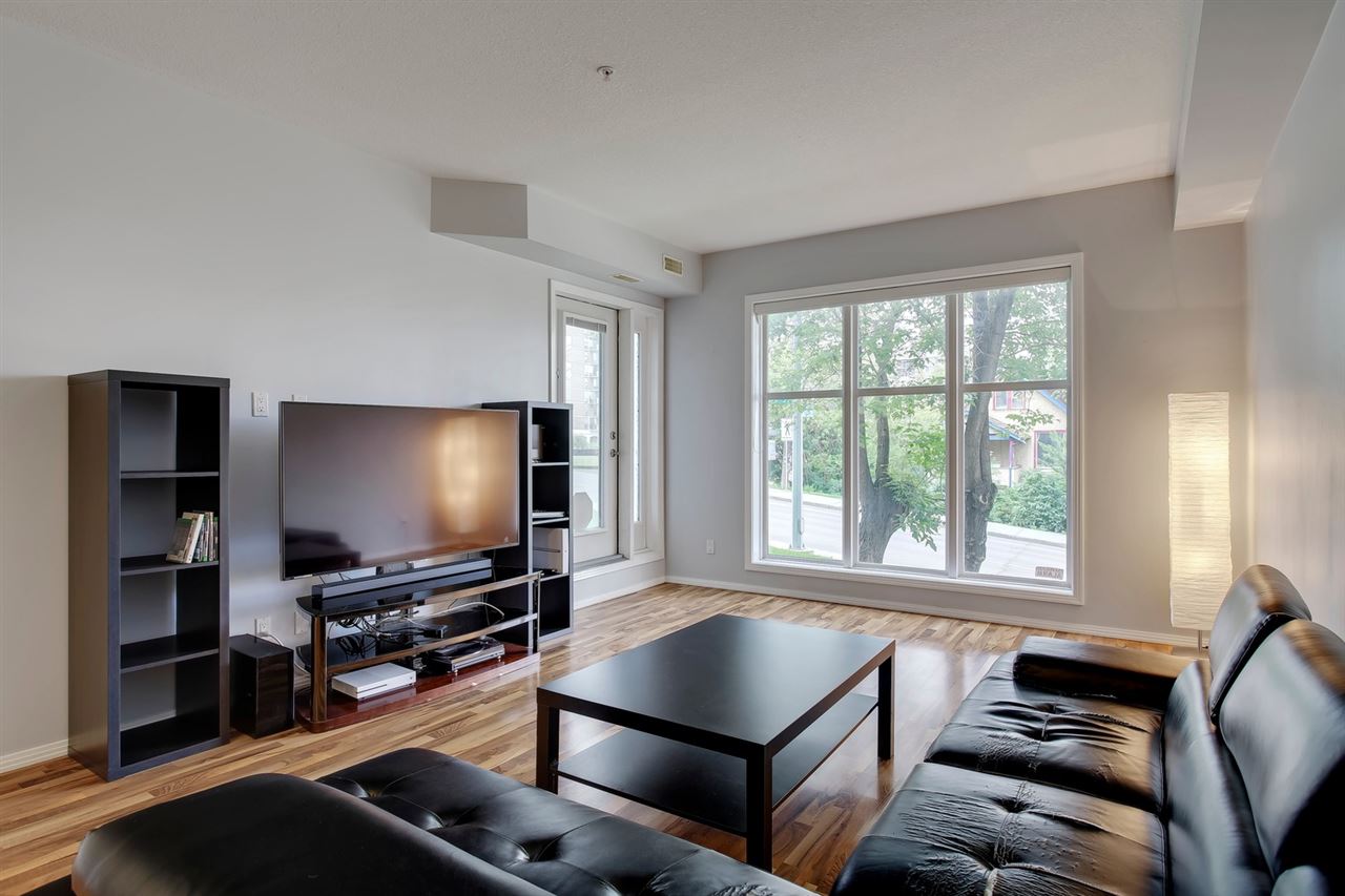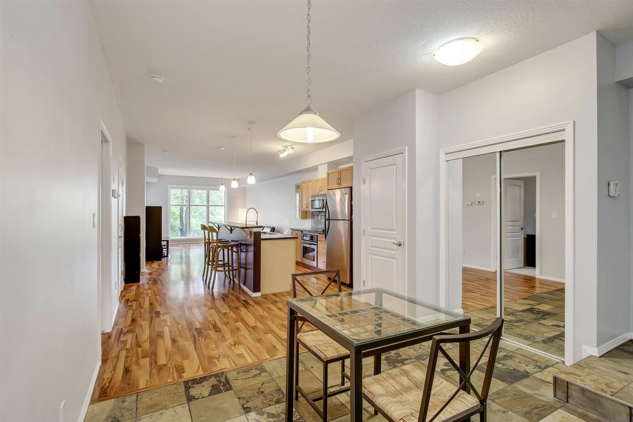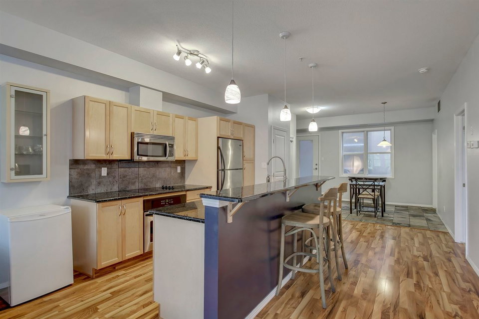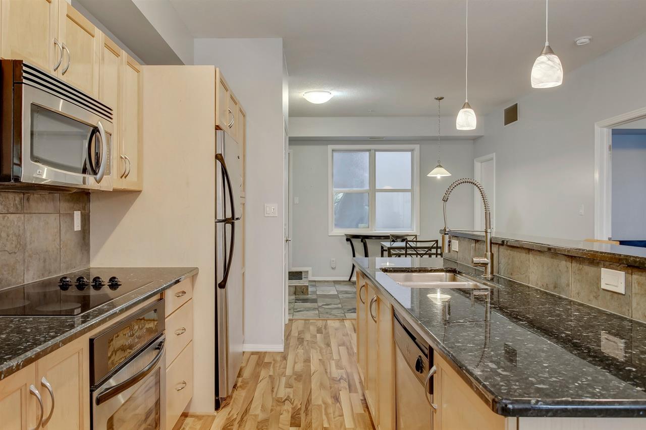 Can’t beat the value for this 2 BED/2 BATH condo in the heart of Downtown YEG. With over 1,010 sq ft of living space, titled UNDERGROUND parking and IN-SUITE laundry, this home has everything you’ll need. You’ll love the upgraded slate flooring that greets you upon entry of this open-concept unit. The oversized, East-facing windows flood the home with light. Your kitchen includes STAINLESS STEEL appliances, granite countertops and a bar for casual dining. The 2 bedrooms are cleverly separated by a 4PC bathroom for privacy (great for roommates). The master suite comes with its own 3PC ensuite and windows on both the North and East walls for light. As a pet-friendly building, this home’s main floor location is great for quick access for bathroom breaks. Walk to work, Rogers Place or the River Valley with this centrally-located unit. A great first home or property to add to your rental portfolio.