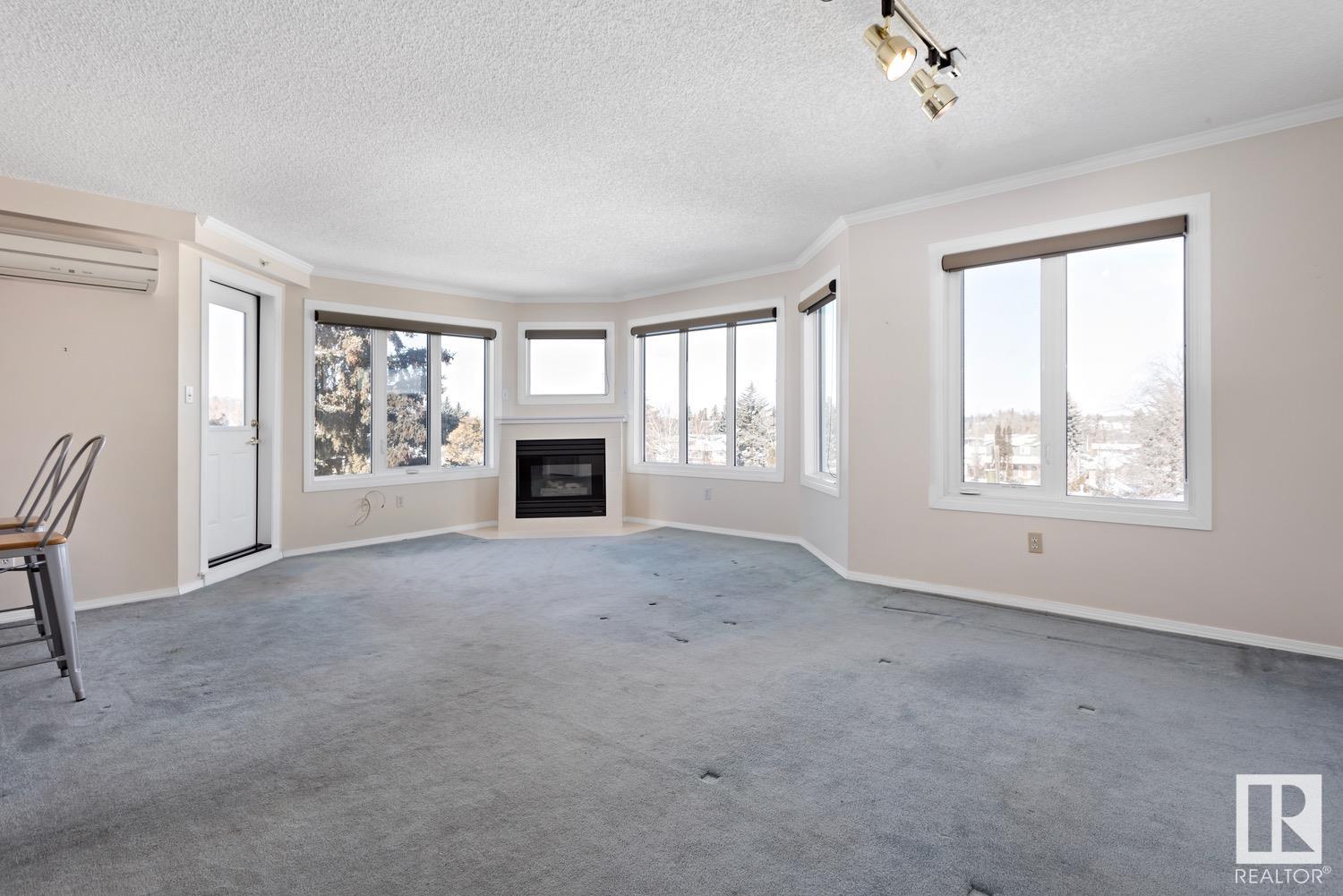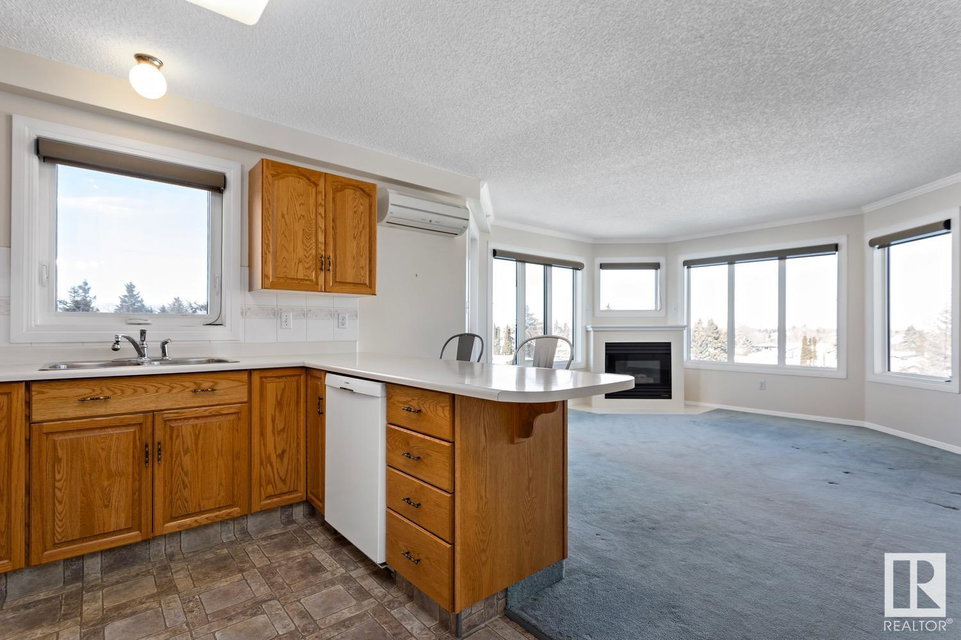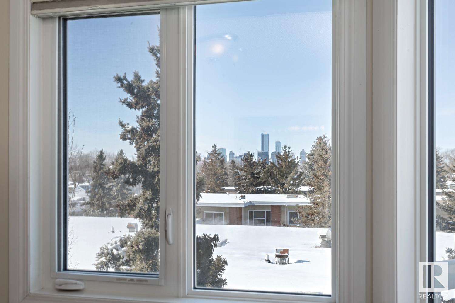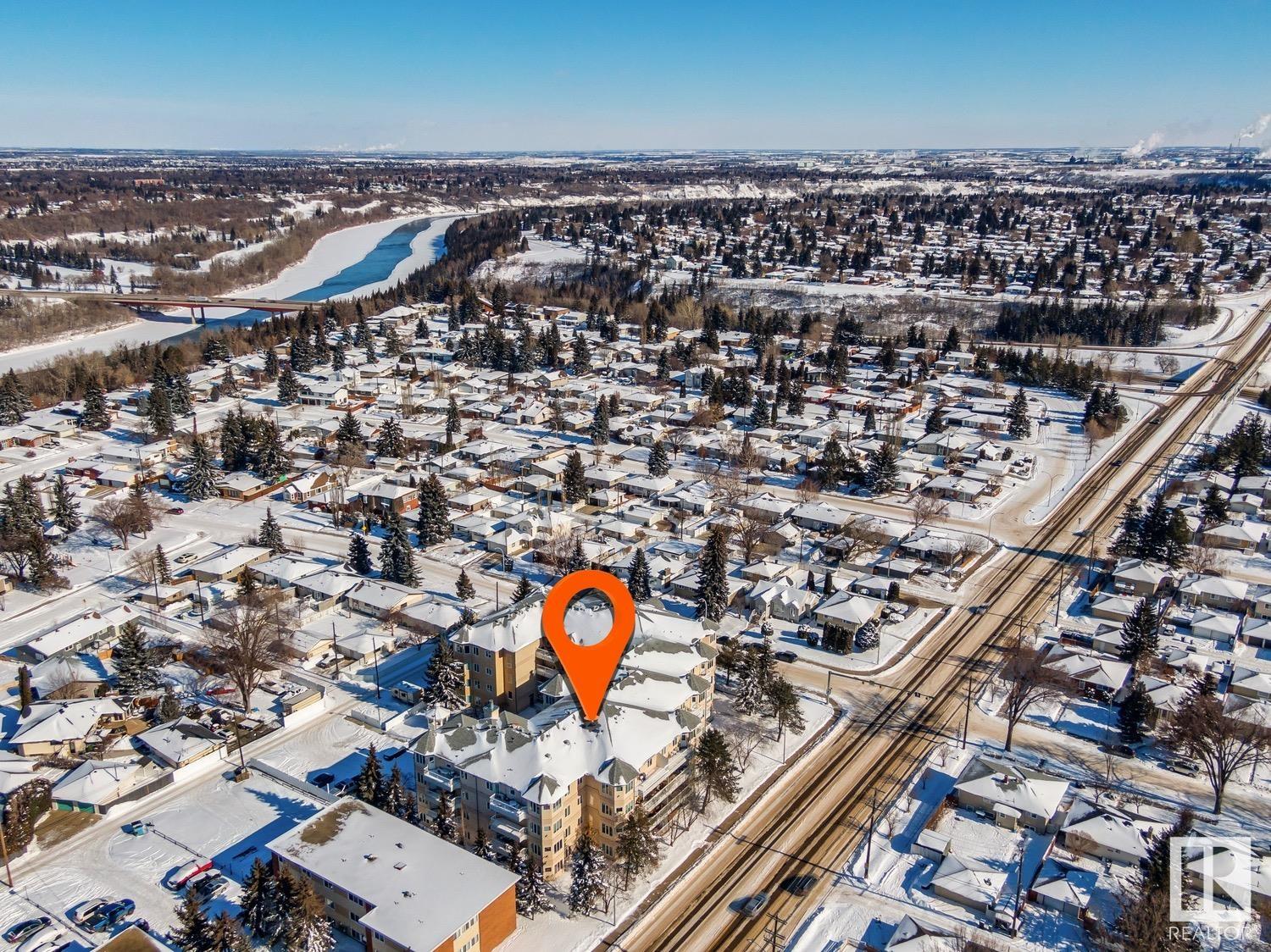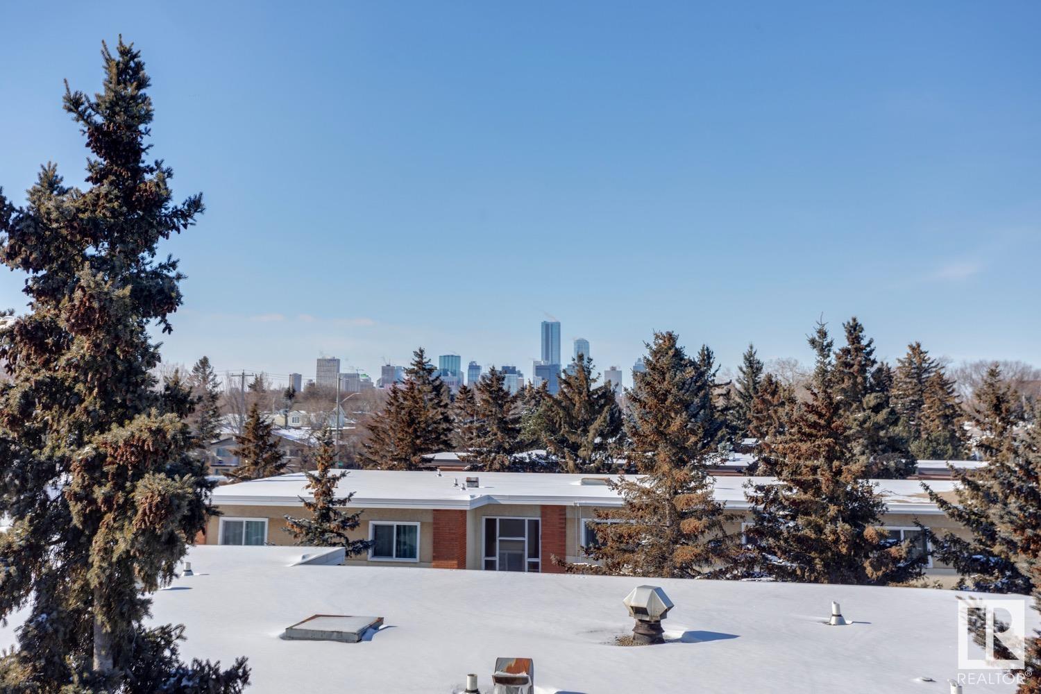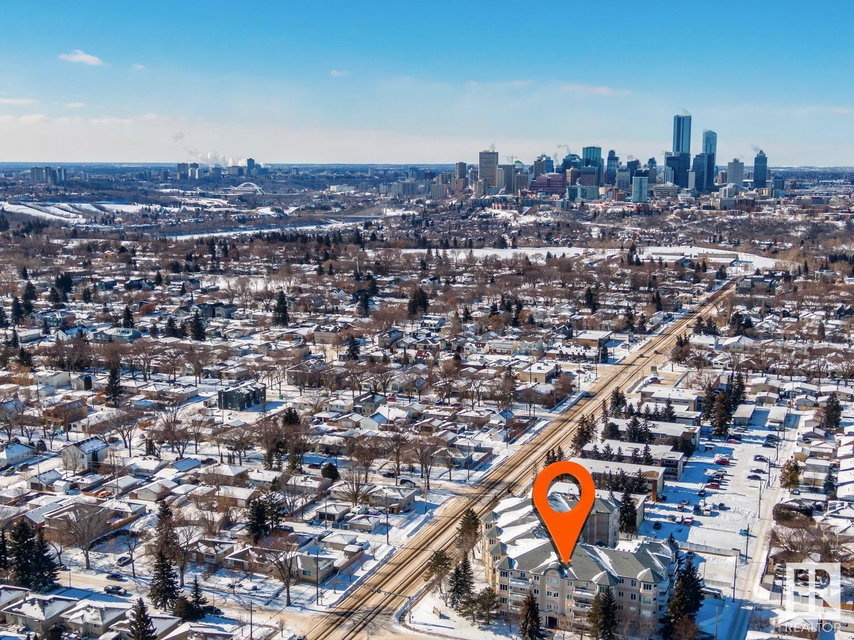 TOP FLOOR, CORNER UNIT with views of the downtown skyline & River Valley in Forest Heights. This 2 bed/2 bath property (1076sq.ft) boasts one of the best locations in the building with unobstructed views to the West & North. Upon entering this home, you’ll fall in love with the layout. The open concept living/dining area showcases the views & is punctuated with a GAS fireplace. The kitchen has plenty of counter space & storage (including a pantry). The primary suite is large enough to accommodate a king-sized bed & features double closets & a 3PC ensuite. The second bedroom is directly across from a 4PC bath & is on the opposite side of the unit for privacy. A massive laundry/storage room is just off the formal foyer. IN-FLOOR heating runs throughout the unit. Add’l features incl AC, a gas BBQ hookup & 1 TITLED,UNDERGROUND stall w storage. Building amenities such as a gym, guest suite & car wash bay. Close to DT, the River Valley (Riverside Golf Course) & Gretzky Drive. Live in the heart of it all!