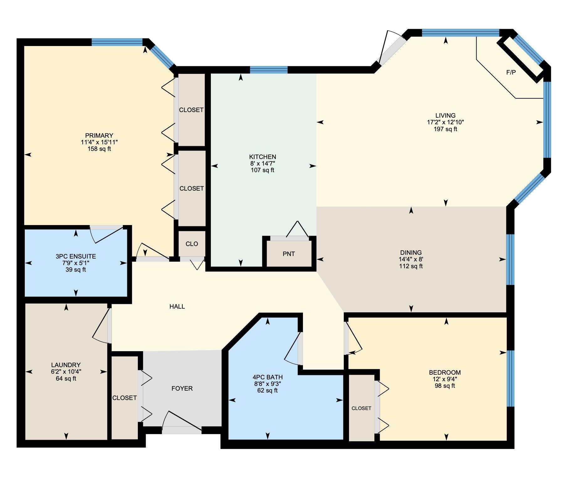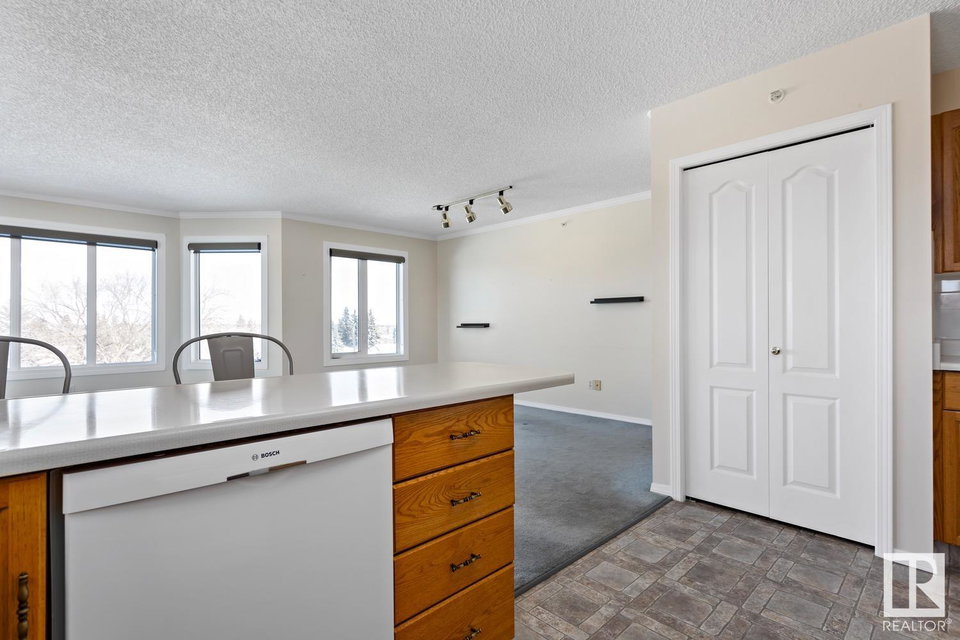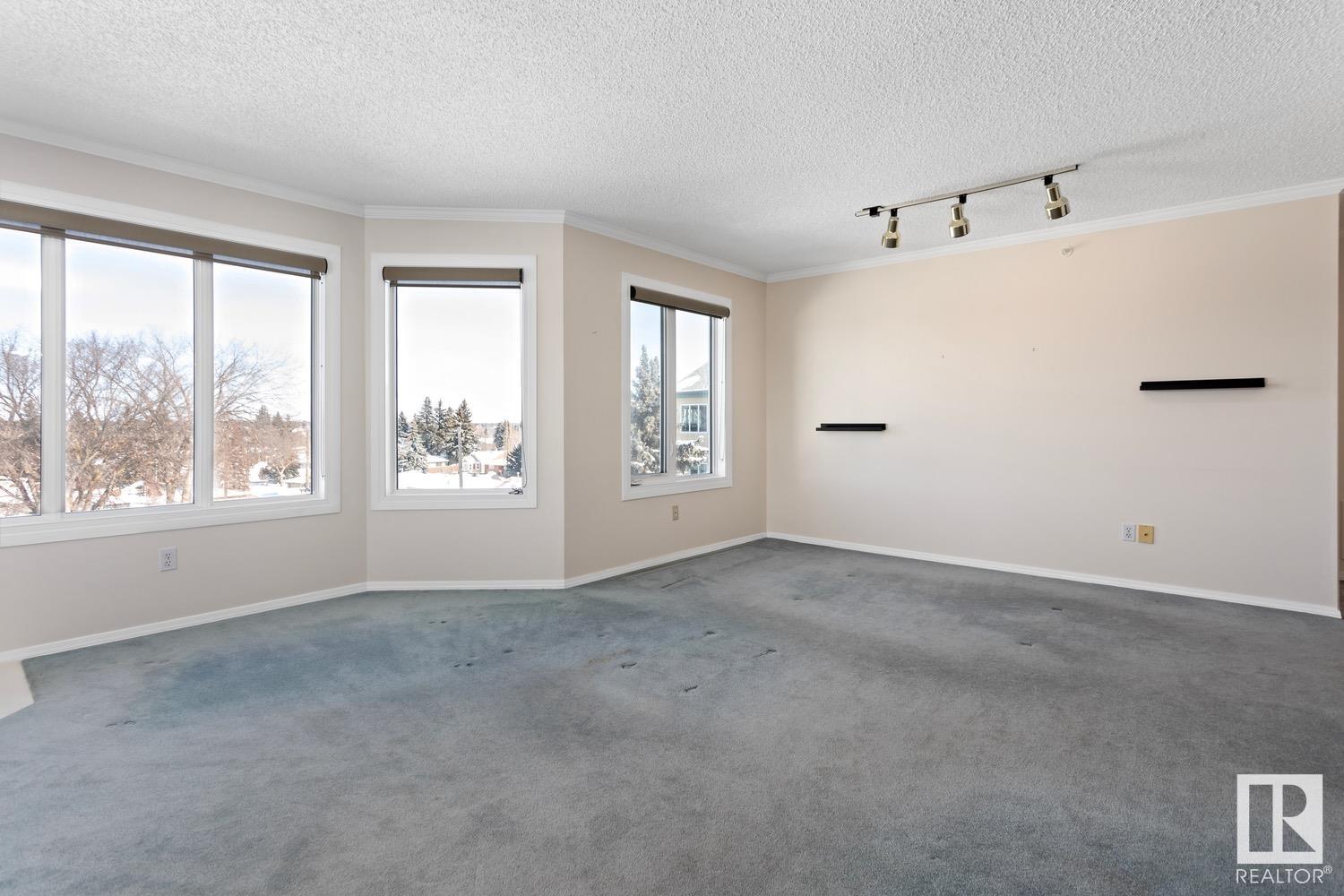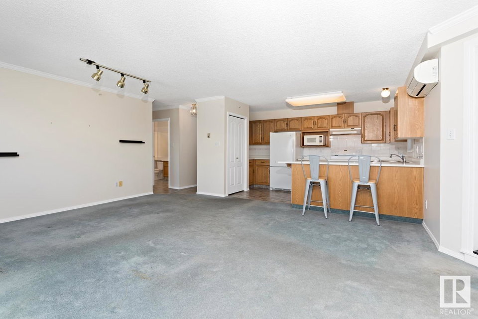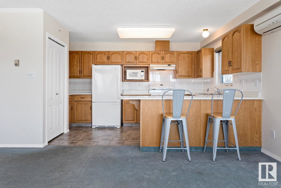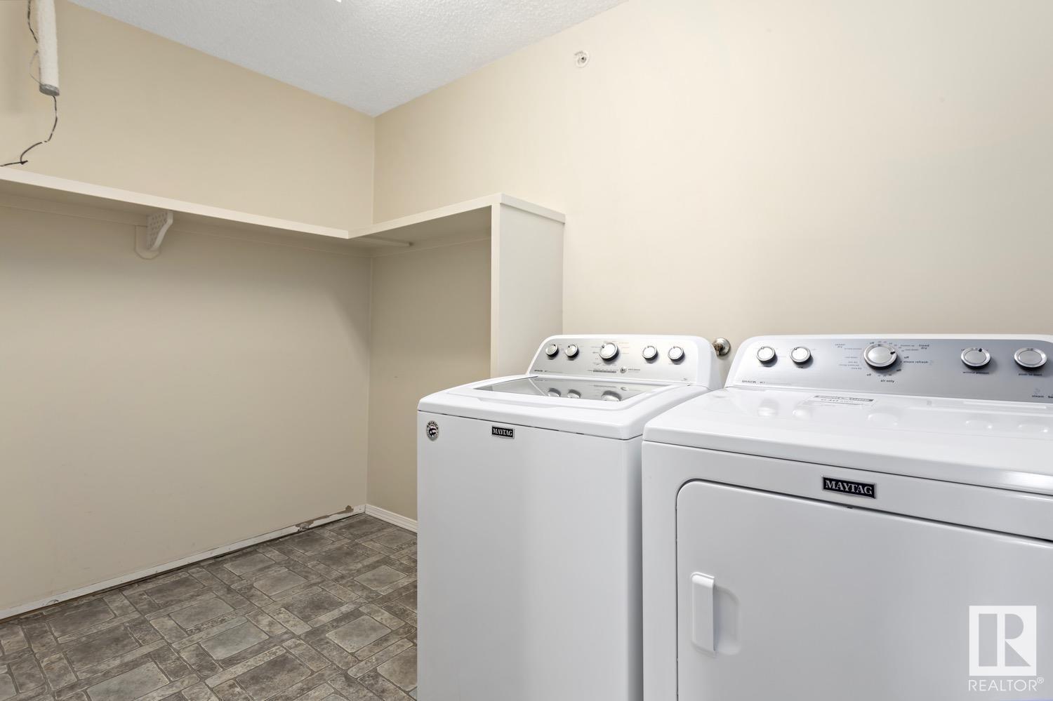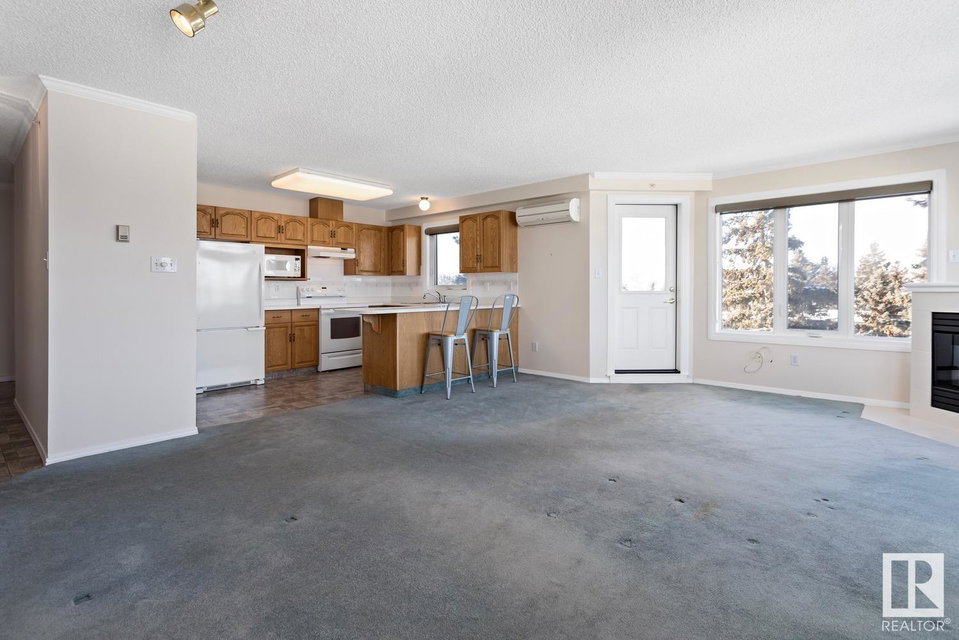 TOP FLOOR, CORNER UNIT with views of the downtown skyline & River Valley in Forest Heights. This 2 bed/2 bath property (1076sq.ft) boasts one of the best locations in the building with unobstructed views to the West & North. Upon entering this home, you’ll fall in love with the layout. The open concept living/dining area showcases the views & is punctuated with a GAS fireplace. The kitchen has plenty of counter space & storage (including a pantry). The primary suite is large enough to accommodate a king-sized bed & features double closets & a 3PC ensuite. The second bedroom is directly across from a 4PC bath & is on the opposite side of the unit for privacy. A massive laundry/storage room is just off the formal foyer. IN-FLOOR heating runs throughout the unit. Add’l features incl AC, a gas BBQ hookup & 1 TITLED,UNDERGROUND stall w storage. Building amenities such as a gym, guest suite & car wash bay. Close to DT, the River Valley (Riverside Golf Course) & Gretzky Drive. Live in the heart of it all!