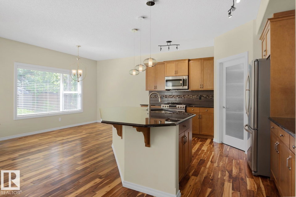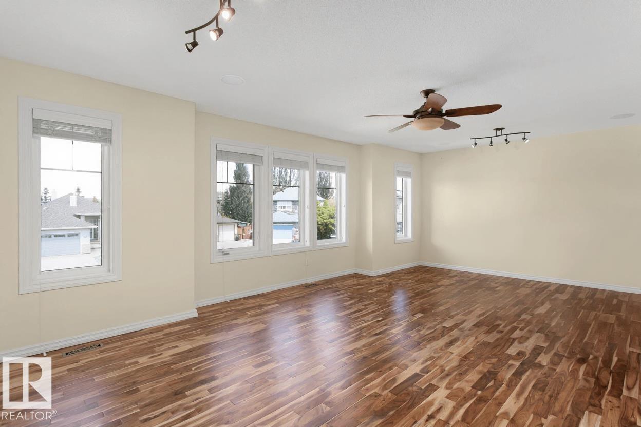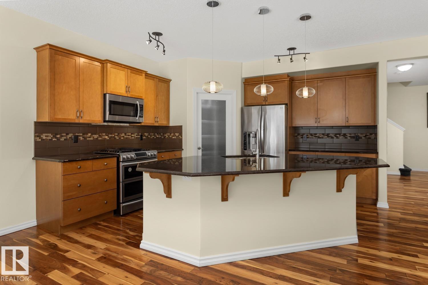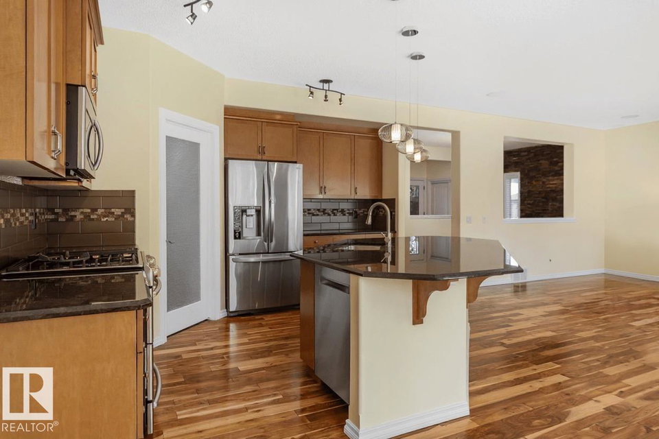 Located on a quiet CUL-DE-SAC in family-friendly North Ridge, this meticulously maintained home offers over 3,400 sq.ft. of finished living space and a sunny SOUTH-facing backyard. The main and upper floors have gleaming WALNUT HARDWOOD, while the upgraded kitchen features GRANITE countertops, new S/S appliances (incl a GAS RANGE with double ovens, Bosch dishwasher & refrigerator with water/ice dispenser), and a walk-through pantry with pullout drawers for added functionality. Upstairs includes a massive BONUS ROOM, 3 spacious bedrooms, and a south-facing primary suite with walk-in closet and ensuite featuring a newly installed JETTED SOAKER TUB. The developed basement (with cork flooring) adds a 4th bedroom, 4PC bath and rec room with projector and screen. Extras include: built-in speaker system on all 3 levels, A/C, OVERSIZED HEATED garage, newly poured, triple-wide driveway, NO-MAINTENANCE backyard, UPDATED FURNACE and ON-DEMAND HOT WATER system (2017). A must see for anyone seeking their forever home!