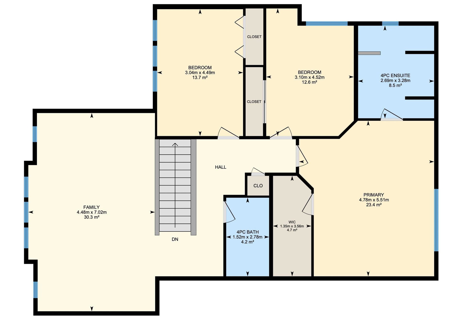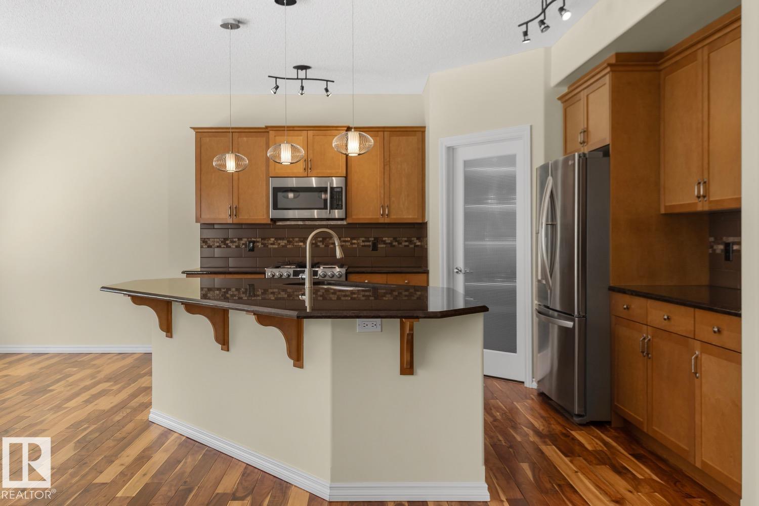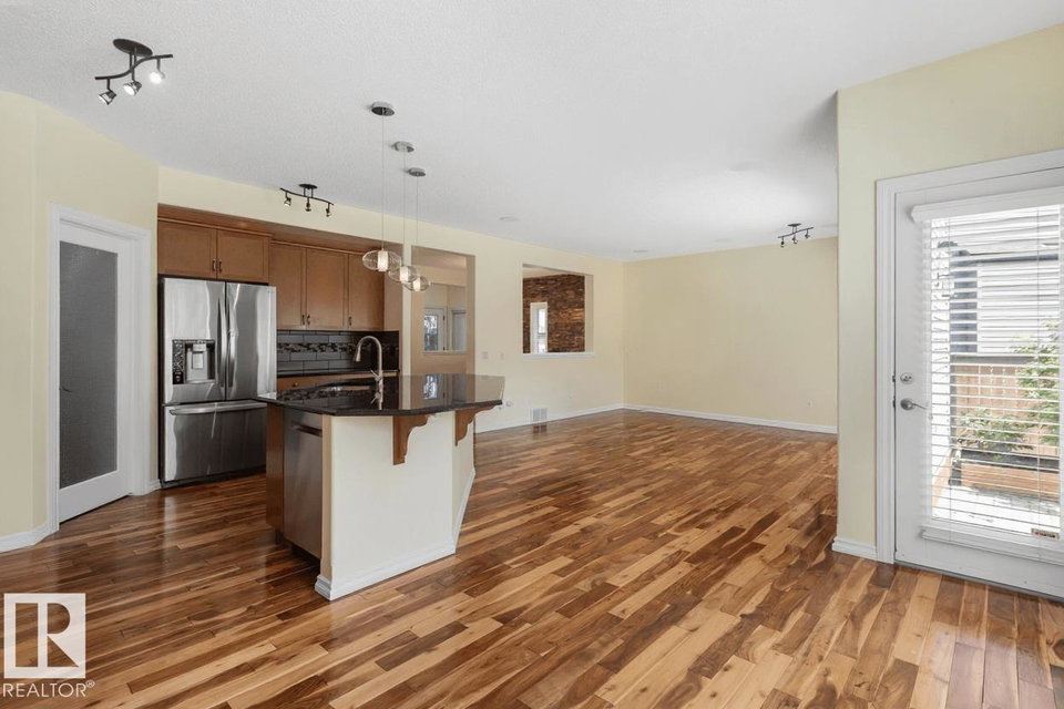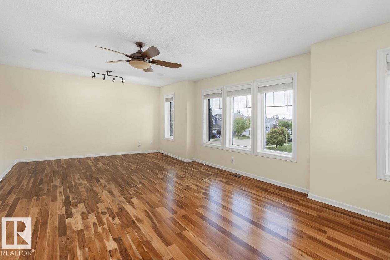 Located on a quiet CUL-DE-SAC in family-friendly North Ridge, this meticulously maintained home offers over 3,400 sq.ft. of finished living space and a sunny SOUTH-facing backyard. The main and upper floors have gleaming WALNUT HARDWOOD, while the upgraded kitchen features GRANITE countertops, new S/S appliances (incl a GAS RANGE with double ovens, Bosch dishwasher & refrigerator with water/ice dispenser), and a walk-through pantry with pullout drawers for added functionality. Upstairs includes a massive BONUS ROOM, 3 spacious bedrooms, and a south-facing primary suite with walk-in closet and ensuite featuring a newly installed JETTED SOAKER TUB. The developed basement (with cork flooring) adds a 4th bedroom, 4PC bath and rec room with projector and screen. Extras include: built-in speaker system on all 3 levels, A/C, OVERSIZED HEATED garage, newly poured, triple-wide driveway, NO-MAINTENANCE backyard, UPDATED FURNACE and ON-DEMAND HOT WATER system (2017). A must see for anyone seeking their forever home!