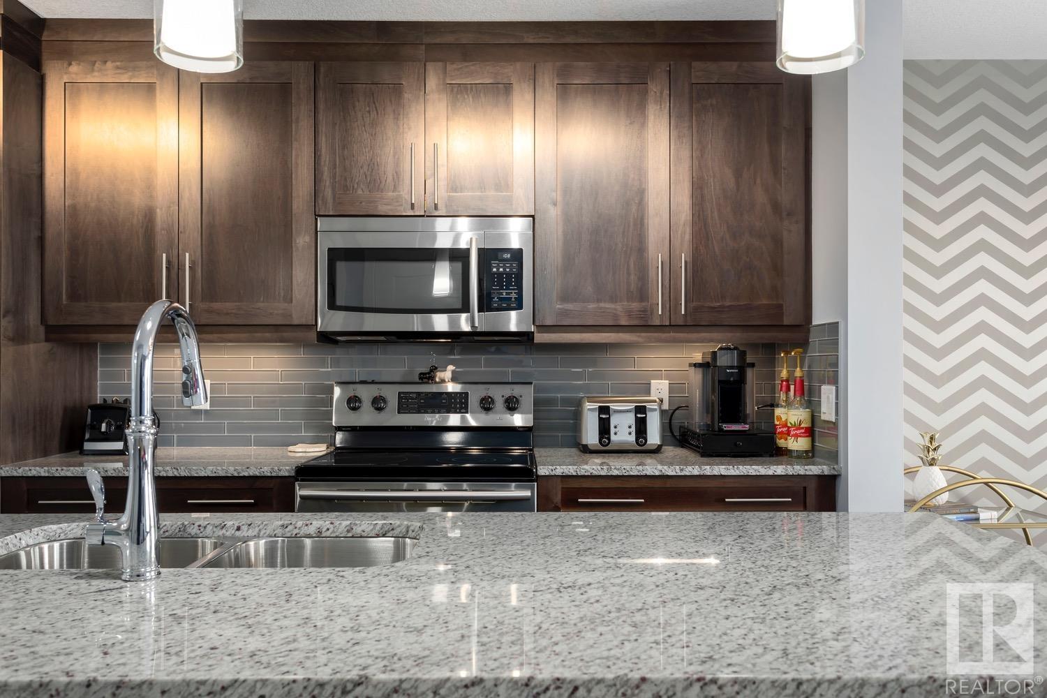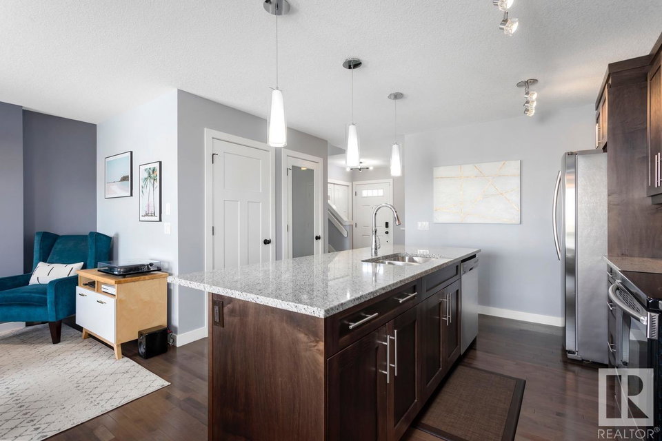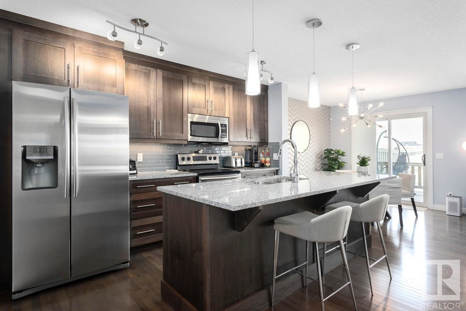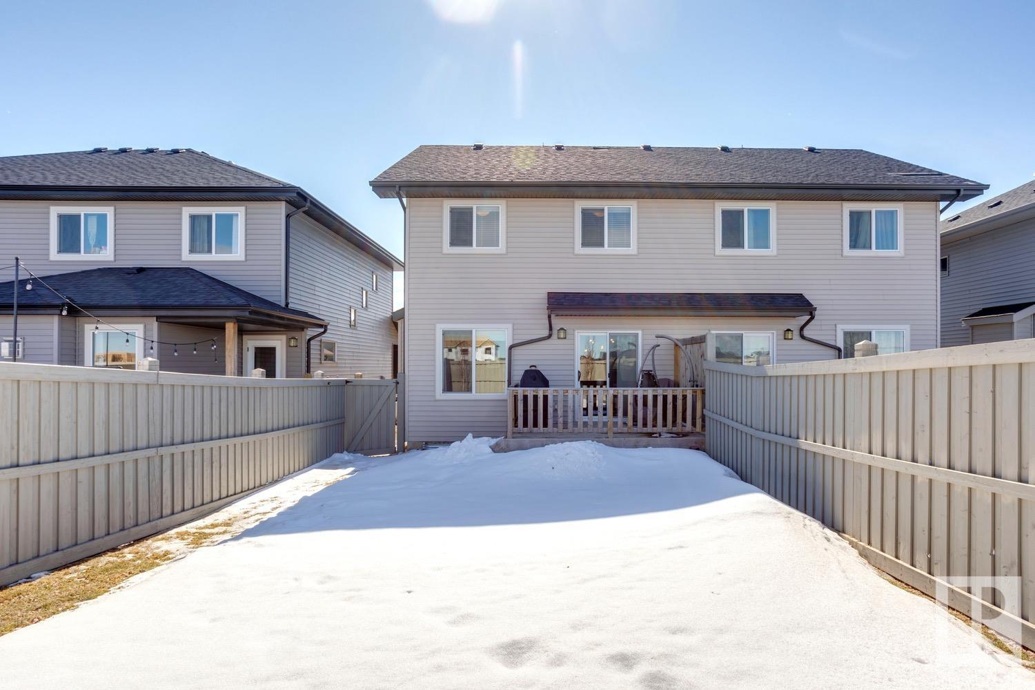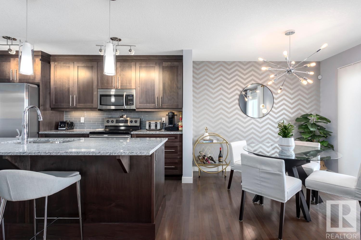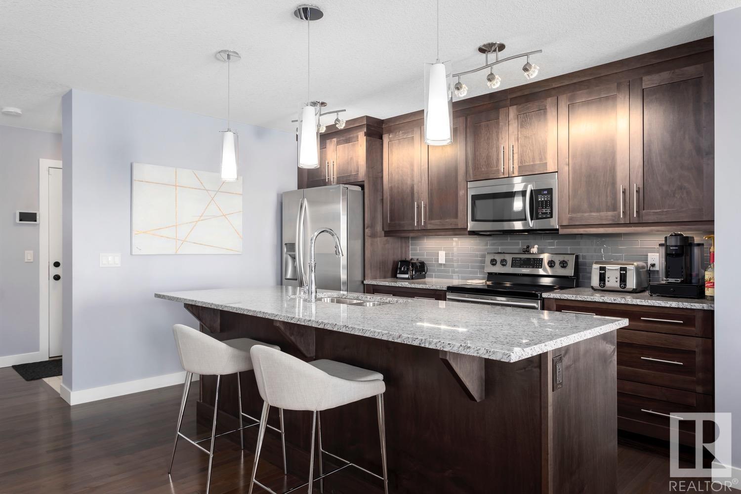 Perfectly maintained, Thomsen-built 1,264sq.ft half duplex in Creekwood Chappelle. This 3 bed/2.5 bath home has been stylishly upgraded since being purchased by this original owner. The open concept, main-floor features espresso hardwood with upgraded cabinetry (to the ceiling) & granite countertops in the kitchen. S/S appliances (incl. a fridge with waterline/dispenser) & separate PANTRY are highlights in this functional space. The living area is focused around a modern GAS fireplace & overlooks the LANDSCAPED backyard. Your dining room is bright & sunny with an upgraded fixture & sliding glass door to the deck (w. gas bbq hookup). Upstairs you’ll find a large primary suite (south exposure) with walk-in closet & 4PC ensuite. 2 additional bedrooms (each with closet built-ins) have a view of the pond & trails within walking distance. A full laundry room with front-load Samsung machines & closed storage + a 4PC bathroom complete this level. Enjoy being close to shopping, walking trails, playgrounds & more!