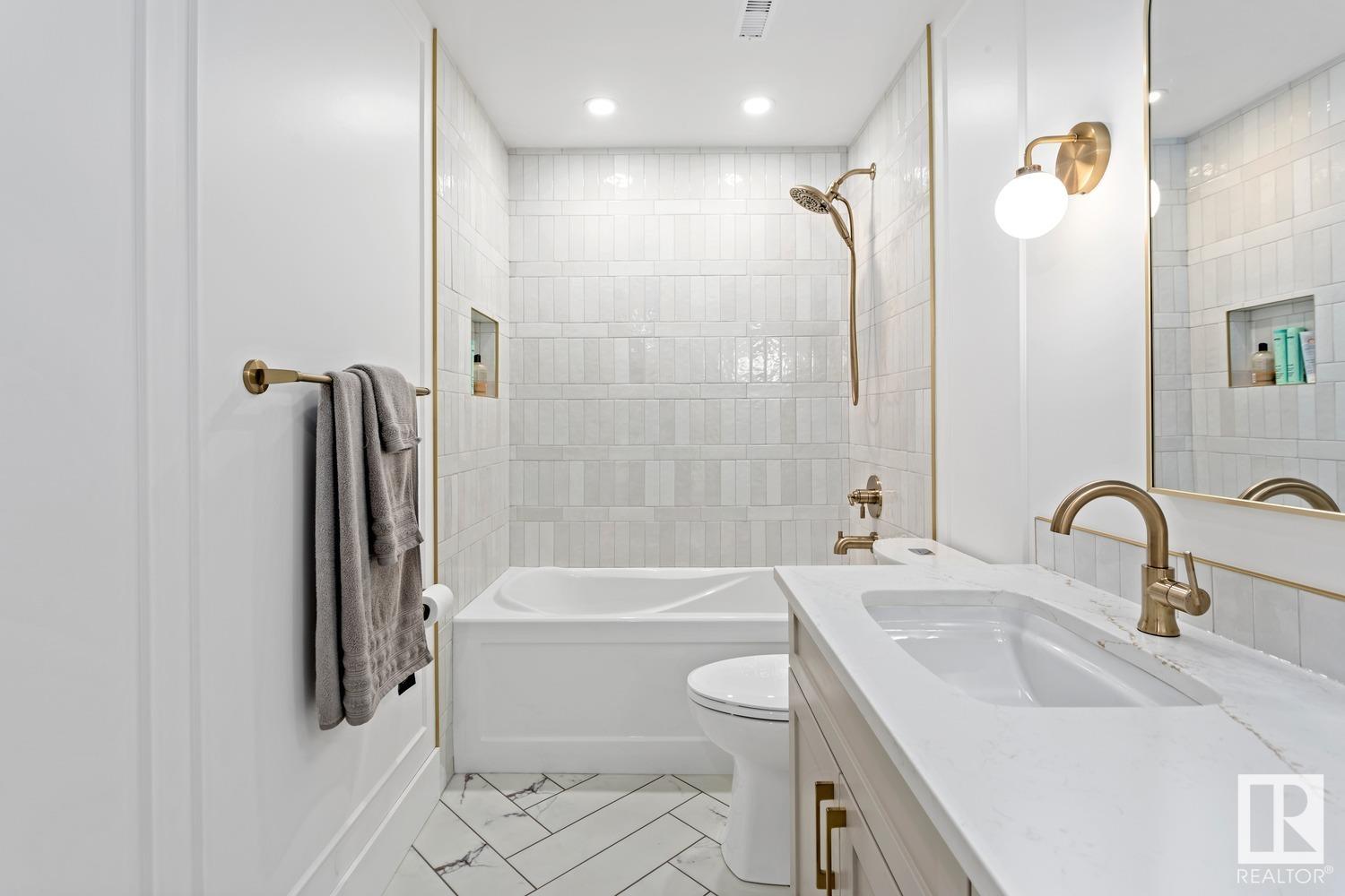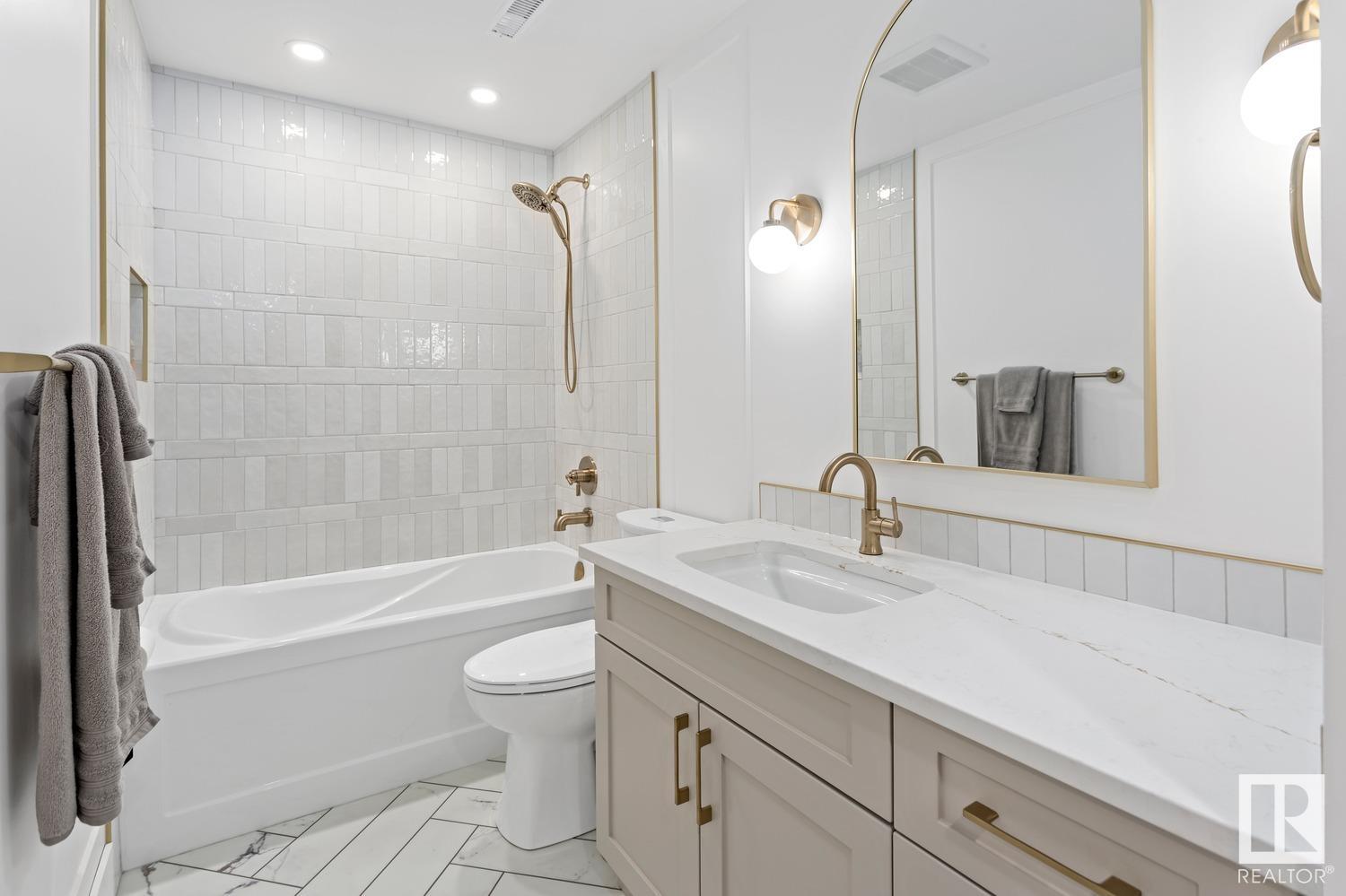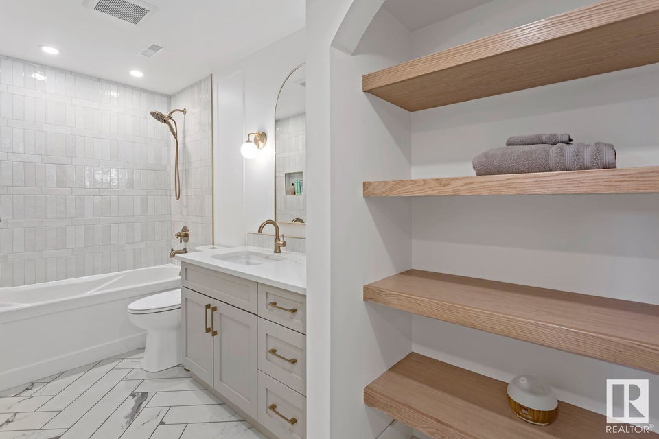 PROFESSIONALLY RENOVATED in Akinsdale! This 4 BED/3 FULL BATH property is straight out of a magazine. From the vaulted ceilings on the main floor to the custom GEM cabinetry found throughout, every detail has been executed to perfection. Luxury vinyl plank greets you at the front door & runs throughout the open-concept main floor. Updated S/S appliances (2020), quartz countertops & oodles of storage make this the perfect family-friendly kitchen. Upstairs you’ll find 3 well-appointed bedrooms, each with custom closet finishing, a 4PC bathroom & a primary suite with DOUBLE CLOSETS + 4PC ENSUITE including double sinks. The lower level features a gas fireplace, 4th bedroom & add’l 4PC bathroom. Downstairs is a massive laundry space (w. utility sink) + gym area. The backyard features a stamped concrete pad, storage shed & gas line for bbq. Upgrades incl: AC(2022), windows & doors throughout(2020), garage door(2018). Close to shopping, schools, St.Albert Tr & the Henday, you’ll love calling 68 Alderwood home!