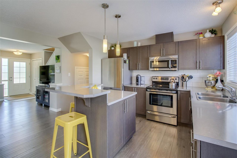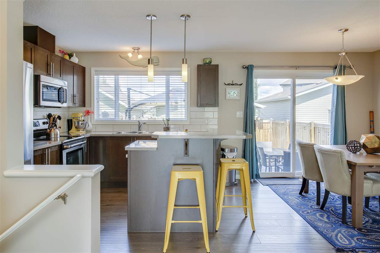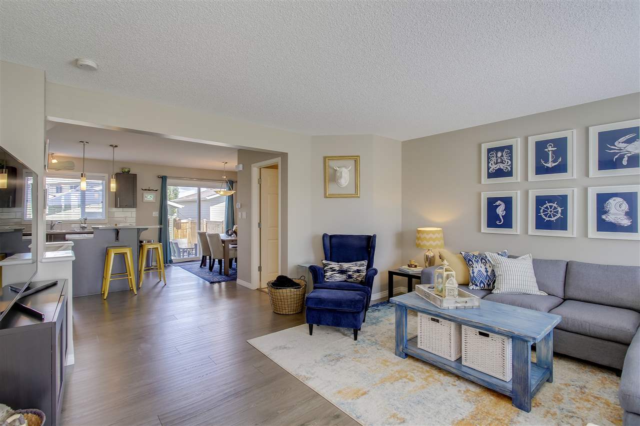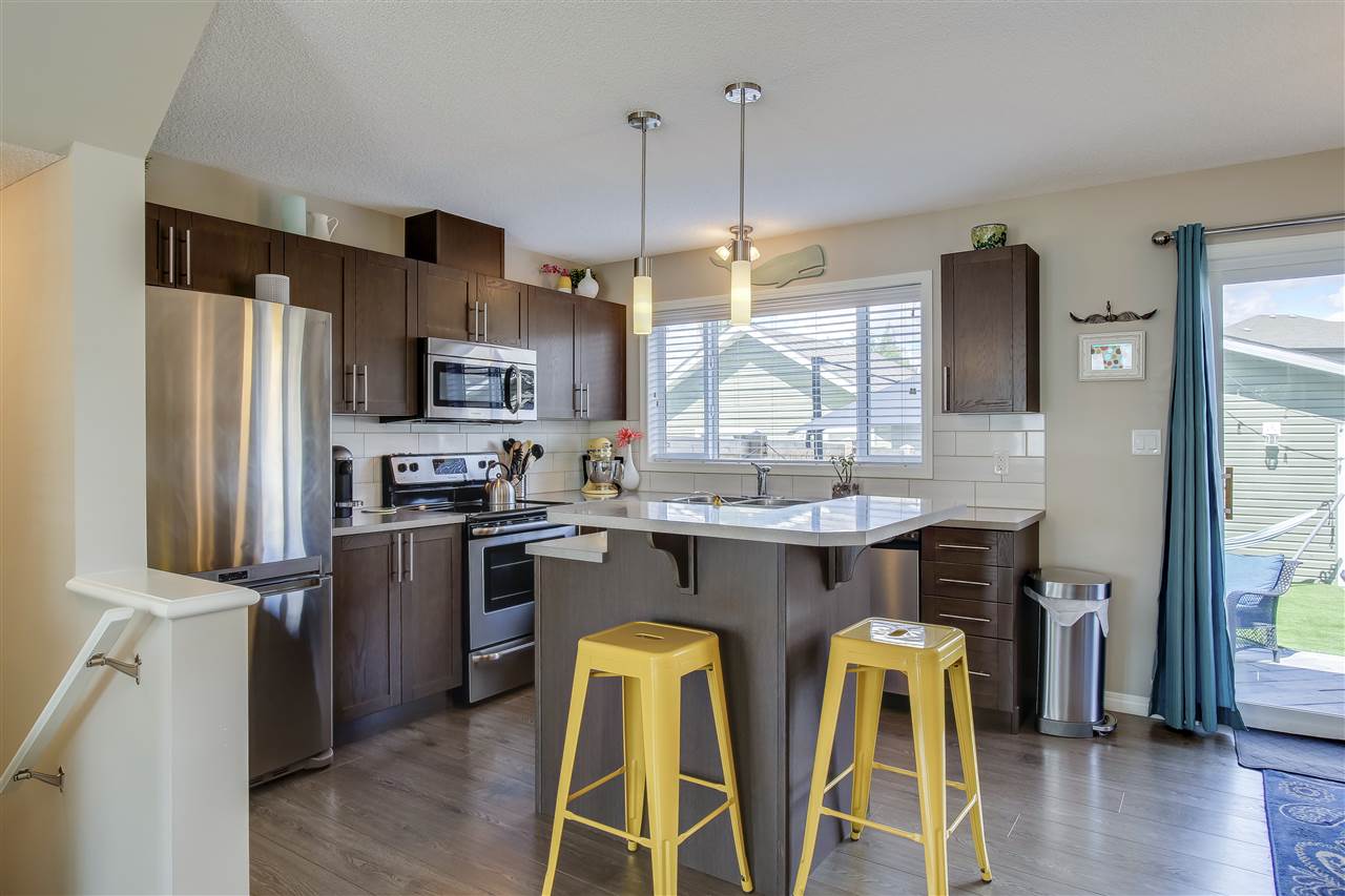 Overlooking the park (and playground), keep an eye on your kiddos in family-friendly Summerside from the comfort of your living room! This 3 bedroom / 2.5 bathroom home features stylish laminate throughout the open-concept, main floor living space and beautiful dark cabinetry to compliment the stainless steel appliance package. Upstairs you’ll find the master suite with WALK-IN closet and 3PC EN-SUITE. Completing the upper floor are two sizeable additional bedrooms and a full, 4PC bathroom. Outside you’ll find a low-maintenance, landscaped backyard with concrete paving stone patio, ARTIFICIAL grass (no cutting required!) and new fence. Other perks include a detached DOUBLE garage and AIR CONDITIONING. Better yet, this property has FULL Lake Summerside access – the reason everyone wants to live in this community. With quick access to the Anthony Henday (and 99ST), an amazing school district and unbeatable location, it’s time to move!