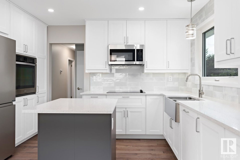 PROFESSIONALLY RENOVATED from top to bottom, you’ll love this 3+1 bed/2 bath home just steps from Kenilworth School! Quality is apparent as you enter the sunny foyer & see the stylish new hardwood that runs throughout the ENTIRE main floor. POT LIGHTS & OVERSIZED WINDOWS flood the space with light as it opens to the formal dining room with add’l cabinetry/storage. The new kitchen cabinetry (incl. island) is topped with QUARTZ & is complimented by a stylish backsplash & S/S appliances (36″ fridge, wall-mount oven, electric cooktop & dishwasher). 3 large bedrooms (each w. customizable storage) & a FULLY TILED 5PC bathroom complete the floor. The FULLY FINISHED BASEMENT has a large rec room (+ games area with WET BAR), 3PC bath, add’l bedroom & MASSIVE laundry/mudroom/storage area. East-facing backyard is fenced & landscaped w. 2-car garage (great concrete condition). Add’l updates for 2022: FURNACE, HWT, TRIPLE PANE WINDOWS, EXT. DOORS, 100AMP PANEL. ROOF also newer! Nothing left to do but pack & move in!