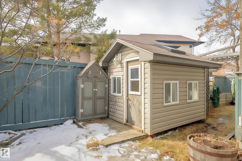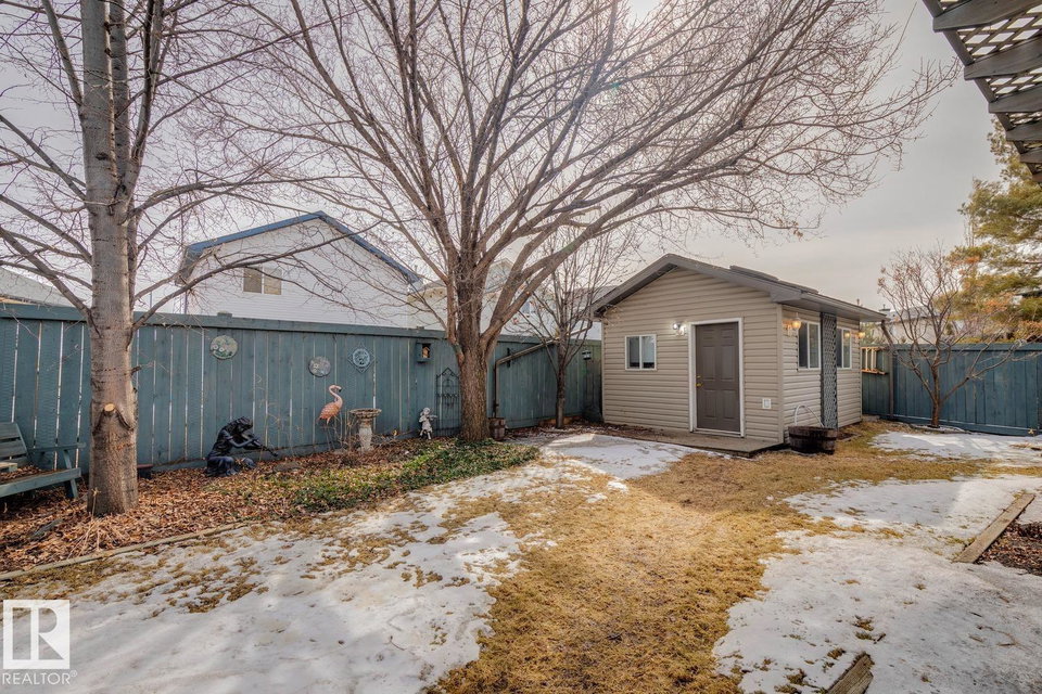 Landmark-built | Rosewood Floor Plan | Cul de sac Location | Family-friendly Ellerslie. This 1,762 sq.ft, 4 bed/3.5 bath home has been lovingly maintained by its original owners. The open-concept main floor overlooks the sunny SE-facing backyard & its one-of-a-kind PERMITTED SHOP – (220V/heated/insulated/sky-lights). The oak kitchen features updated appliances & spacious pantry (all closets have MDF organizers). This AWARD-WINNING floor plan was one the builder’s most popular, with a large bonus room over the garage (ft. 9′ ceilings & gas fireplace) & 3 spacious bedrooms incl. the primary suite w. 4PC ensuite. The FULLY FINISHED basement houses a 4th bedroom + 3PC bathroom. Outside you’ll find mature trees & an impressive 12′ x 26′ deck with arbor. The WIRED playhouse (w. skylights) is a charming bonus! Upgrades include: roof(2021), HWT(2020), furnace motor(2025), upgraded insulation. This property is close to the Henday, Gateway BLVD & amenities such as Save On Foods & tons of shopping/restaurants.
