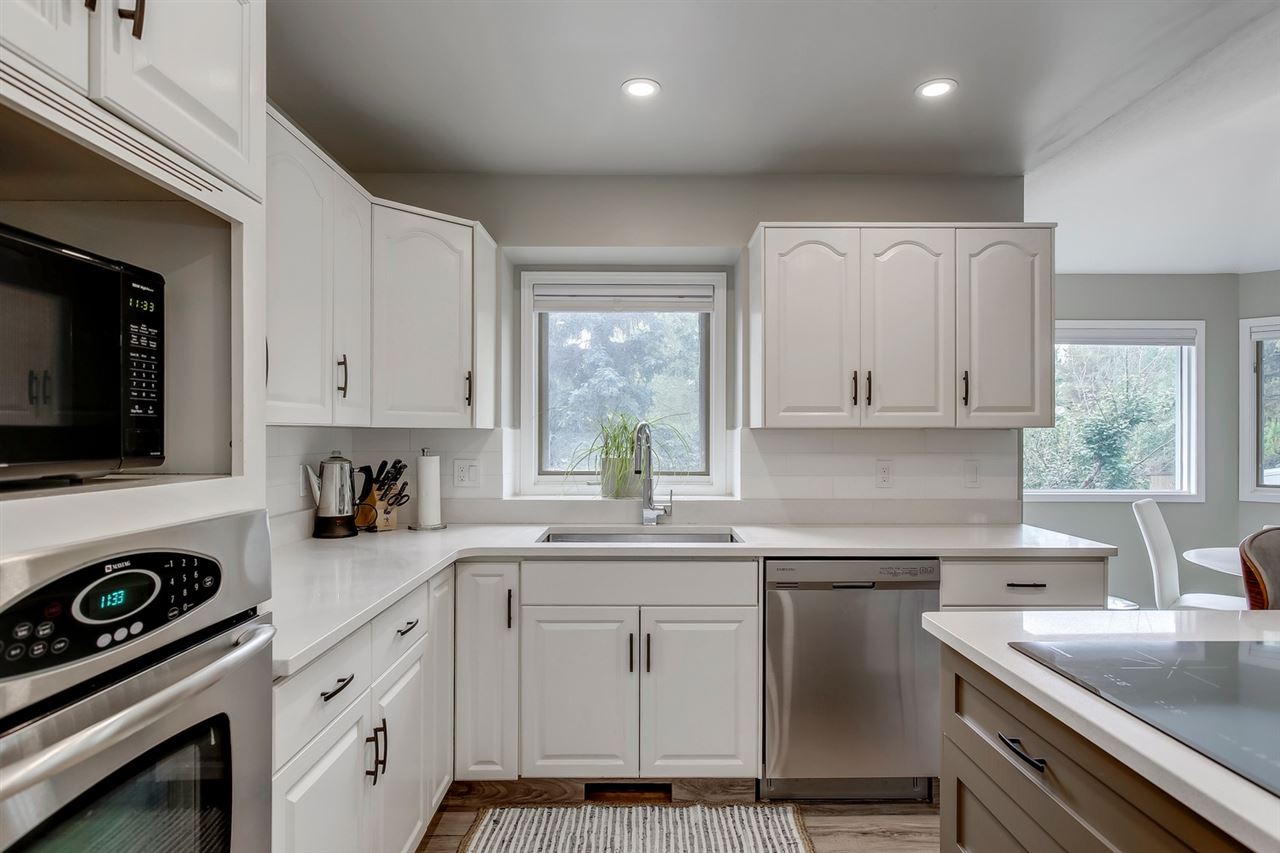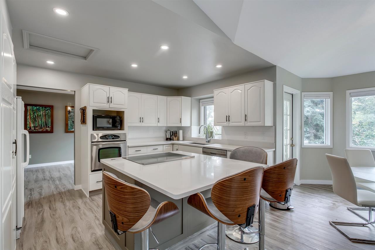 Located on a quiet CUL-DE-SAC in Bulyea Heights, this UPDATED 5-level split with WALKOUT BASEMENT is a hidden gem! Just steps from the ravine, this 2400sqft home has 5 bedrooms and 3 FULL bathrooms (+1 half bath). The main living spaces (incl. formal living room and dining room) feature vinyl plank throughout and fresh paint. The updated kitchen features QUARTZ countertops and vaulted ceilings with access to the deck. Upstairs you’ll find the HUGE master suite with window seat, walk-in closet and 4PC ensuite. 2 additional bedrooms and a 4PC bathroom complete the upper level. Your family room, with WOOD-burning fireplace, 4th bedroom/office, powder room and laundry have also been updated with flooring, paint and trim. Downstairs includes the 5th bedroom, rec room/exercise area, 3PC bath and access to the SOUTH-facing yard. An attached solarium is an added bonus. With an attached double garage and oodles of storage, this home has it all! Walking distance to George H Luck (K-6) BRAND NEW ROOF added in 2020.