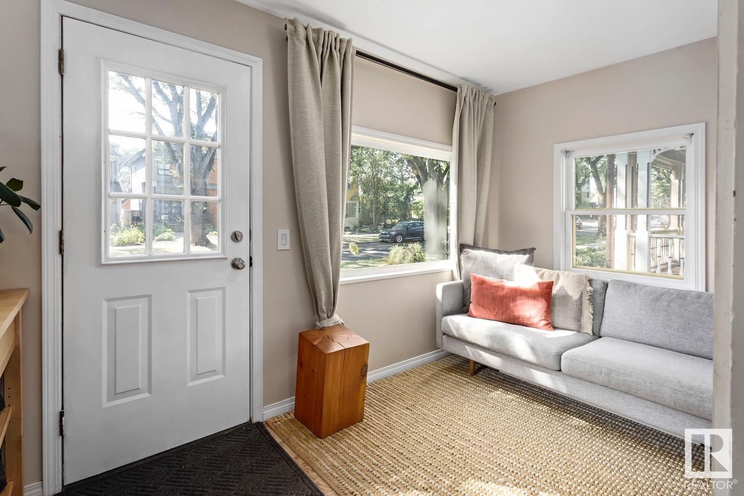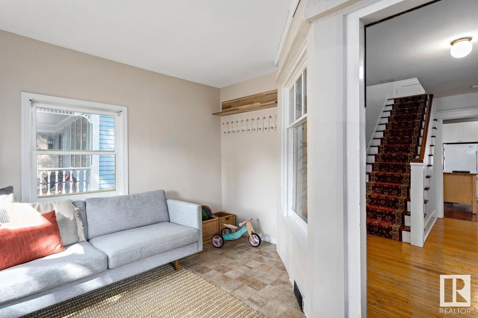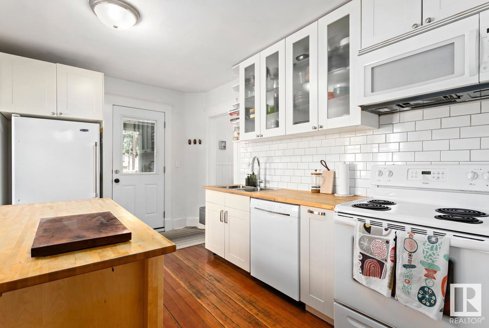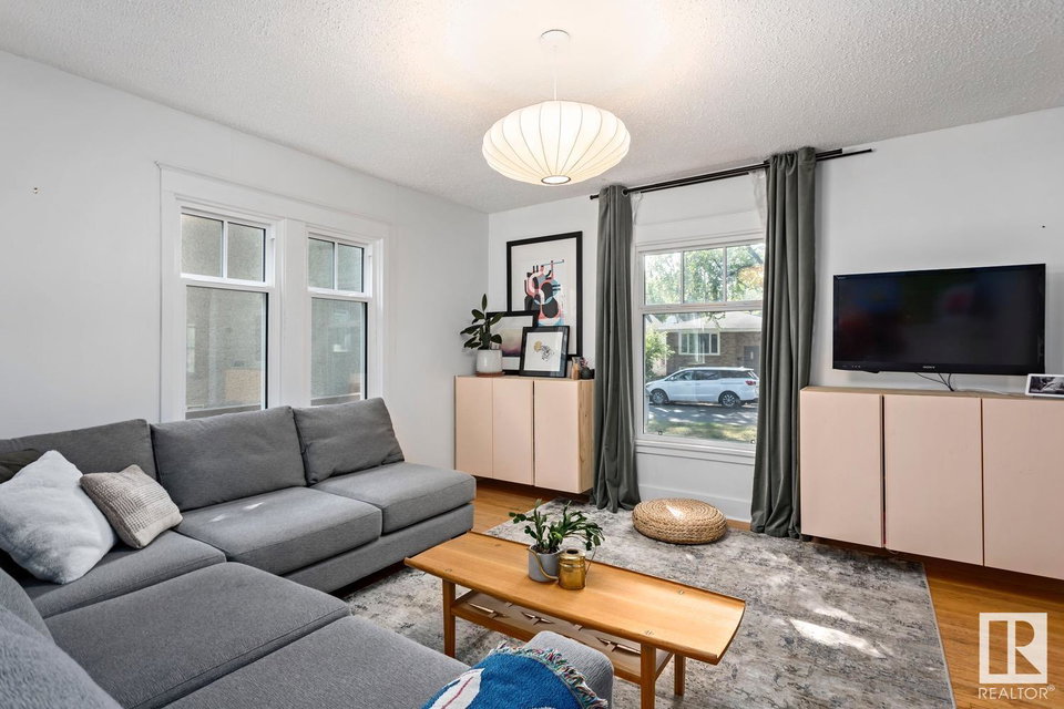 Stylish & UPDATED character home in Strathcona, just steps from Millcreek Ravine! This charming home is perfect for a family or those who love the walkability of one of YEG’s finest communities. With 3 bedrooms on the upper level, 2 FULL bathrooms & a FINISHED BASEMENT, this home will grow with you. Enter the sunny mudroom from the TREE-LINED street & fall in love with the traditional staircase that greets you. Original hardwood runs throughout the living & formal dining spaces, right into the bright white kitchen; accented with butcher block countertops & subway tile backsplash. Upstairs are 3 generous bedrooms (one w. access to a veranda) & updated 4PC bath. The basement is FULLY FINISHED (2021) with a cheery laundry room, rec room (or work-from-home space), 4PC bath & massive storage/mech room. Vinyl plank runs throughout the lower level. A massive FULLY LANDSCAPED backyard (2022) & double garage await outside. Other updates incl: WINDOWS (2017), 100AMP service, furnace & more!